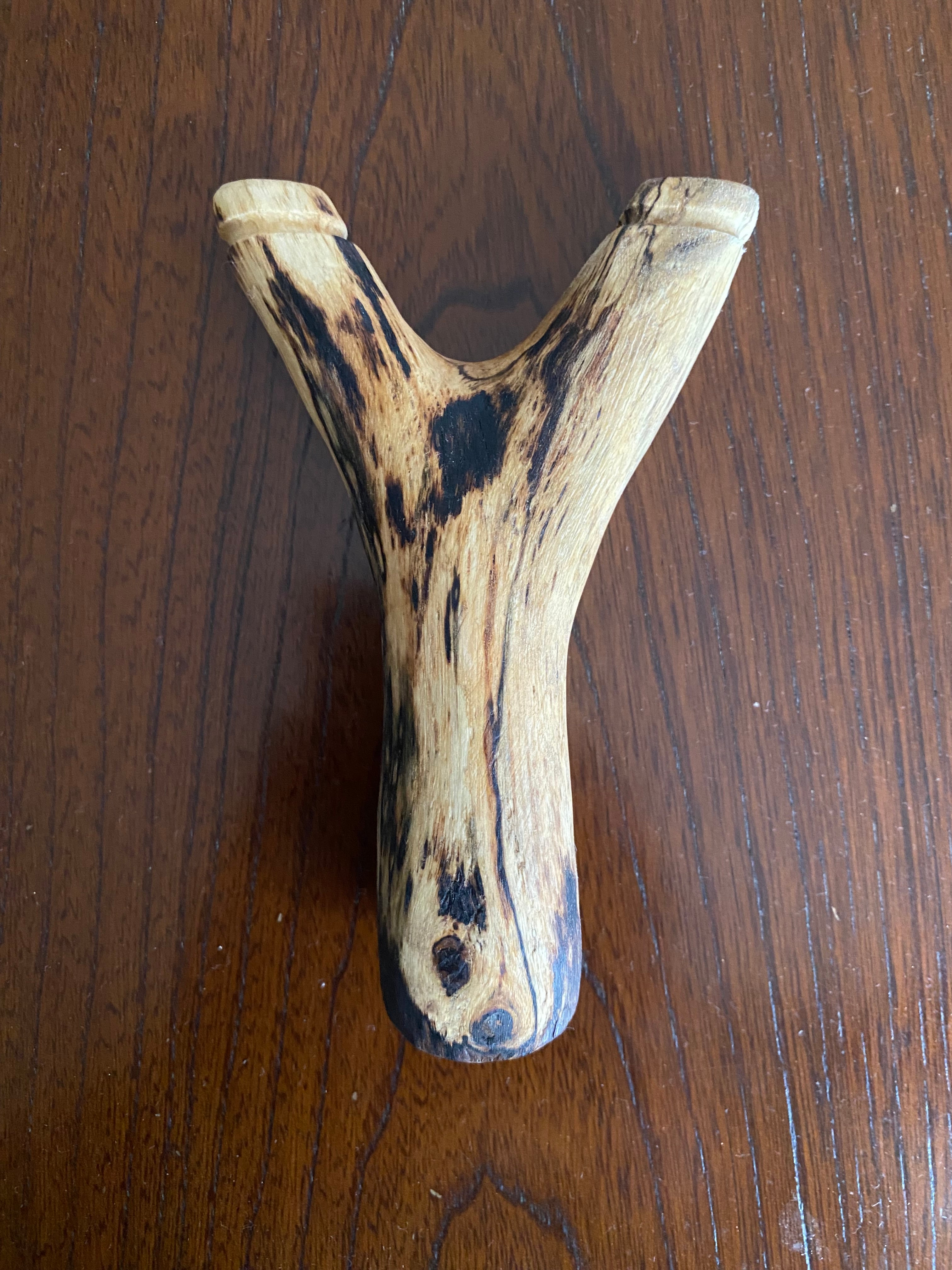 ■No.701 ナチュラルフォークは、倒木から切り出した自然素材を使用したユニークなスリングショットです。そのスポルテッド模様が醸し出す不思議な雰囲気は、自然の美しさを感じさせ、持つ人に特別な体験を提供します。反りがあり持ちやすい形状は、射撃時の安定感を向上させ、心地よいフィット感を実現しています。また、木固めエース浸潤による強化により、驚くほどの耐久性を備えています。
