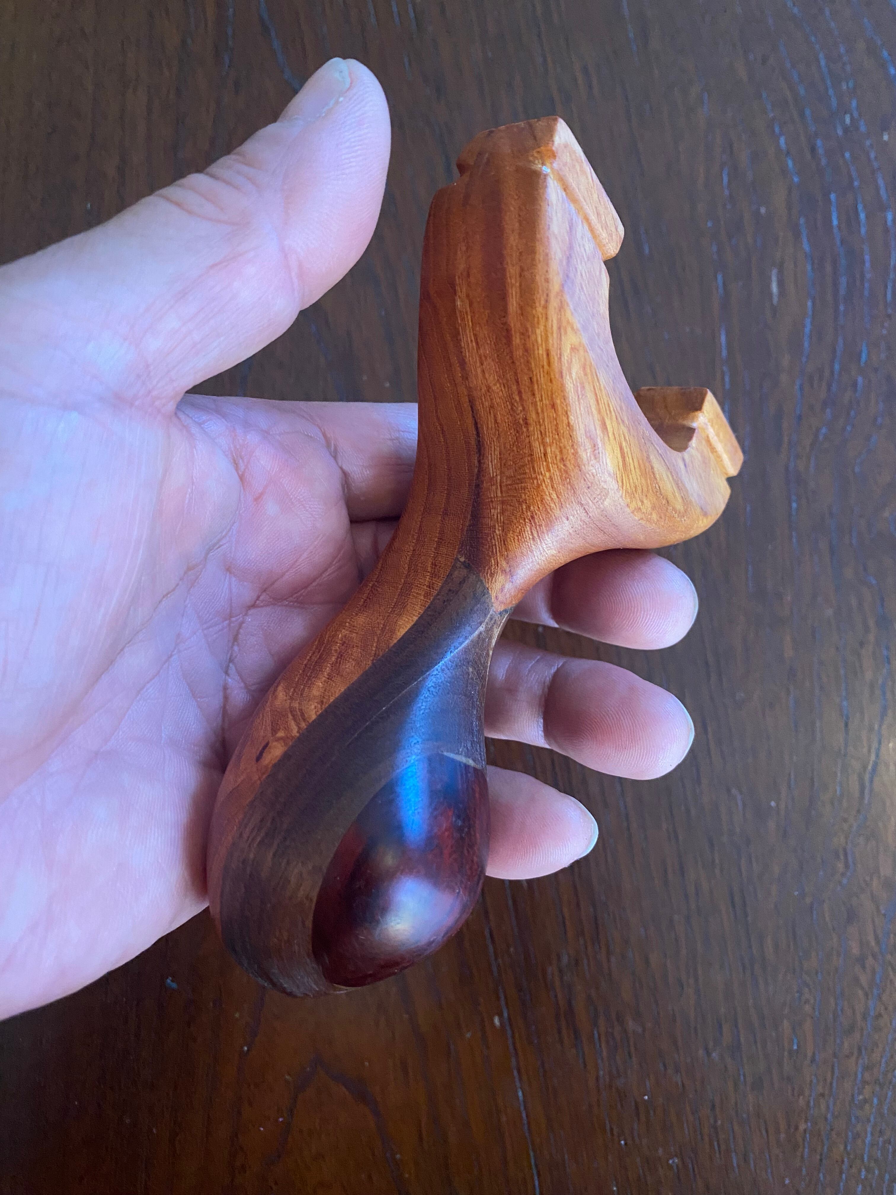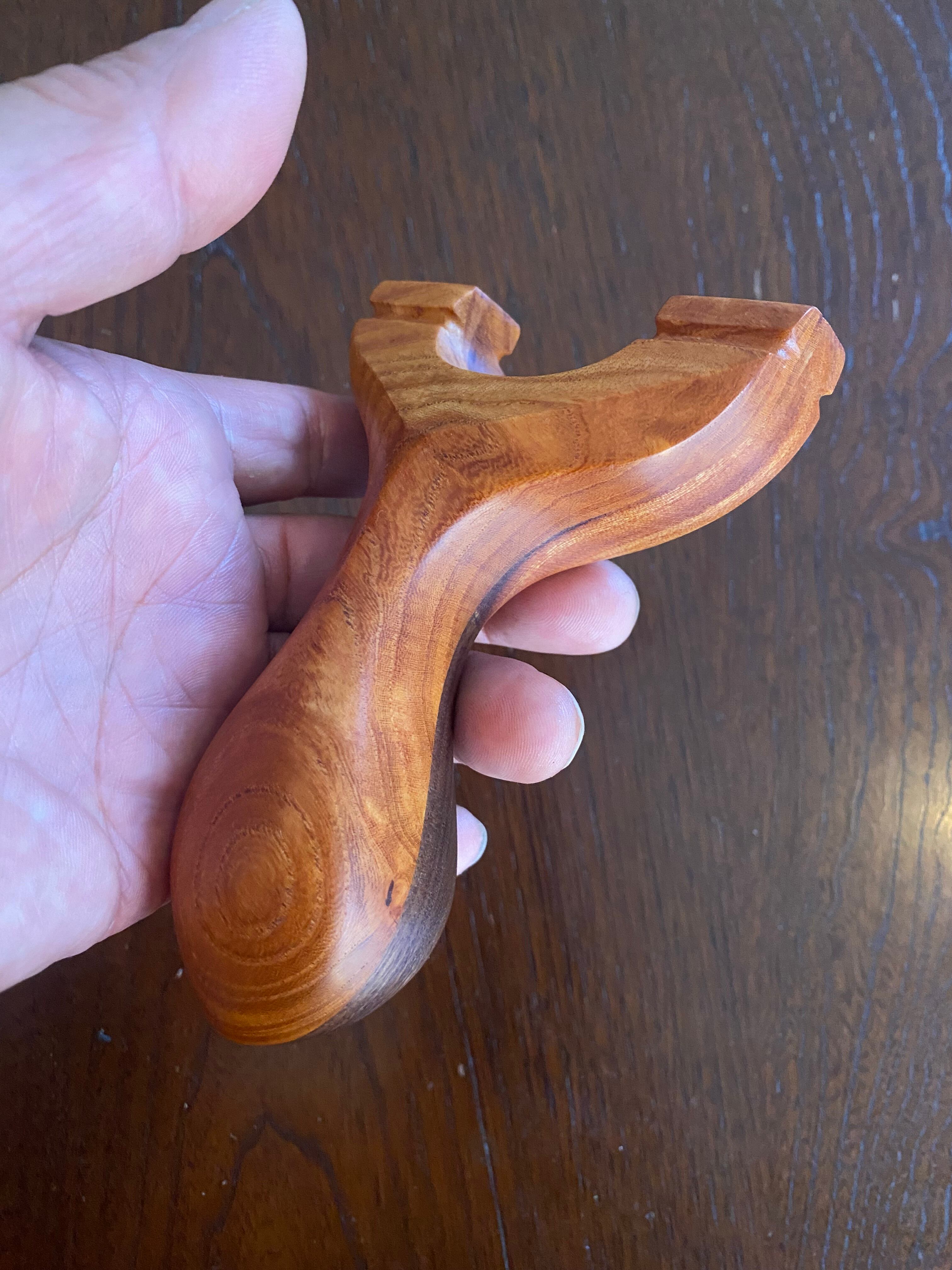 ■ No.742 銘木三種Conbine(欅+ウォールナット+ローズウッド)は、貴重な欅、ウォールナット、そしてローズウッドを巧みに組み合わせたボリューム感溢れるスリングショットです。丸みを帯びたハンドルのデザインは、握った際に大きな安心感を提供し、使うほどに手に馴染んでいくことでしょう。このモデルは、特に持ちやすさに優れ、長時間の使用でも快適な操作性を実現しました。平作りのスリングショットとは次元の異なる持ち味が大きなセールスポイントです。