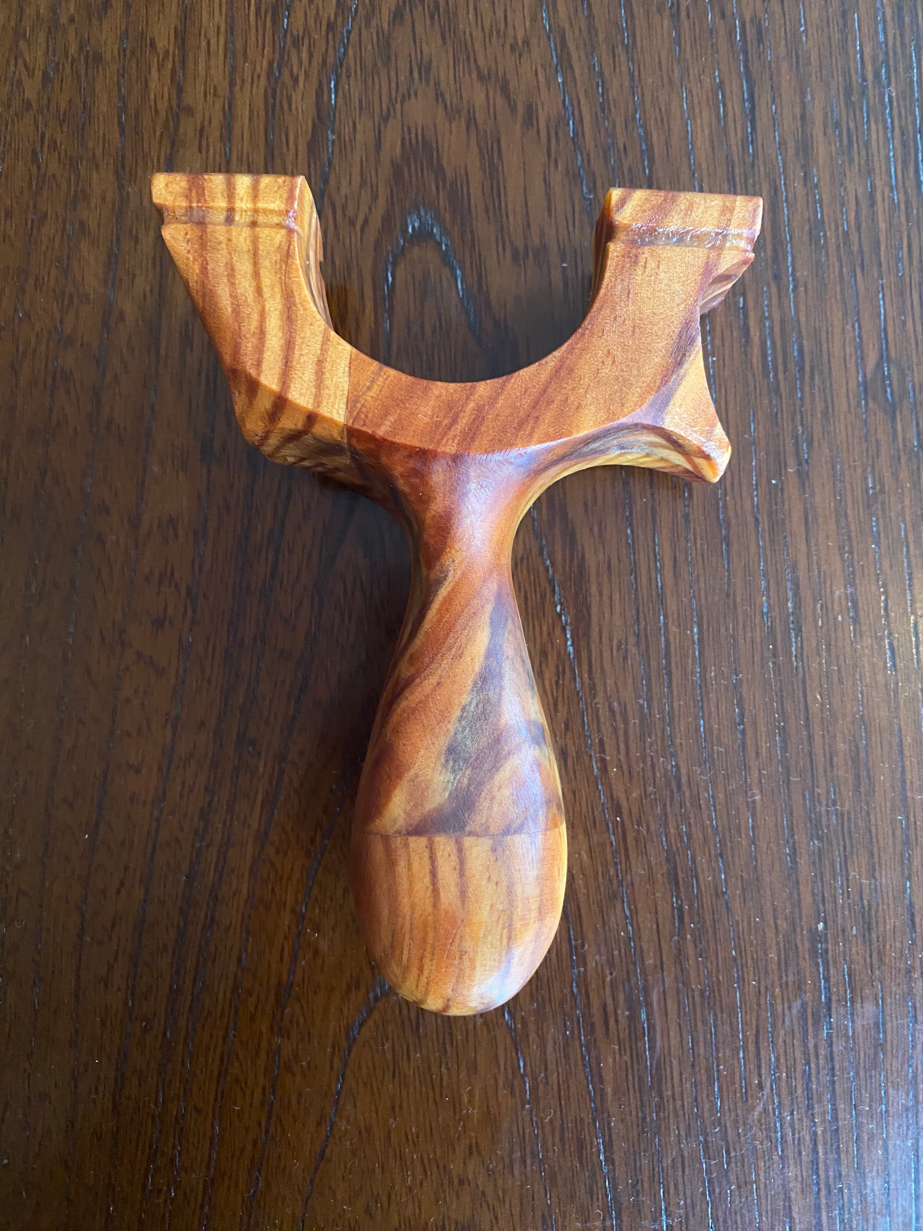 ■ No.744 Survival Fatwoodスリングショット(左利き用)は、着火剤としても利用される豊かな松脂を含むFatwoodを多く含む部位を活用した特別なスリングショットです。見た目の美しさとその優れた性能が融合しており、アウトドアでのアクティビティをより楽しむことができます。このモデルは、特に左利きのユーザーのためにデザインされており、しっかりとした握り心地を提供し、安定した射撃を実現しています。Fatwoodはその油脂の為にヤスリやサンドペーパーの目に詰まってしまったりその粘り気のせいかベルトサンダーの帯が2回も切れてしまったりして加工の難しさを実感しました。作業時間は通常の3倍掛かりました。価格が高めなのはそのせいです。