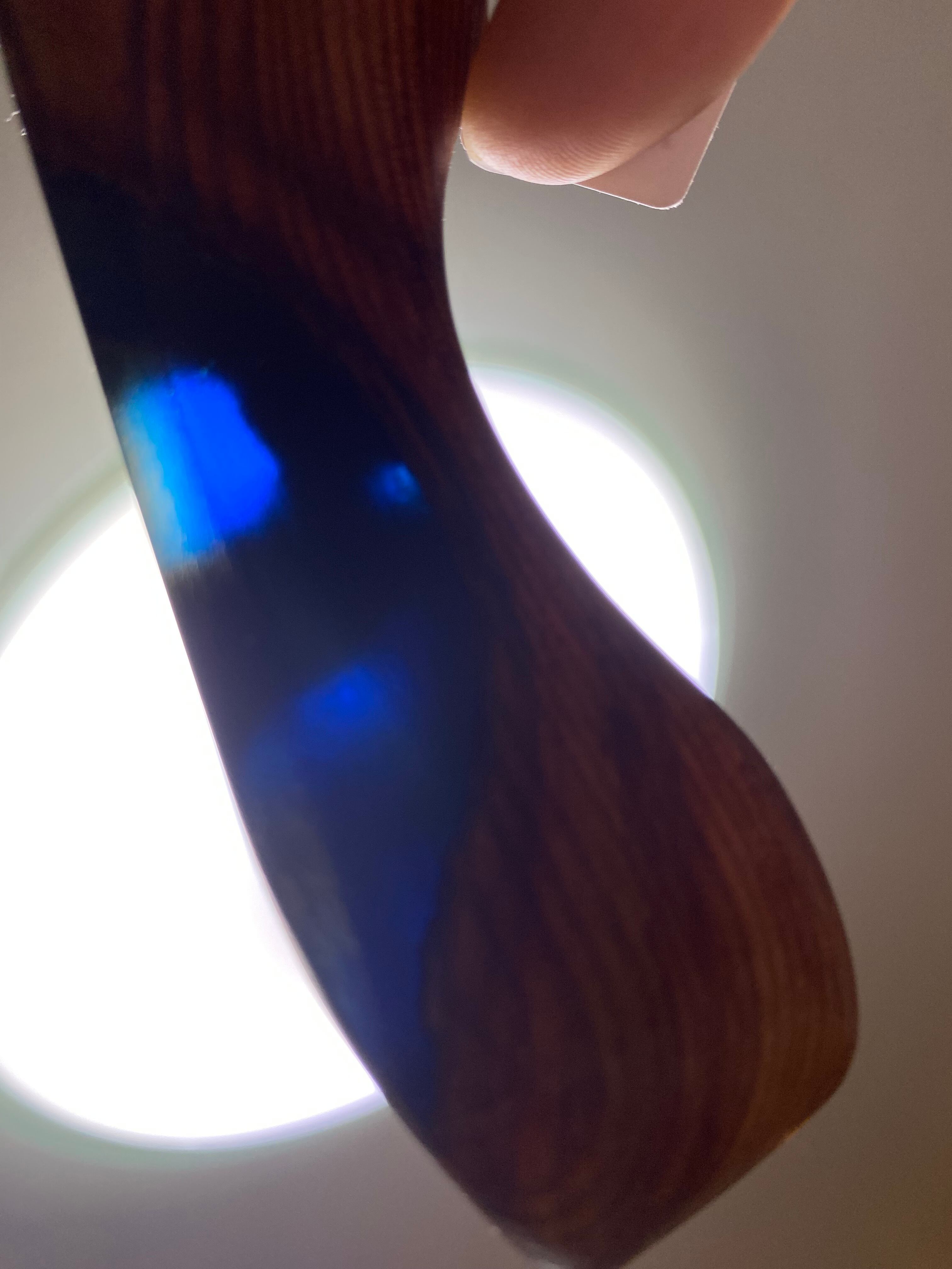 ■ No.751 Slender biceps(ウッドレジン )Top slotは、木とレジンを融合させたユニークなデザインが魅力のリストショットです。木の朽ちた部分にレジンを流し込み、硬化させたこのスリングショットは、見た目にも美しく、持つ人の個性を引き立てます。太陽の光に透かすと、一部透過する箇所もあり、その美しさが一層際立ち、唯一無二の存在感を放ちます。
