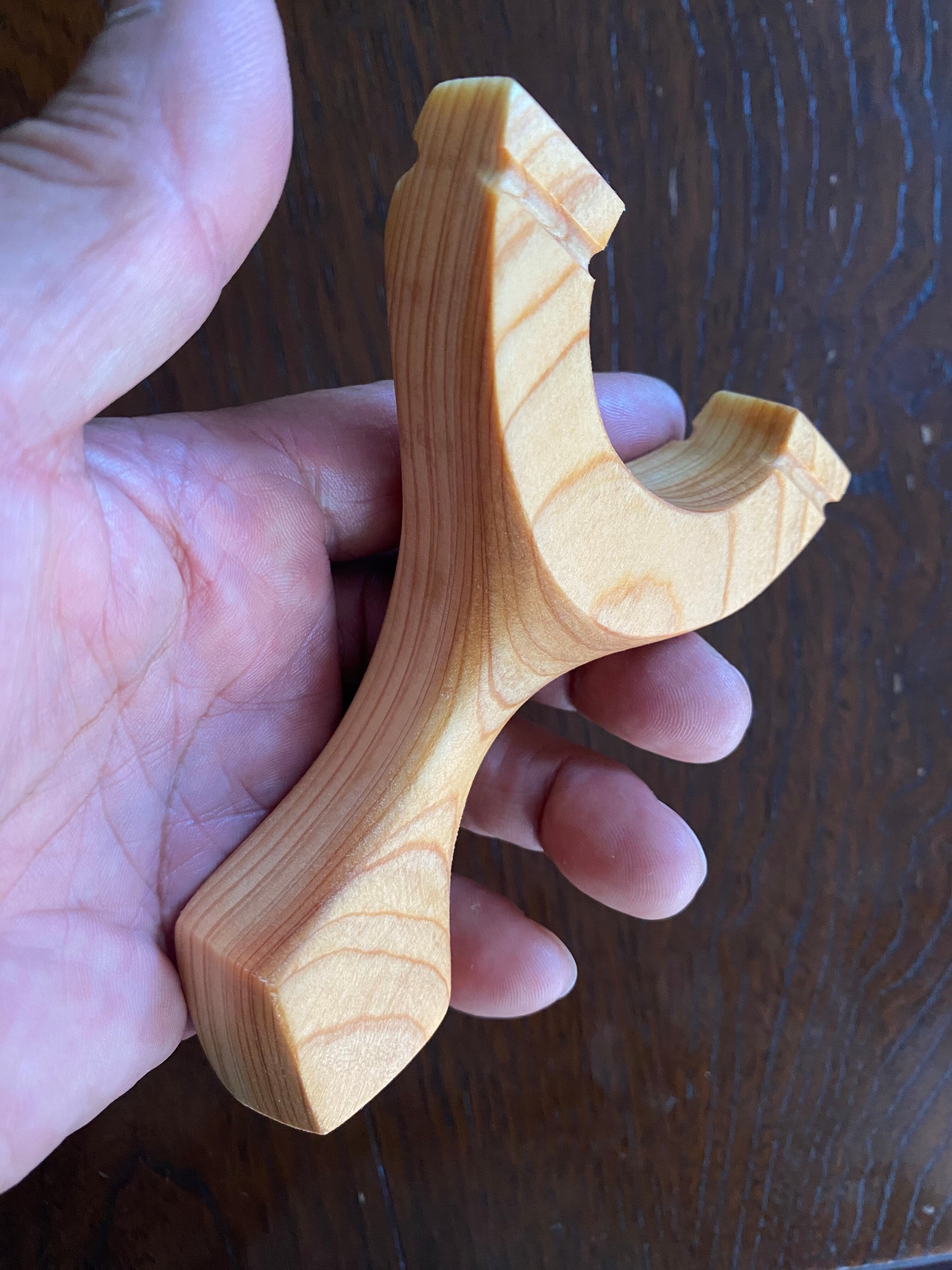 このスリングショットの特長は、しっかりとしたグリップ感とともに、優れたバランスを実現している点です。厚みのある素材を使用しているため、強度と耐久性が際立ち、初心者から上級者まで幅広いユーザーにお楽しみいただけます。ハンドル部分は快適に持てるようにデザインされており、長時間の使用でも疲れにくい設計となっています。