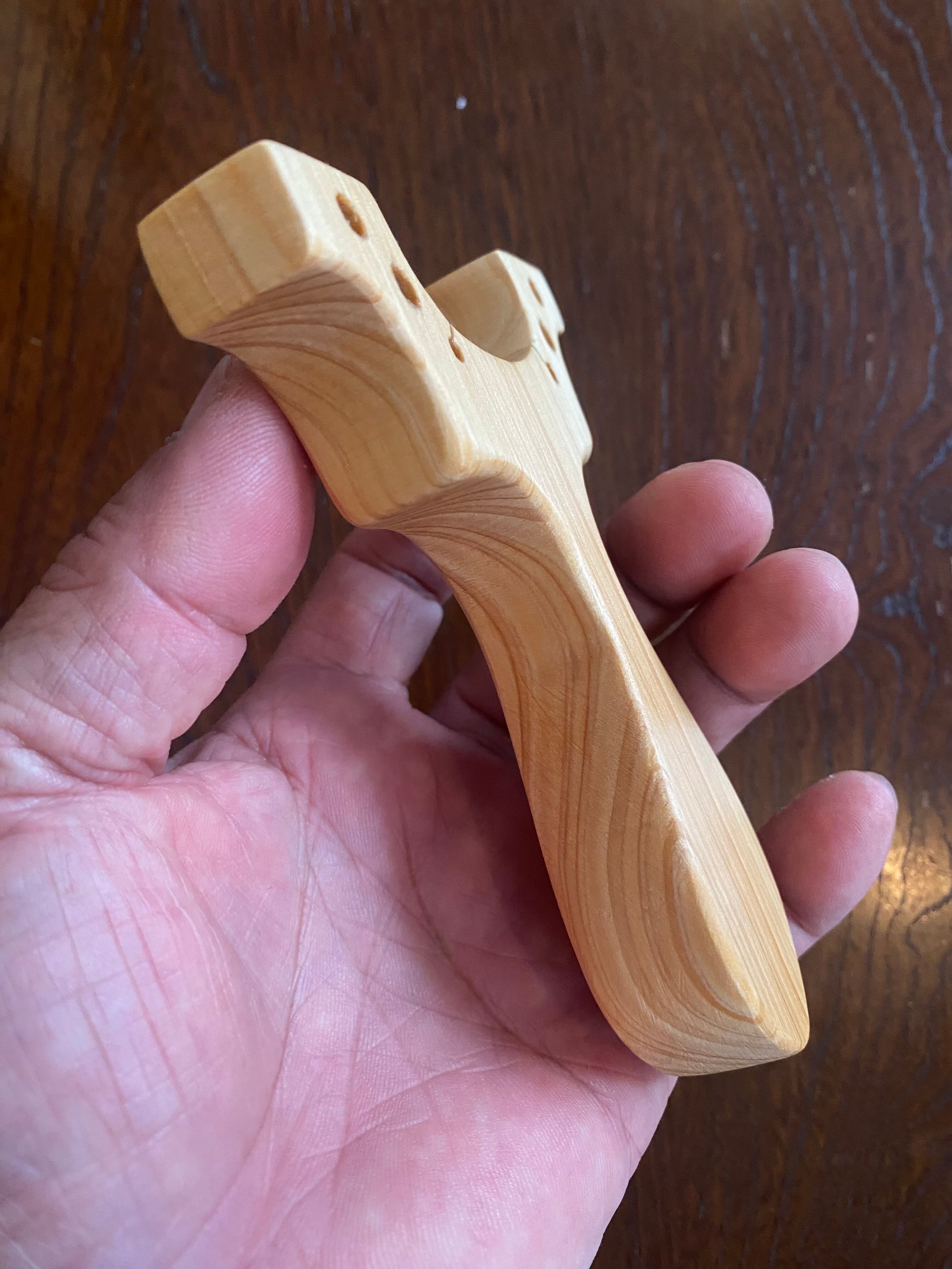 ■ No.796 ZIGZAG機 4号は、革新的なスリングショットのテスト機として登場しました。新しい簡単ゴム装着方法を採用しており、使いやすさを徹底的に追求した設計が特徴です。丸ゴム1636をジグザグに穴を通すだけで固定ができ、初心者に優しいシステムです。本体はシンプルな平型ながらも、手の中で自由に自分の好きな角度で保持できるため、より快適な使用感を提供します。木固めエースを染み込ませてあり、強度のアップを施してあります。