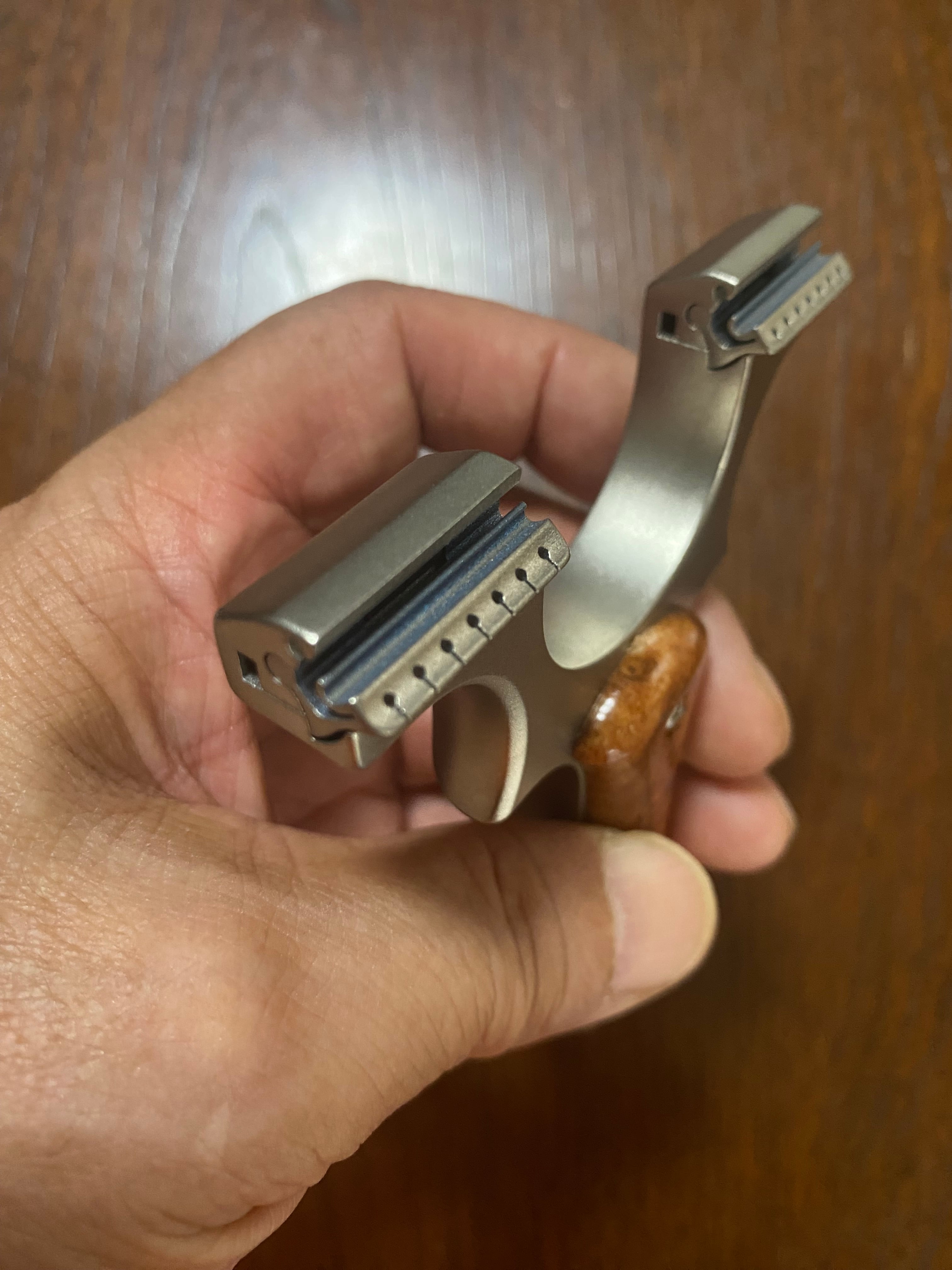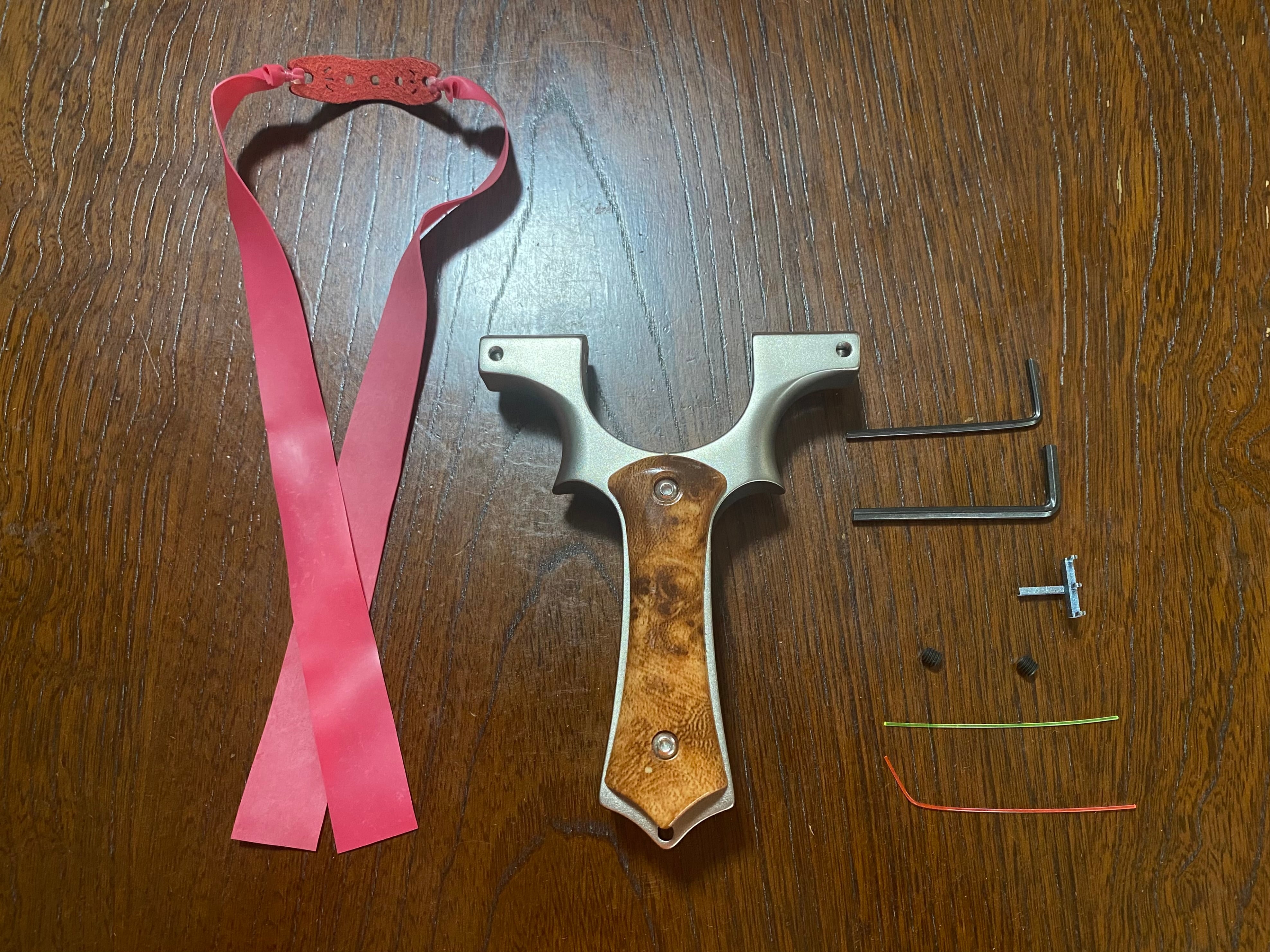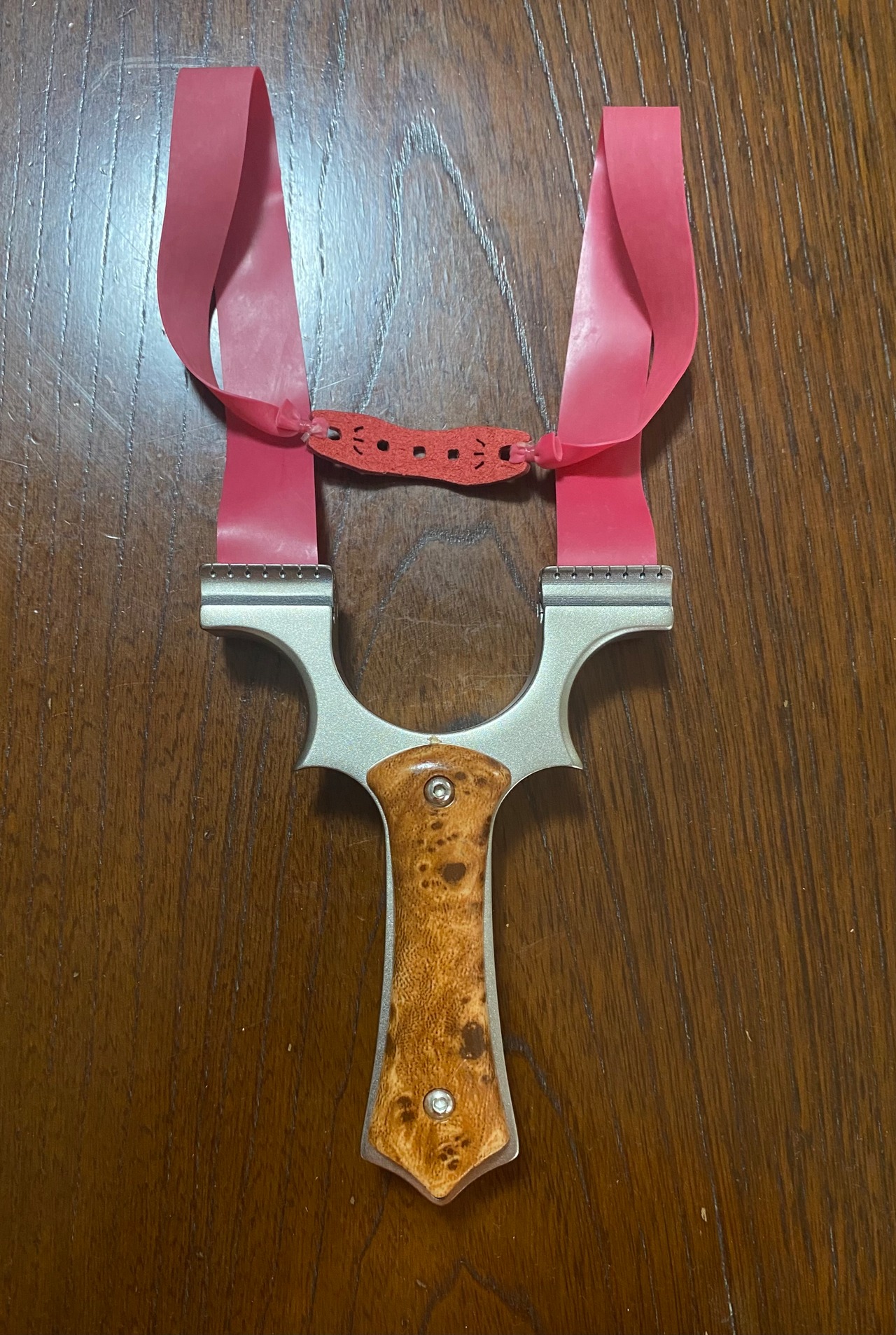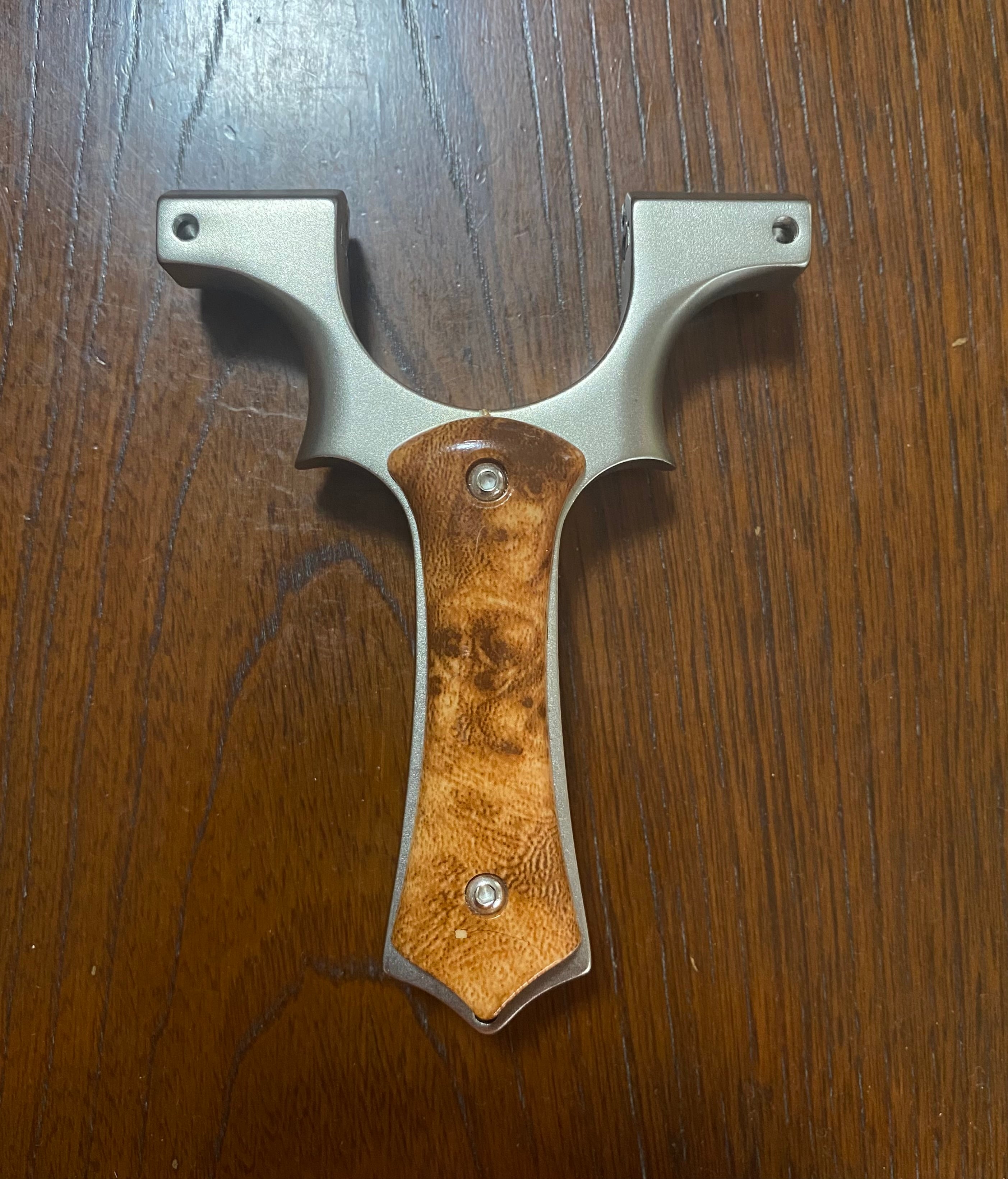 No._13 ステンレス製 高精度スリングショット (ワンタッチゴム装着)ウッド風ハンドル