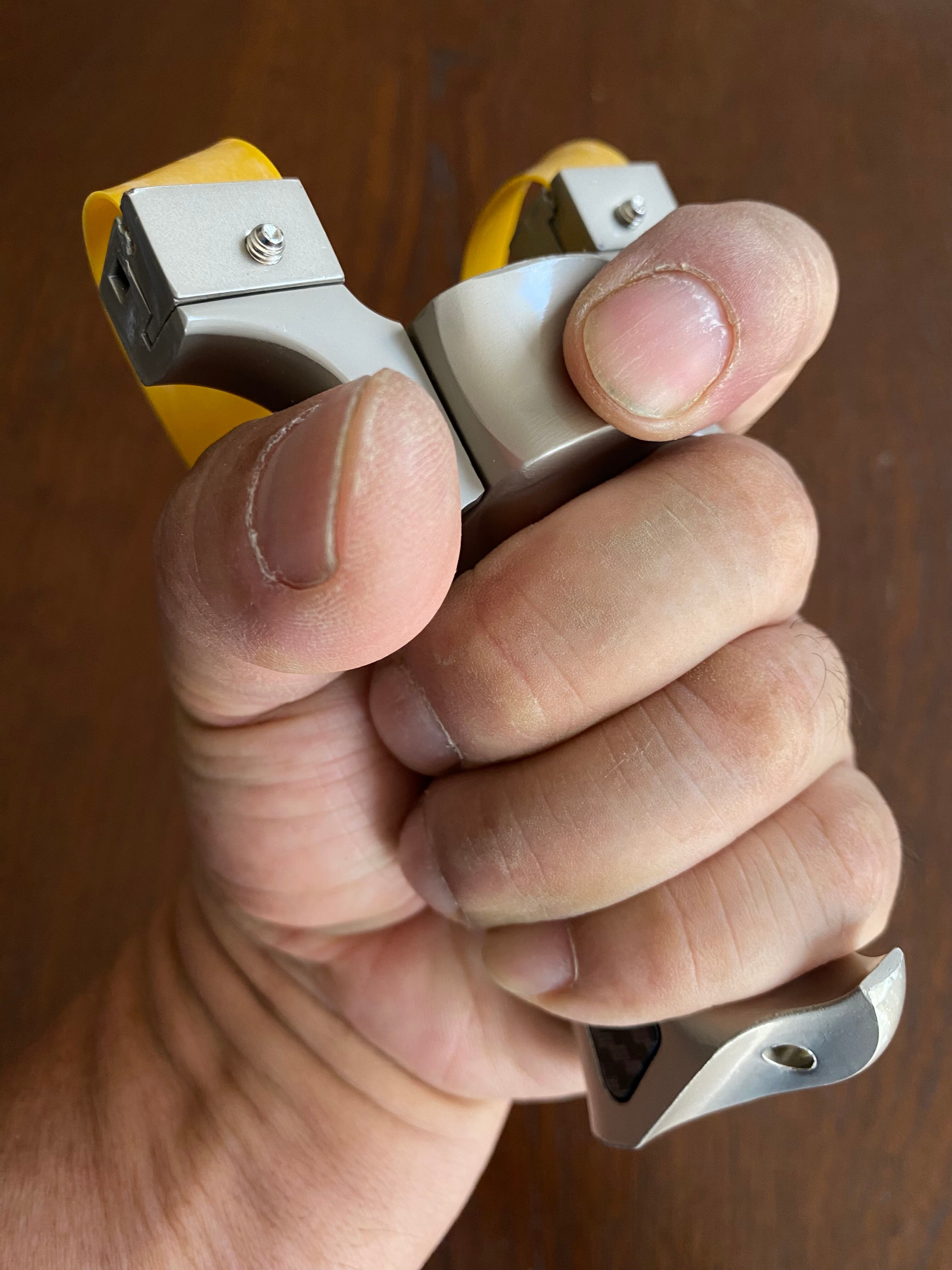 外国のショップから直接購入することができない初心者の方向けに輸入をした商品です。スタンダードな形にワンタッチゴム装着のドラゴントゥース機構付きの物です。ショップによっては日本向けにスリングショットを販売できない店もある中で、1ヶ月ほどかかりやっと仕入れても不良品であったり、途中で紛失してしまい届かなかったりとリスクが非常に大きいので、高めの価格設定にしています。それでも欲しいと思われる方だけお買い求めください。ご自分で購入できる方はその方が安いのでお勧めです。但し、1ヶ月待ち、途中紛失、不良品、注文キャンセルのリスクは覚悟して下さい。
