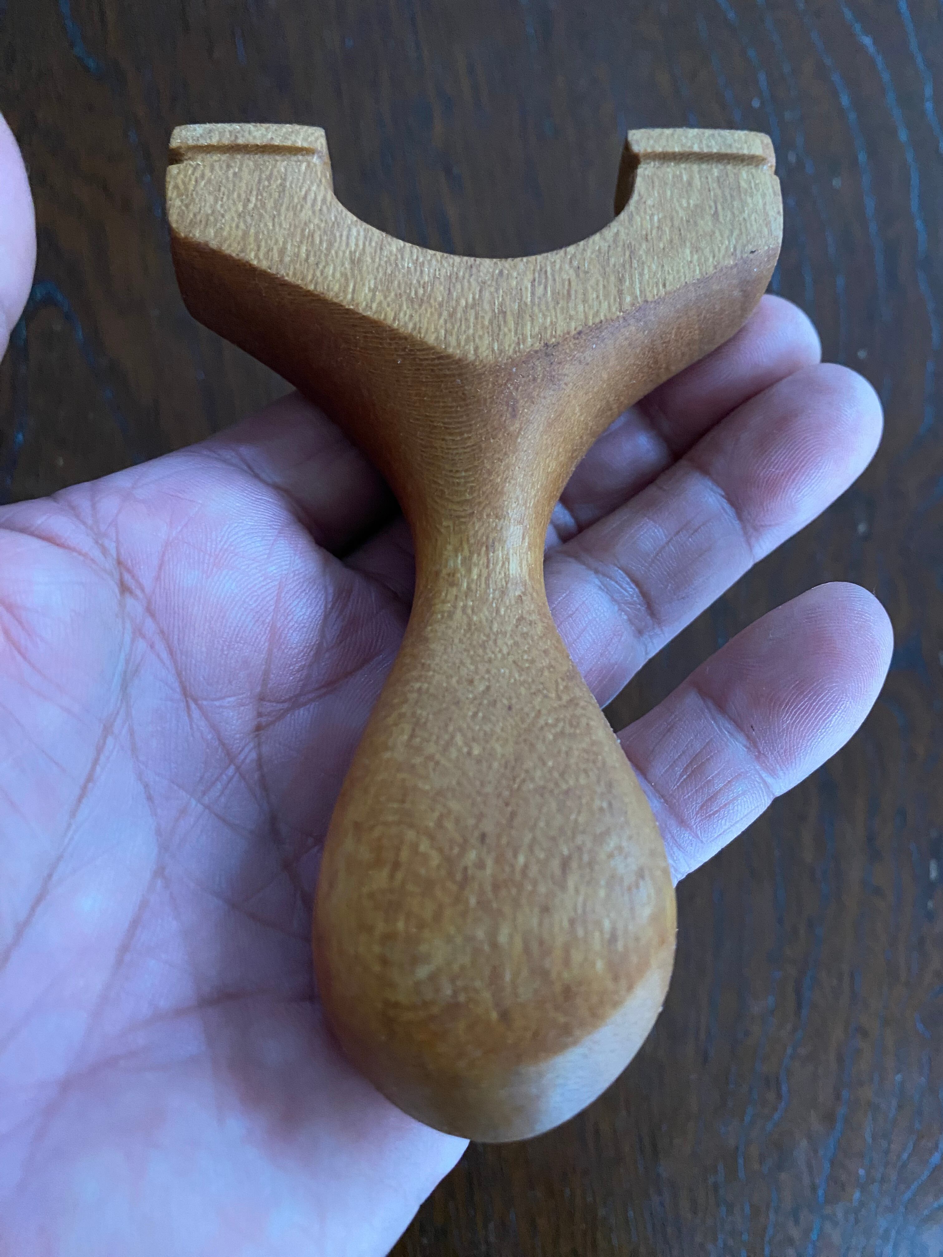 ■ No.815 練習用 簡易スリングショットRough finishは、小さめの手の方でも扱いやすい設計が特徴の練習用スリングショットです。樹種は不明ですが、適度な硬度を持ち、表面はざらつき感が残っているため滑り止め効果も兼ね備えています。標準的なスタイルと、使い方もシンプルな標準的なゴムの装着方法で、まずはスリングショットの楽しさを体感するのに最適な一品です。