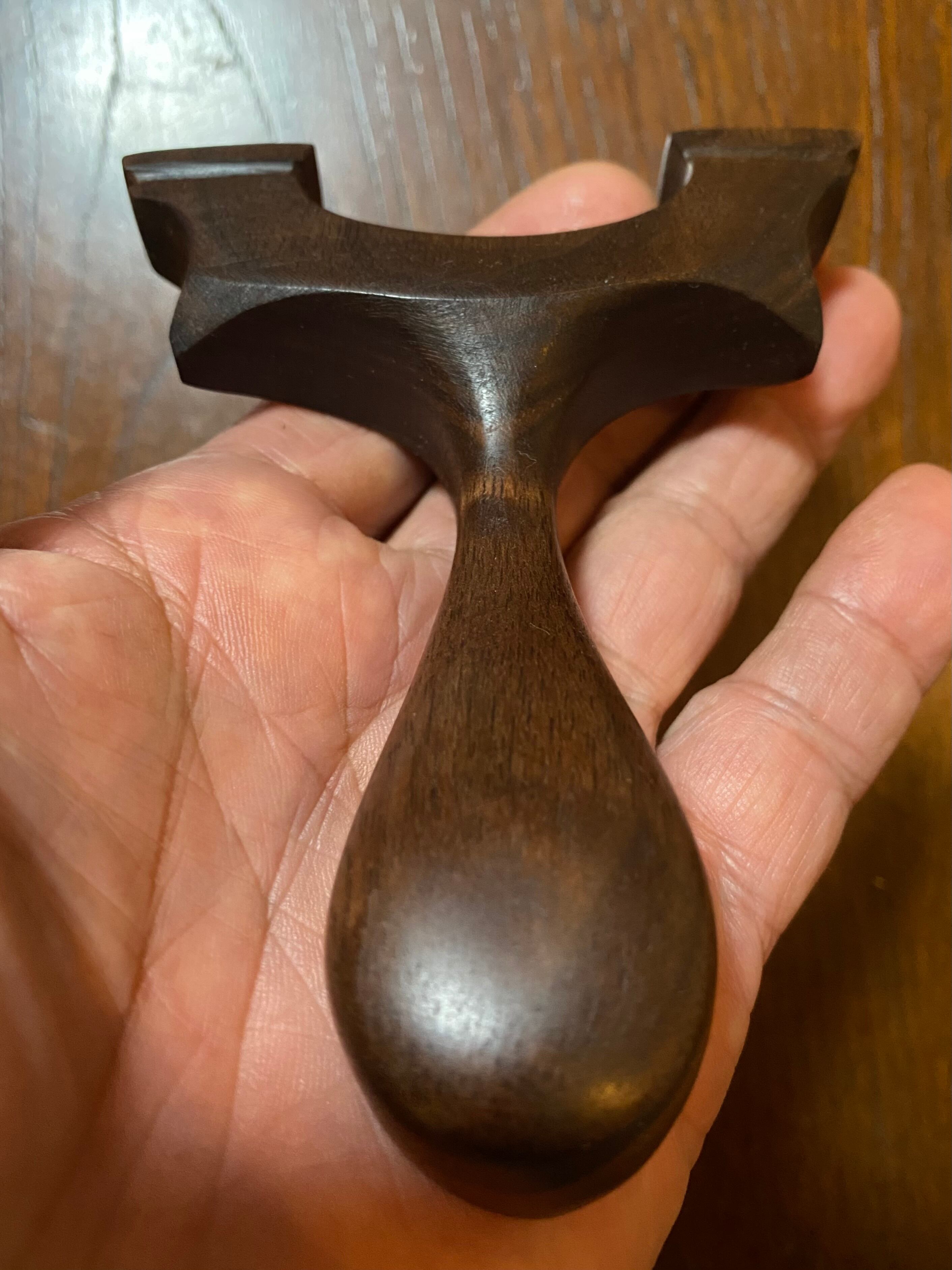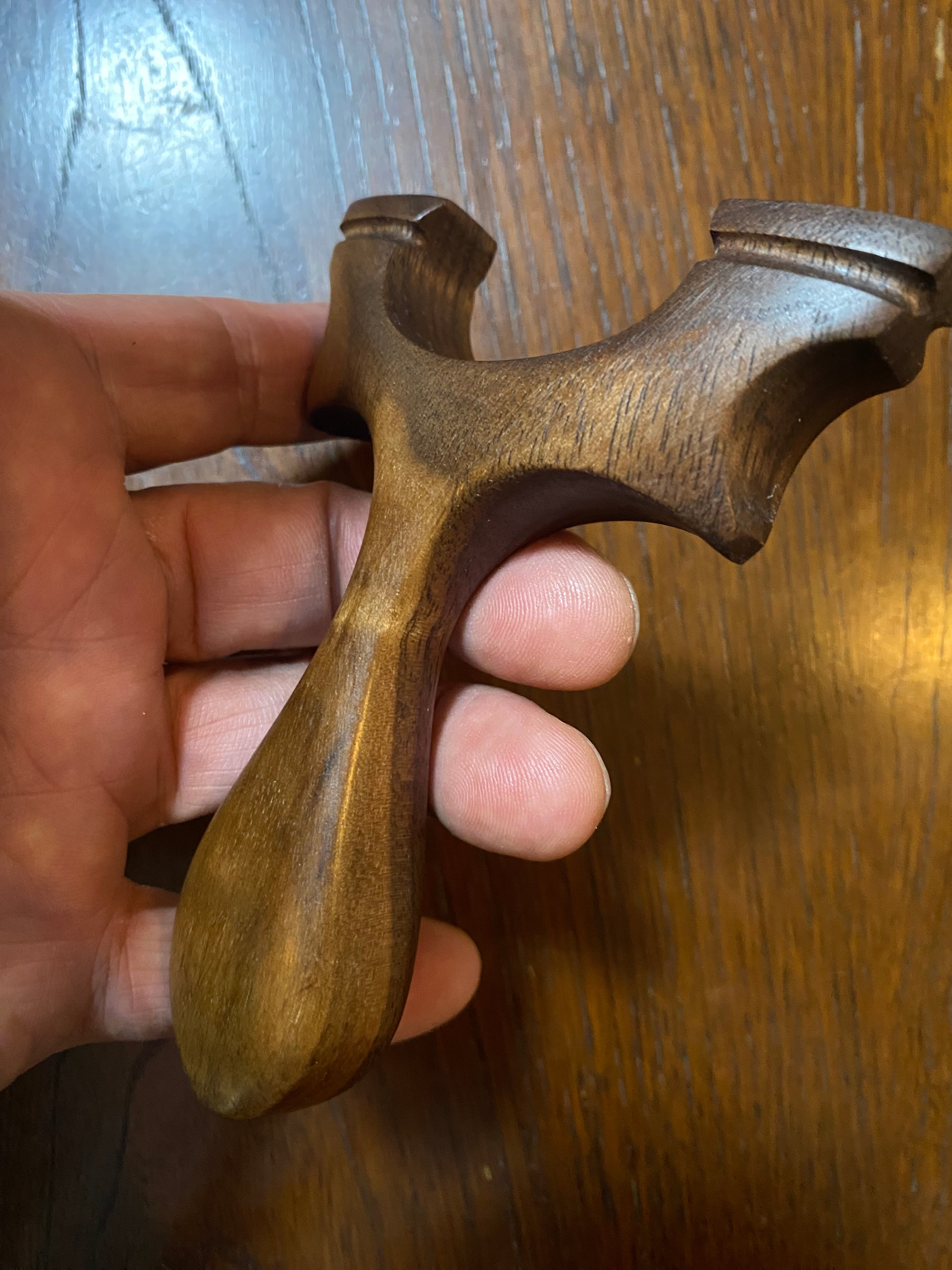 ■ No.834 標準的スリングショット(ウォールナット)は、ピンチグリップでもサムグリップでも使いやすい設計が特徴のスリングショットです。光明杢のウォールナット無垢材という高品質な素材は、他とは一線を画す美しさと強度を兼ね備えています。初心者からベテランまで幅広いユーザーにお勧めできる一品です!観賞用としても使える高級品です。