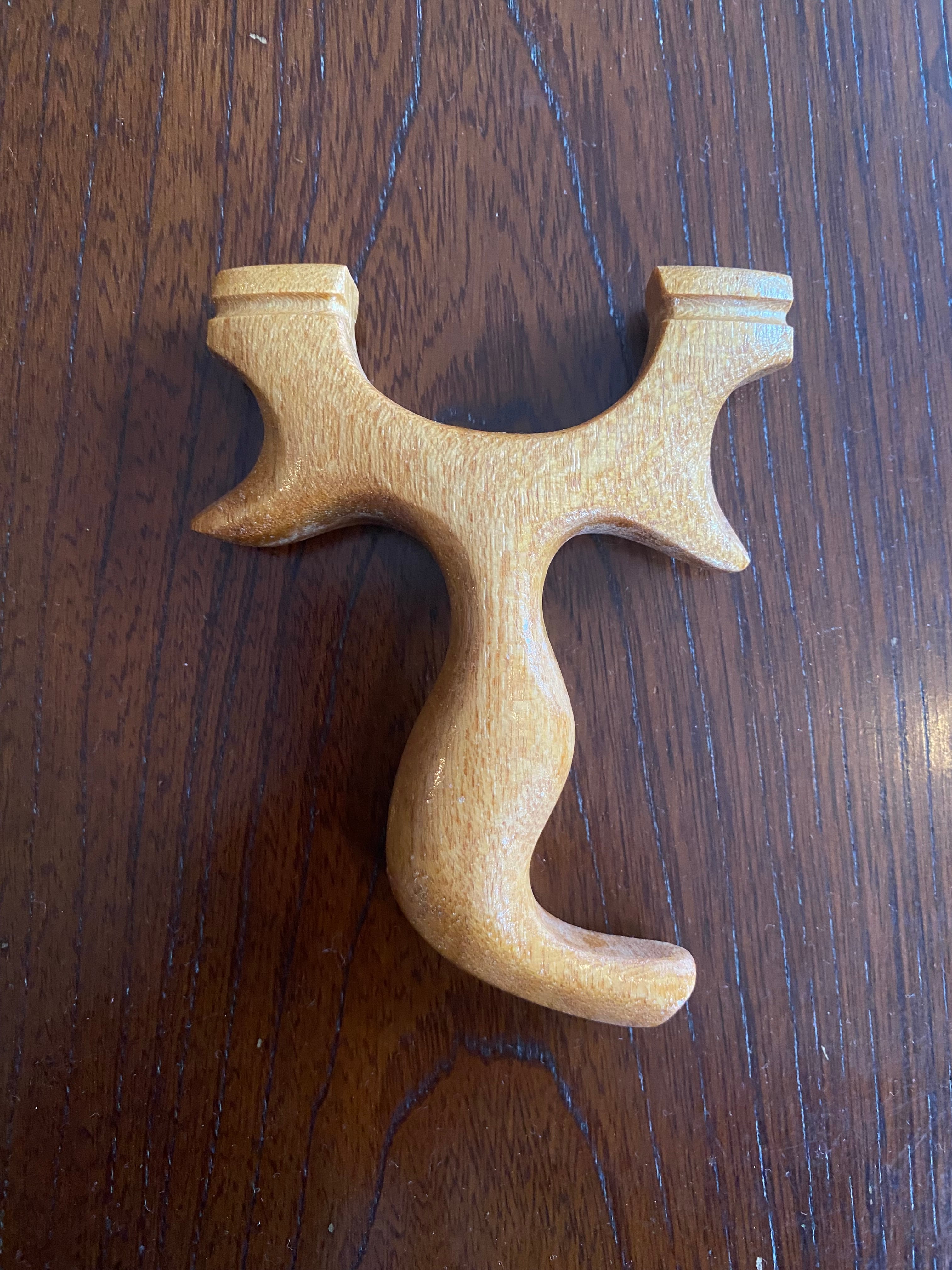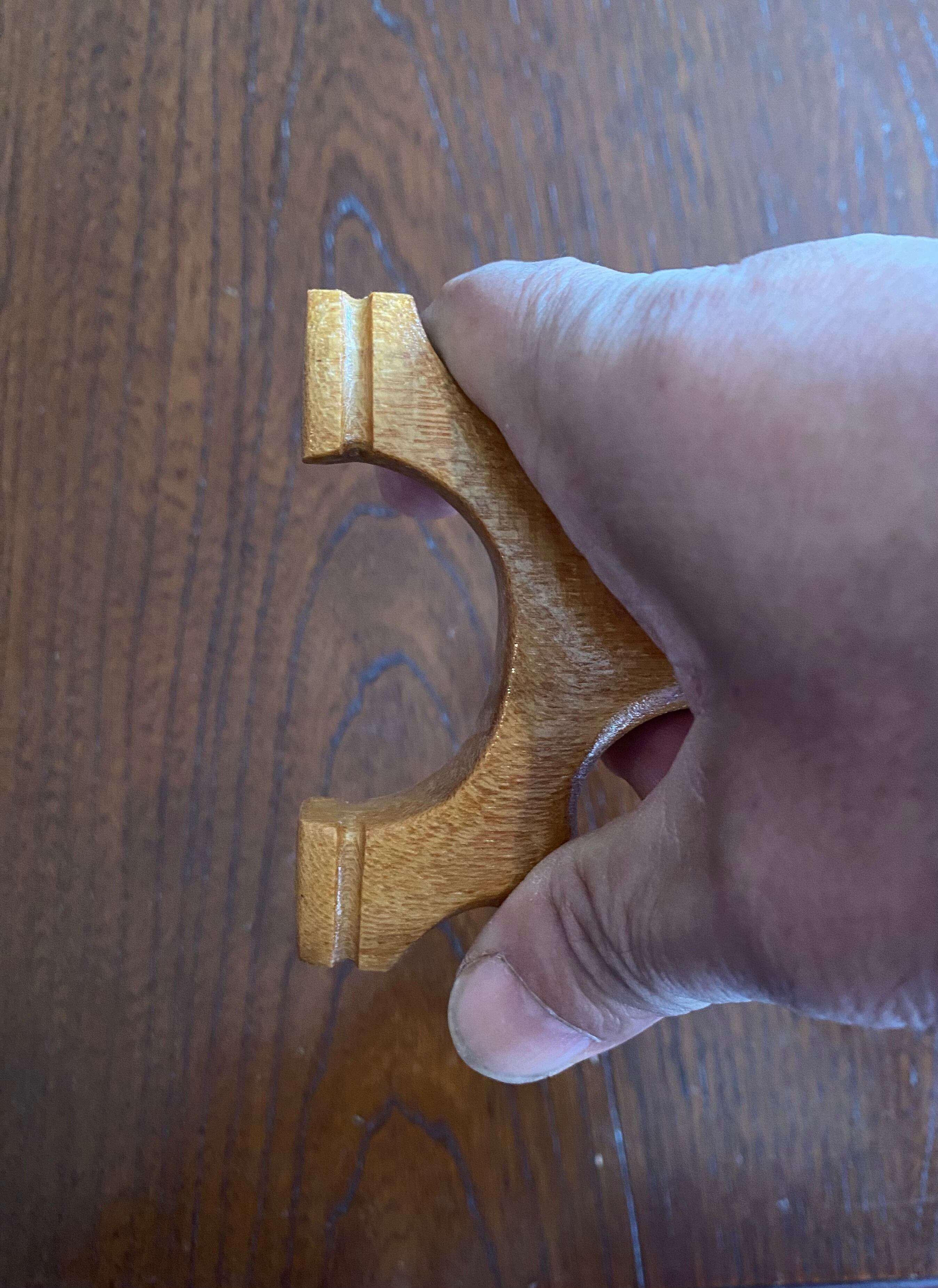 このスリングショットは、軽量でコンパクトなデザインを兼ね備えており、持ち運びにも便利なためサブ機としても最適です。気軽に携帯できるため、アウトドアや日常のアクティビティに最適なパートナーとなるでしょう。木種は不明ですが、木固めエースを染み込ませた上で亜麻仁油+蜜蝋で更に表面の木質強化を施し、表面もスムーズに仕上げています。