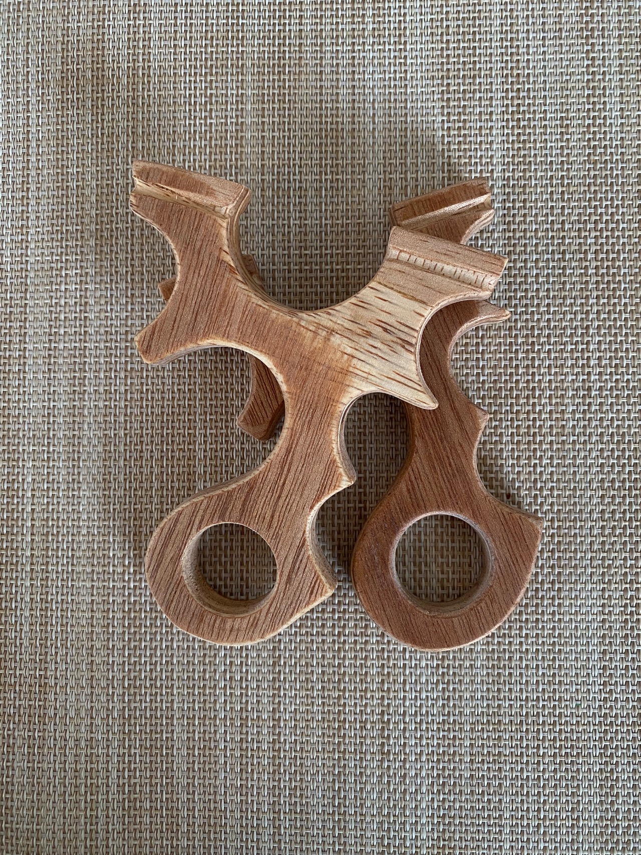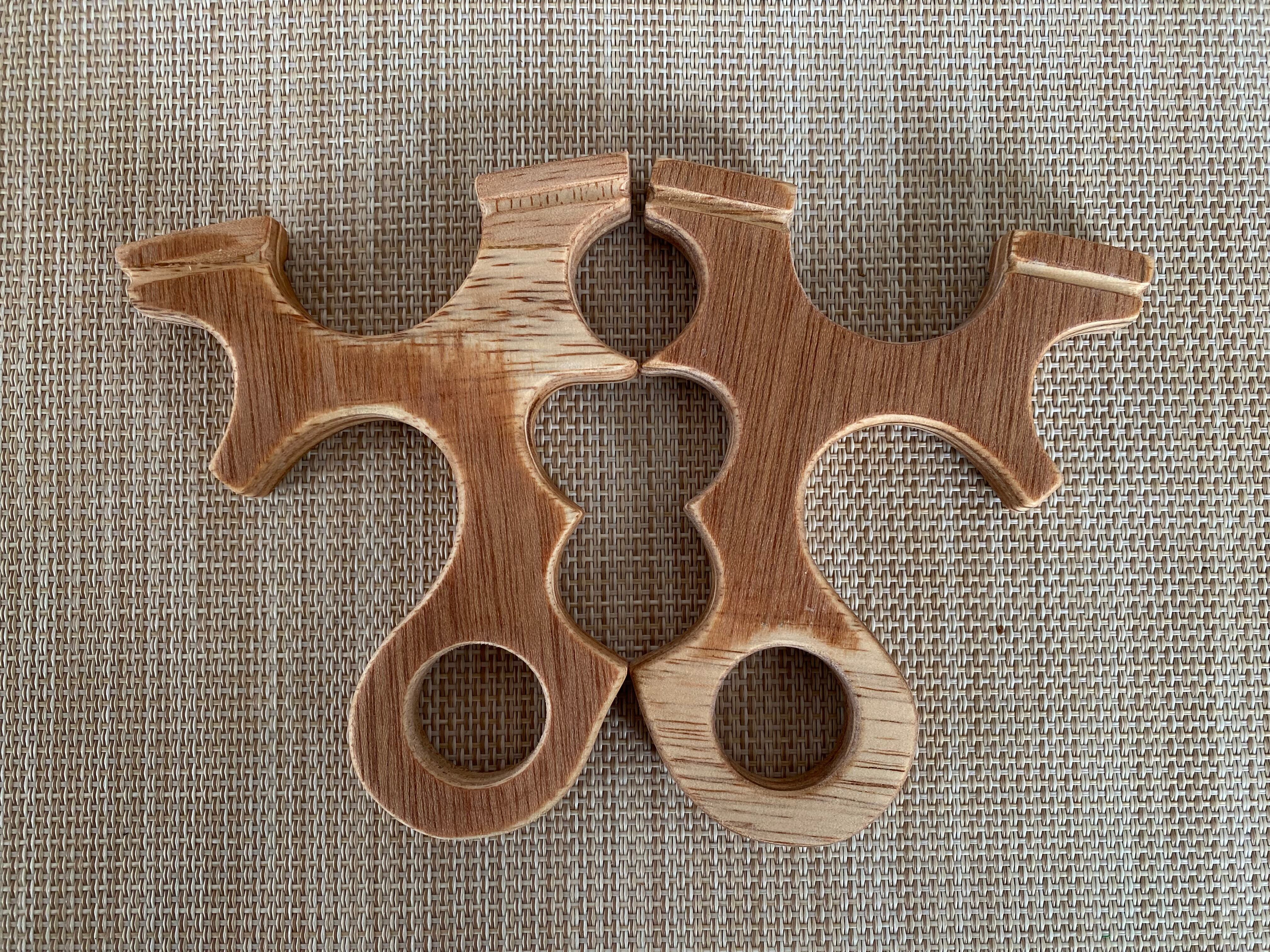 ◾️ No.840 Pinky Hole(プロト)合板は、3点支持スリングショットの小指穴タイプの試作品です。特に合板を使用しており、平型のデザインにより裏表が可能で、左右どちらの利き手にも対応します!同じ物を2個作成しましたが、こちらの価格は1個の値段です。