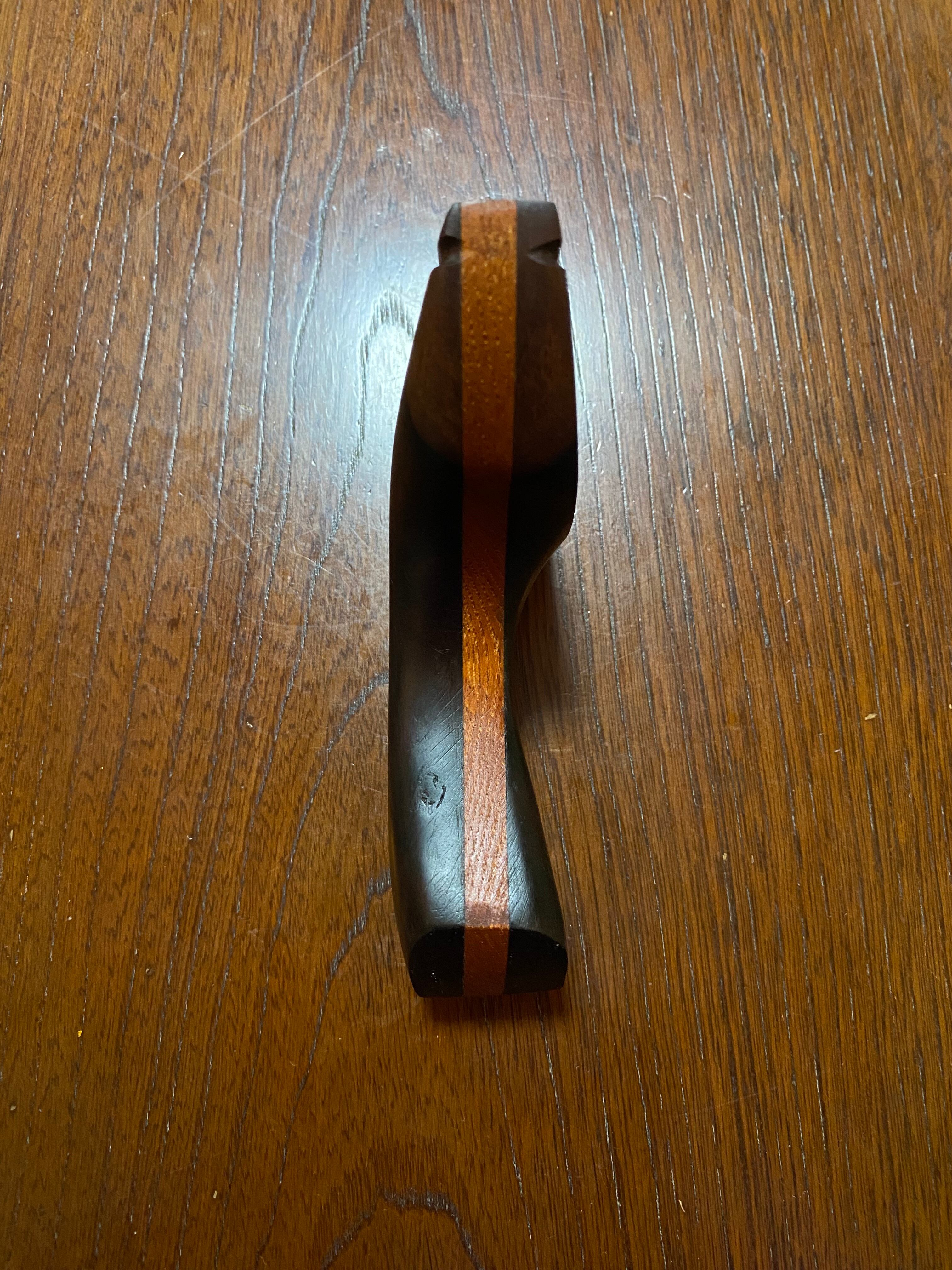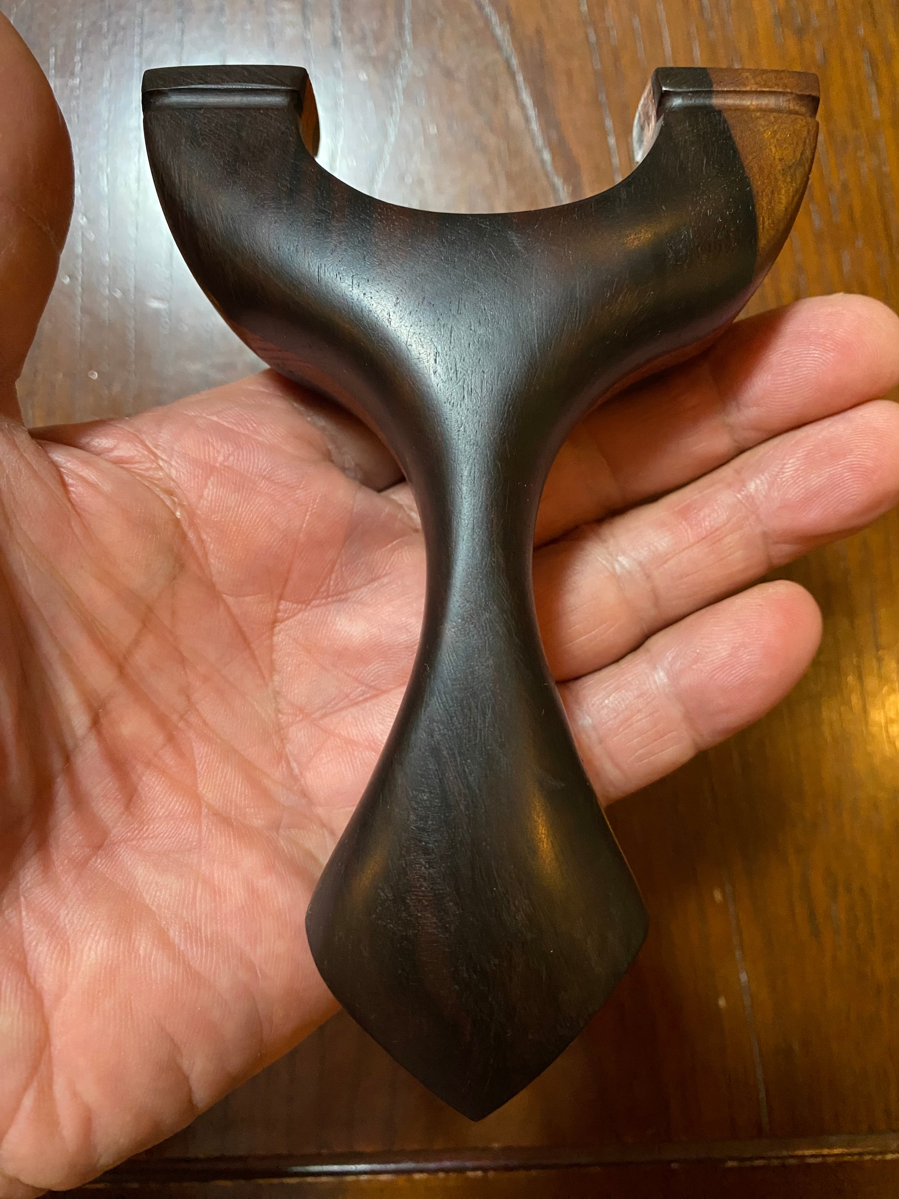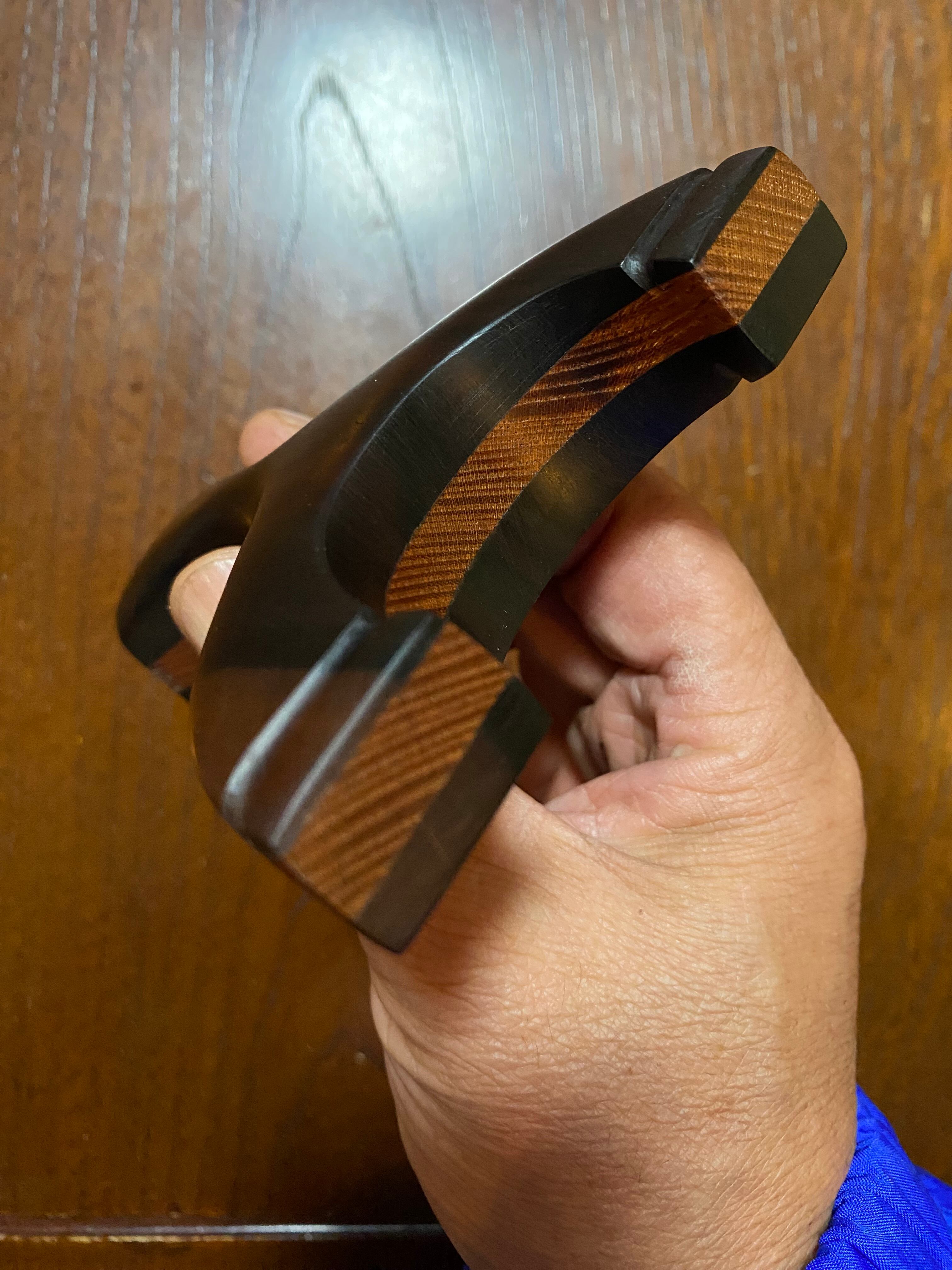 ■ No.844 Specialインテグレーター(黒檀+欅+黒檀)は、欅板を黒檀2枚でサンドイッチした特別な贅沢素材から削り出され、優れた機能を発揮する厚みを持つハンドルを特徴としています。幅広のフォークにより、サムグリップがしやすく、優しく丸みを帯びたデザインは、コントロールのしやすさを実現しています。また、掌横で固定される扇型ハンドルが、安定感を与えながら射撃をサポートします。全体は亜麻仁油+蜜蝋で強化され防水性能も発揮します。