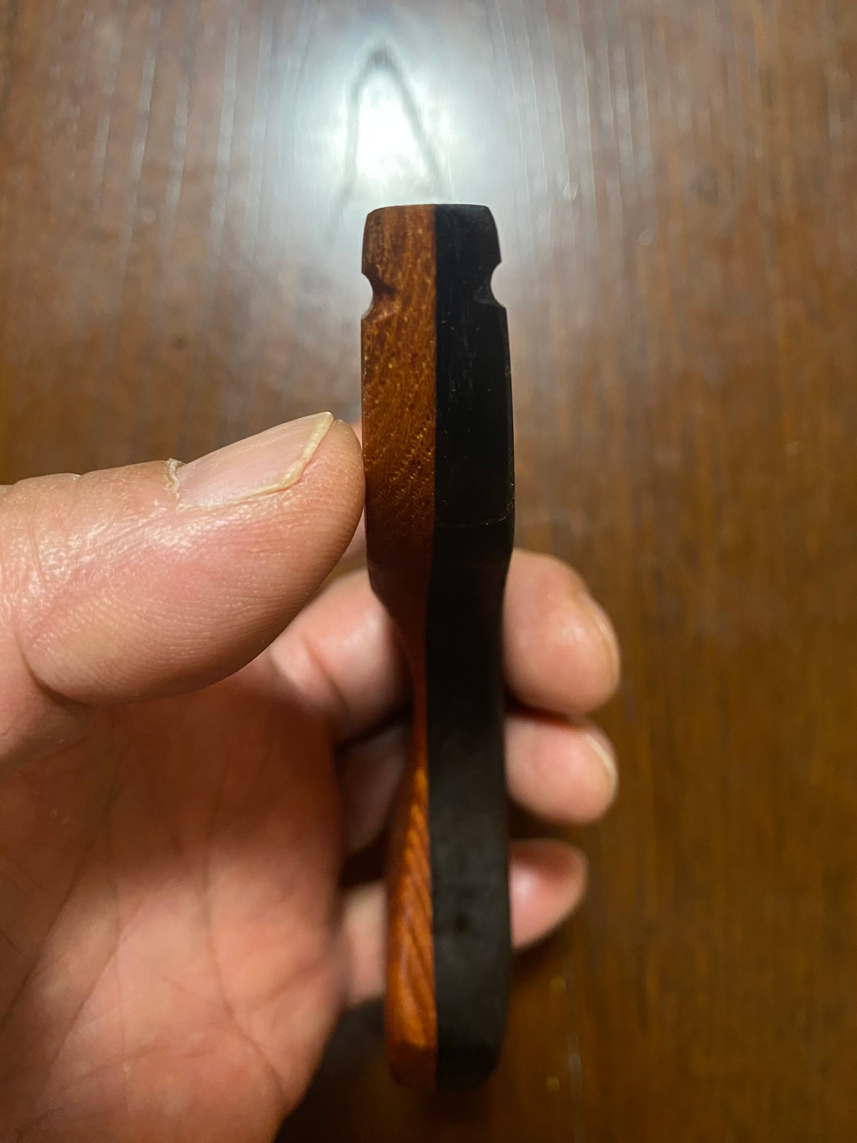 ◾️ No.845 Specialインテグレーター薄型平造り(黒檀+欅)は、No.844を作った残りの黒檀の端材を接合し、欅の薄板を巧みに組み合わせた贅沢なコンビ素材から生まれた、スタイリッシュで機能的なスリングショットです。薄型デザインは、持ち運びやすさを重視し、さまざまなシーンでの使用に最適化されています。