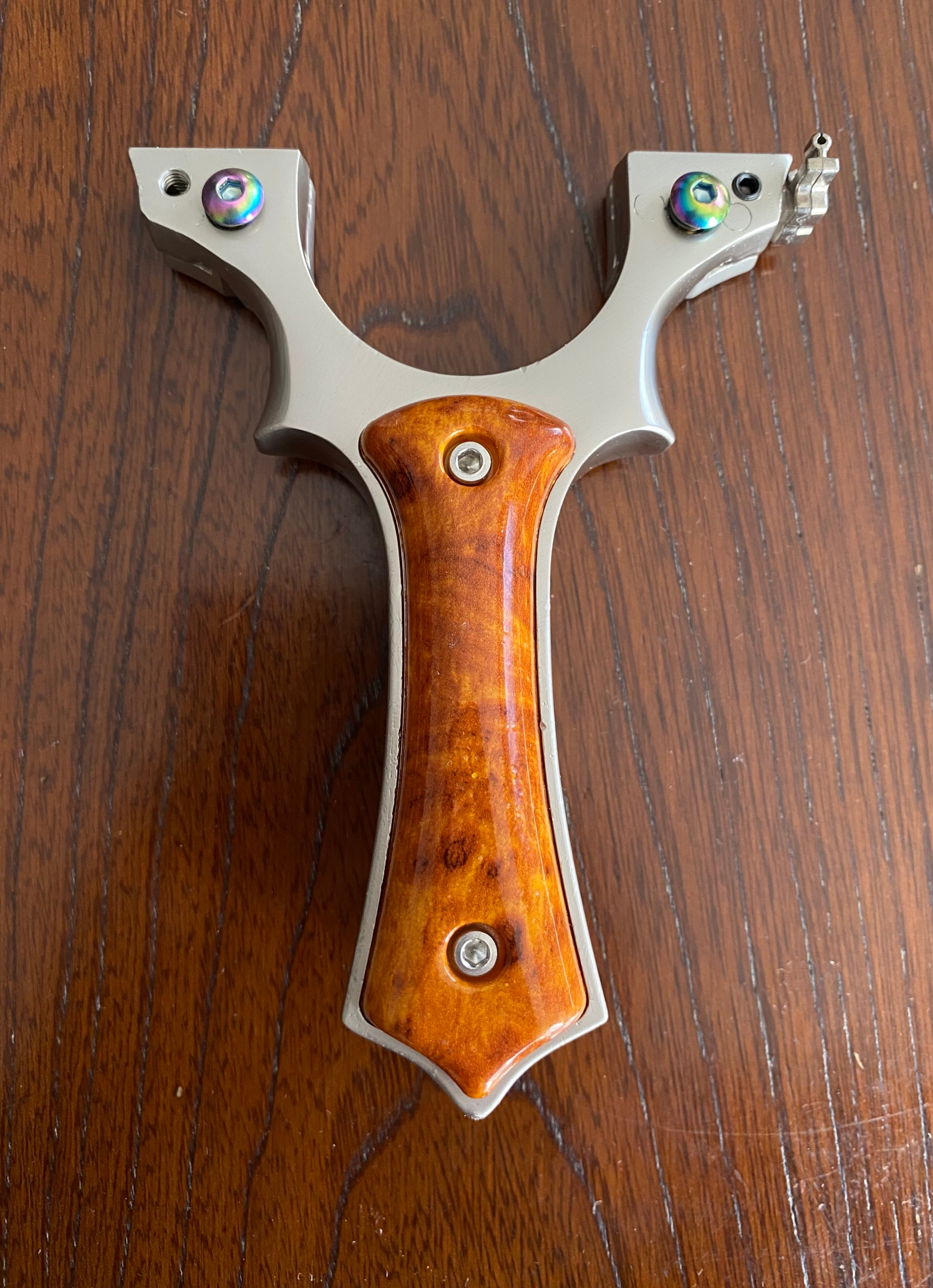 No._19 ステンレス製 高精度スリングショット (ネジ留め式)ウッド風ハンドル