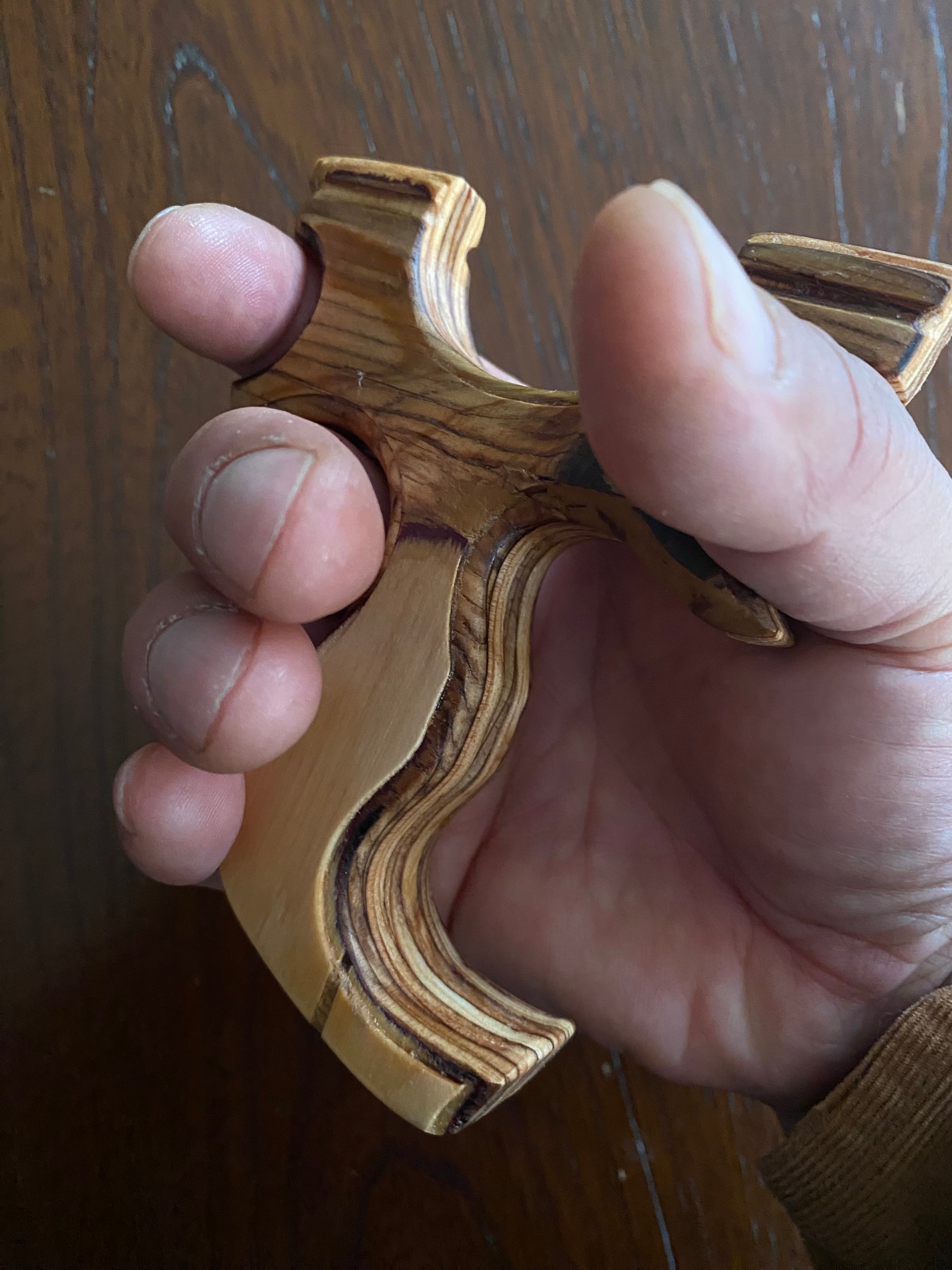このスリングショットは、軽量でコンパクトなデザインを兼ね備えており、持ち運びにも便利なためサブ機としても最適です。気軽に携帯できるため、アウトドアや日常のアクティビティに最適なパートナーとなるでしょう。合板素材で作られており、長時間の使用でも快適さを保ちます。また木固めエースで木質強化を施し、表面もスムーズに仕上げています。