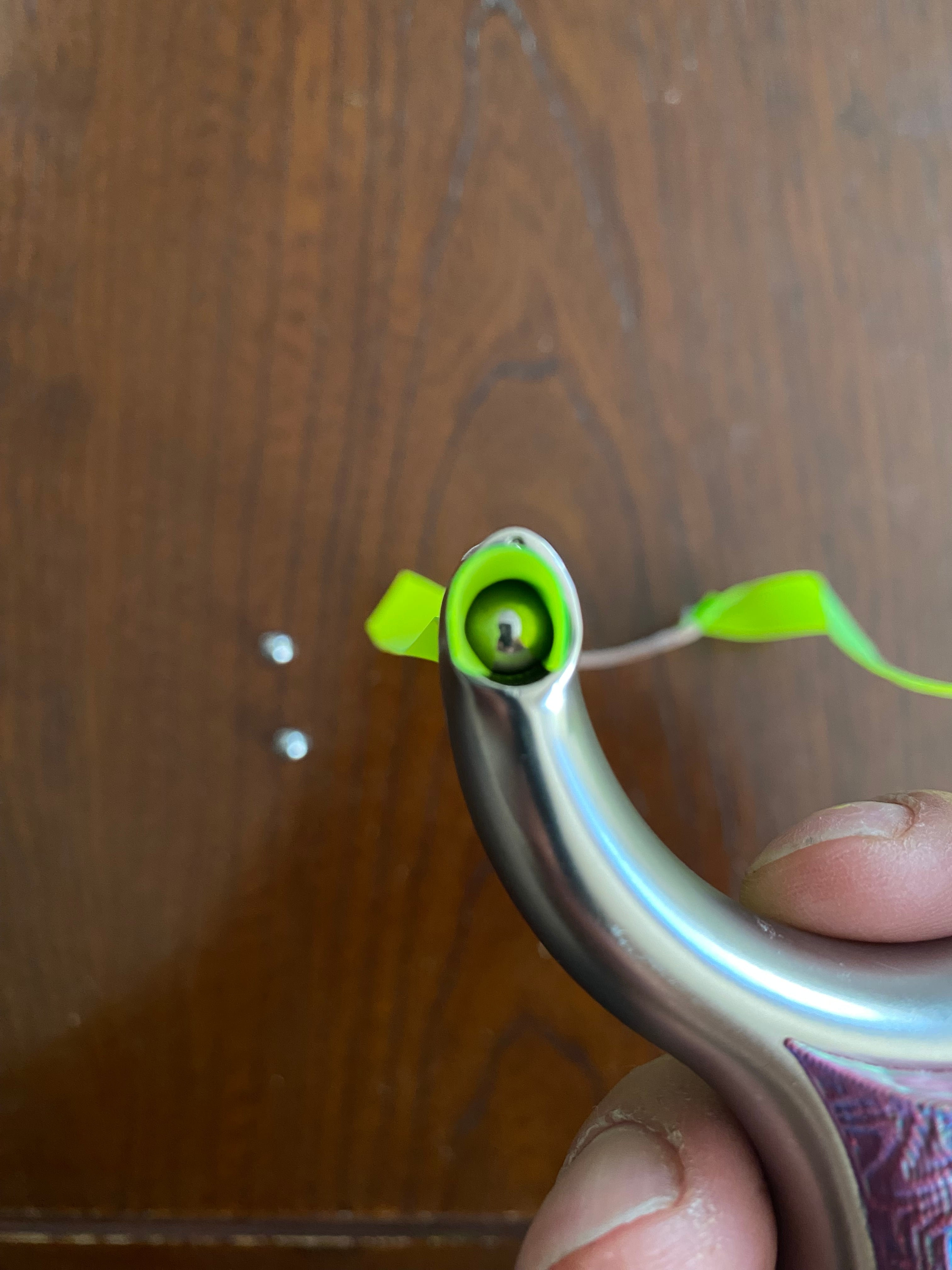 ■ No._22 鋼球留め式 高級ステンレス製スリングショットは、6.6mmの鋼球を使用して平ゴムを固定する革新的な設計が特徴のスリングショットです。このタイプは、平ゴムの取り付けが苦手な方にも安心してご使用いただける、扱いやすいアイテムです。高級感あふれるステンレス製のフレームは、強度と耐久性を兼ね備えており、長く愛用していただける一品です。