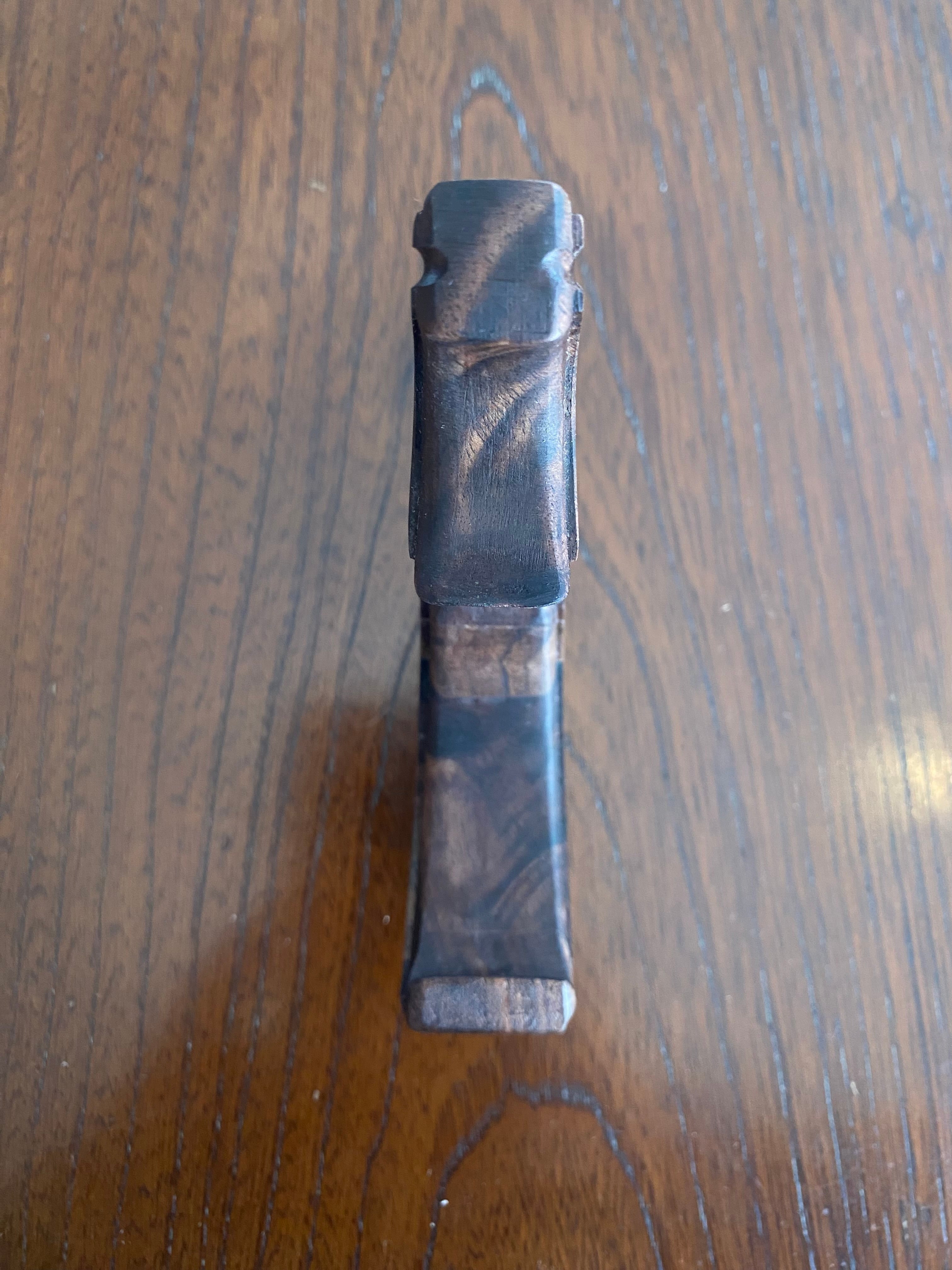 このスリングショットは、軽量でコンパクトなデザインを兼ね備えており、持ち運びにも便利なためサブ機としても最適です。気軽に携帯できるため、アウトドアや日常のアクティビティに最適なパートナーとなるでしょう。木種は不明ですが、木固めエースを染み込ませた上で亜麻仁油+蜜蝋で更に表面の木質強化を施し、表面もスムーズに仕上げています。