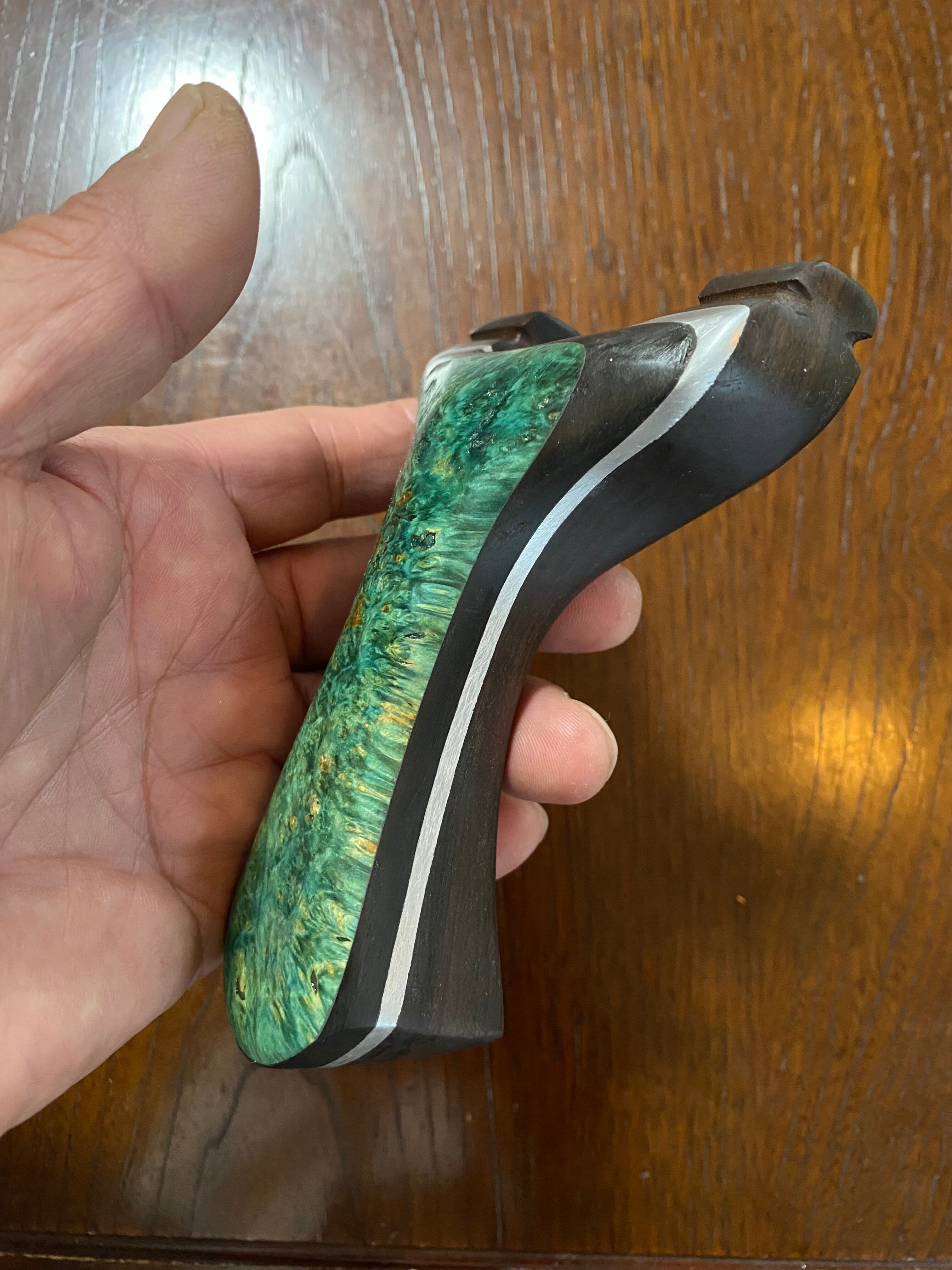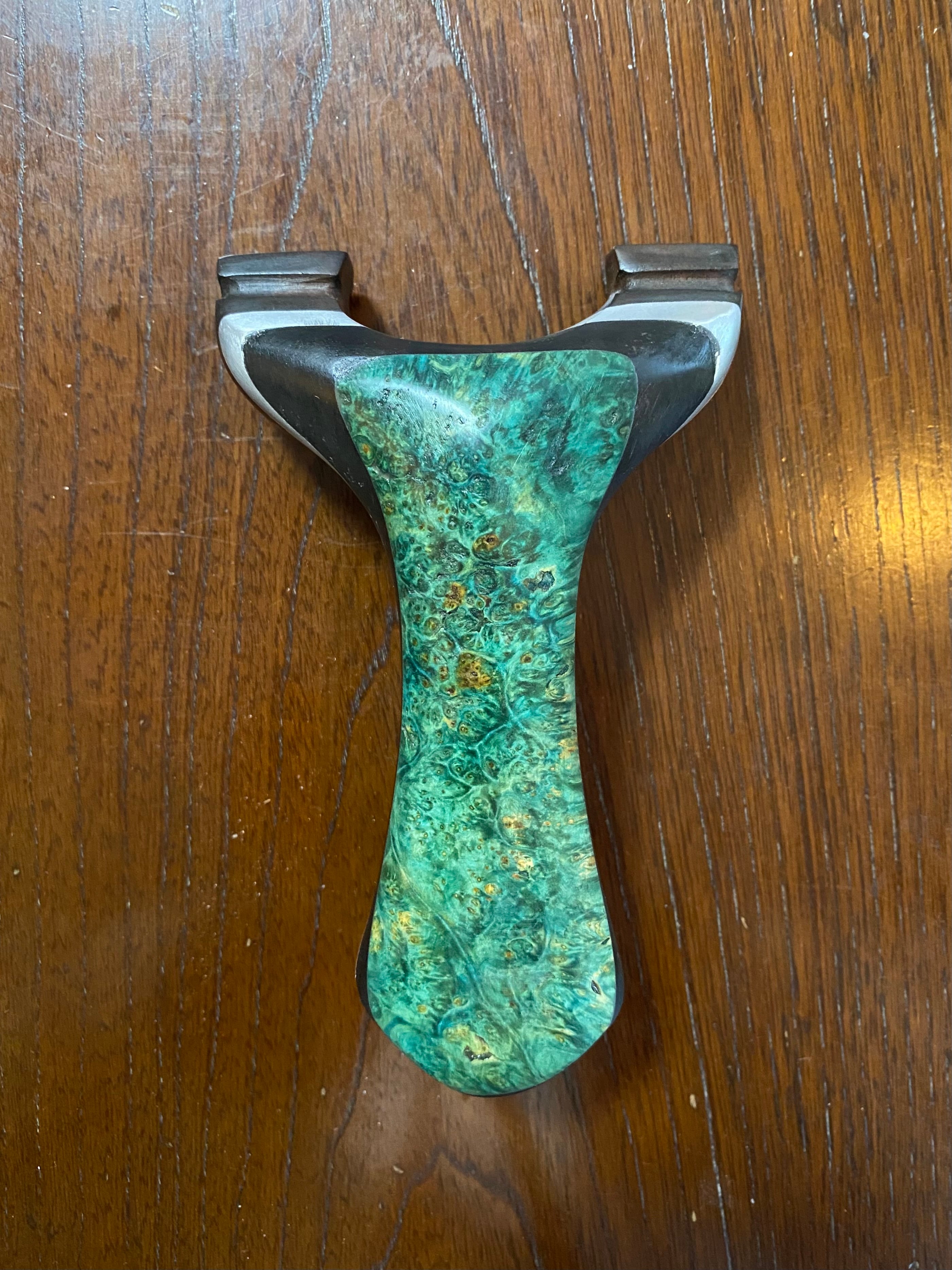 No.873 スタビライズドウッド緑スリングショット(黒檀・ウォールナット・アルミサンド)