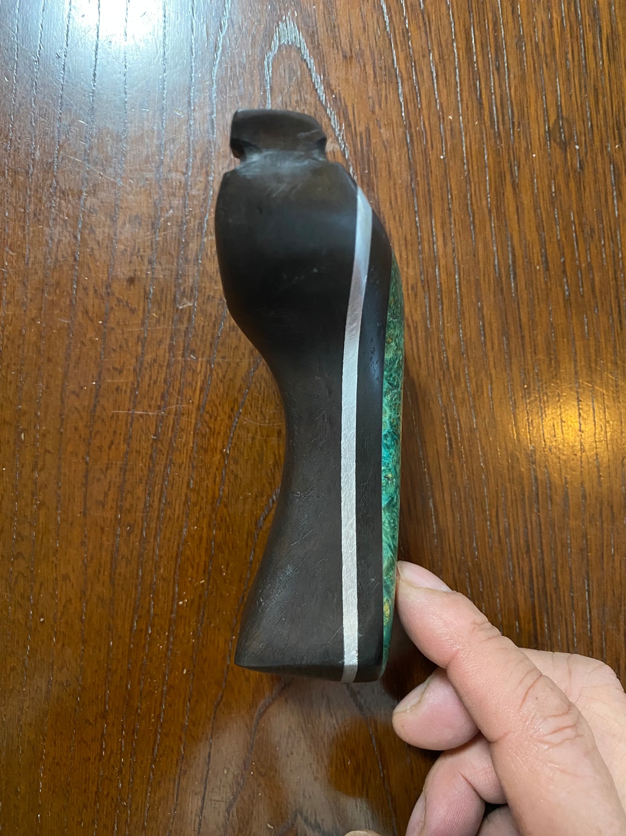 ■ 商品名:No.873 スタビライズドウッド緑スリングショット(黒檀・ウォールナット・アルミサンド)
