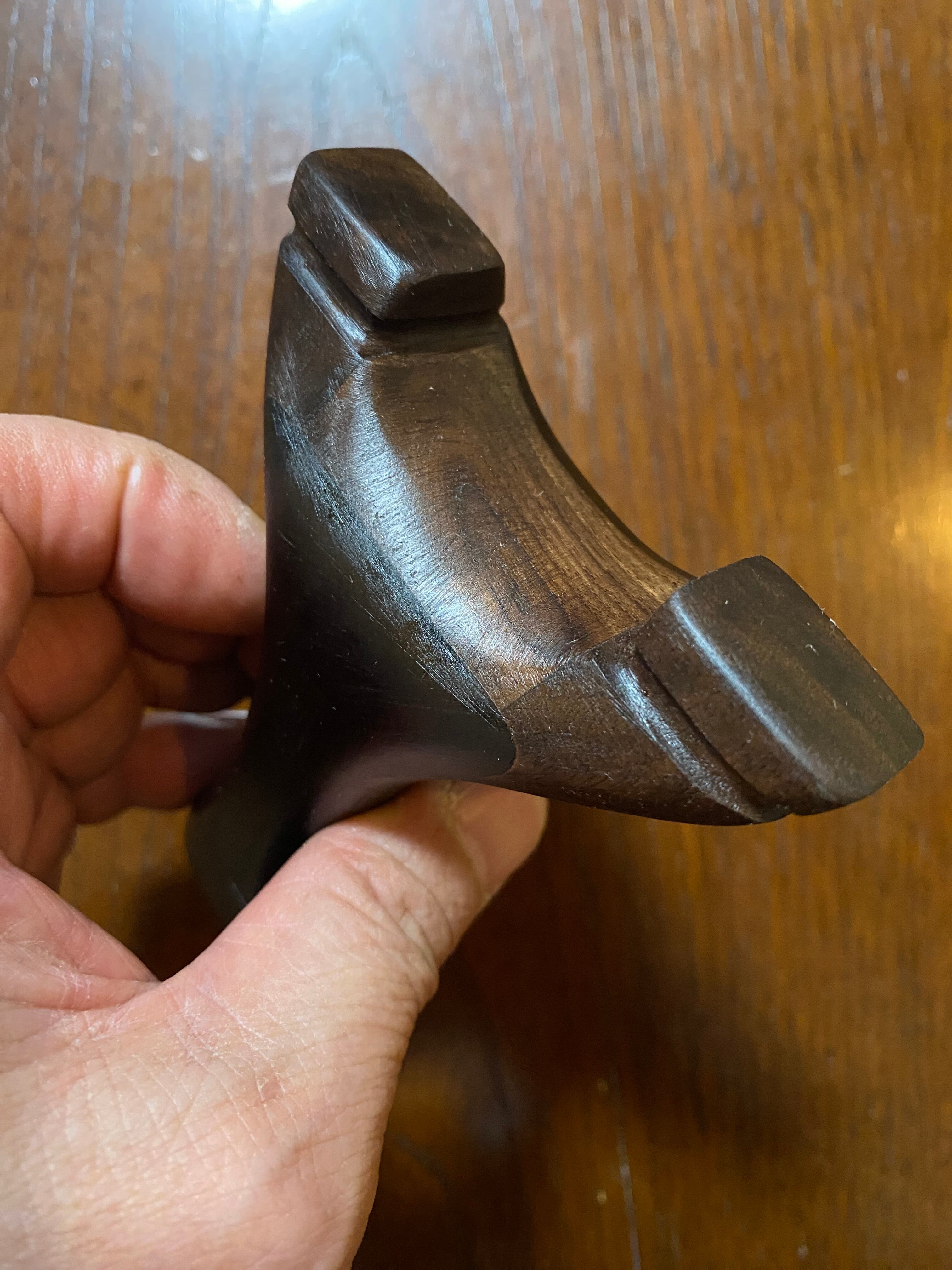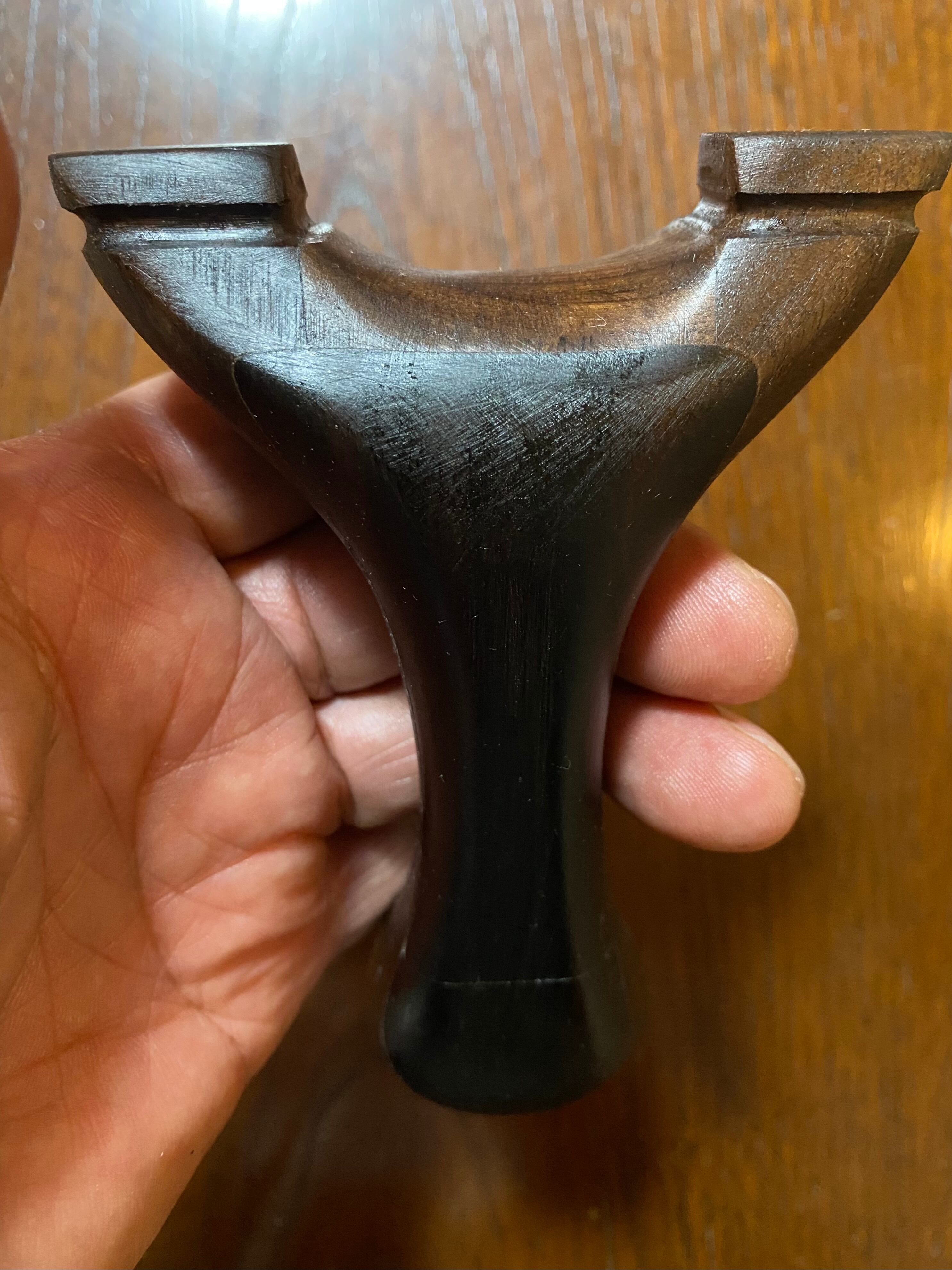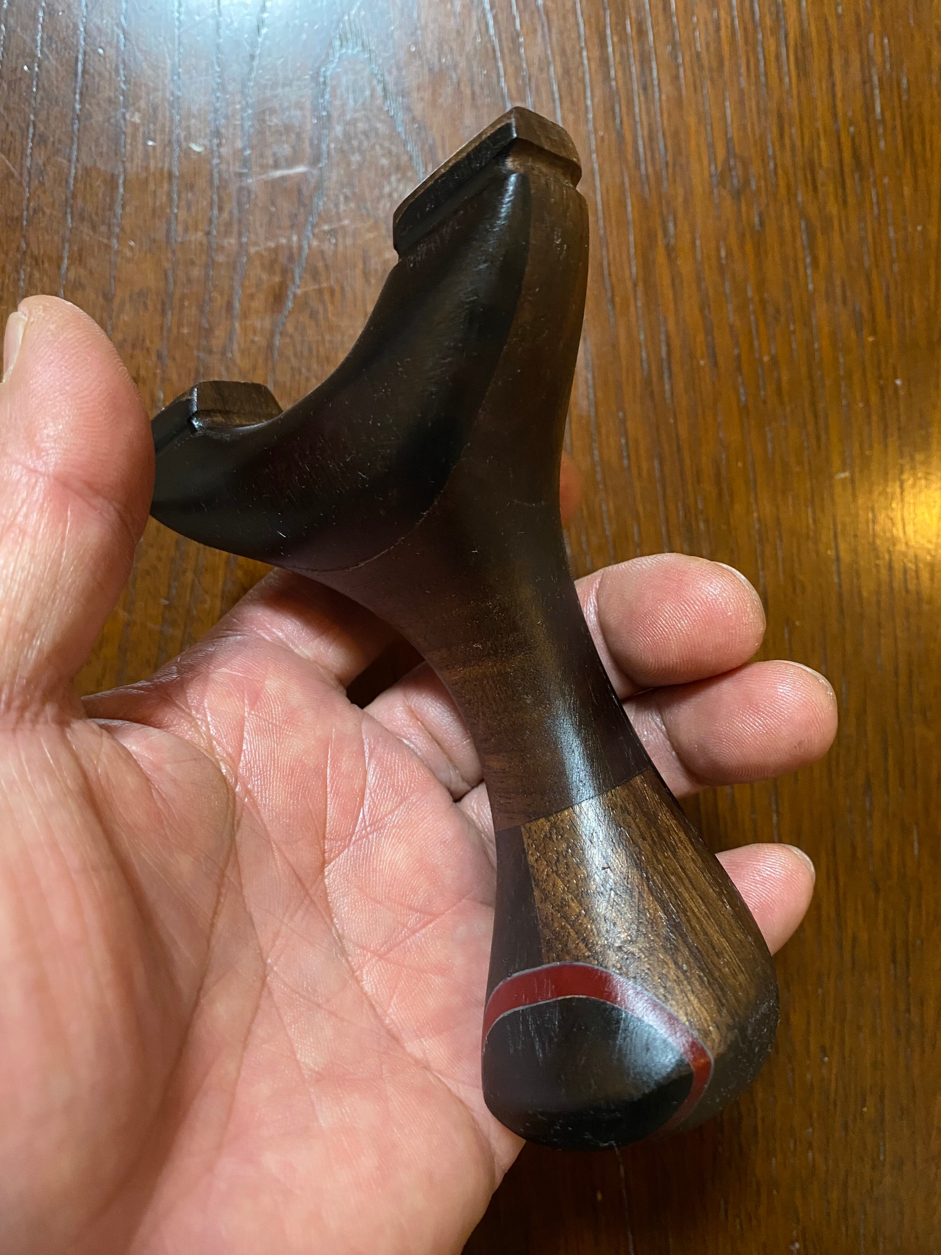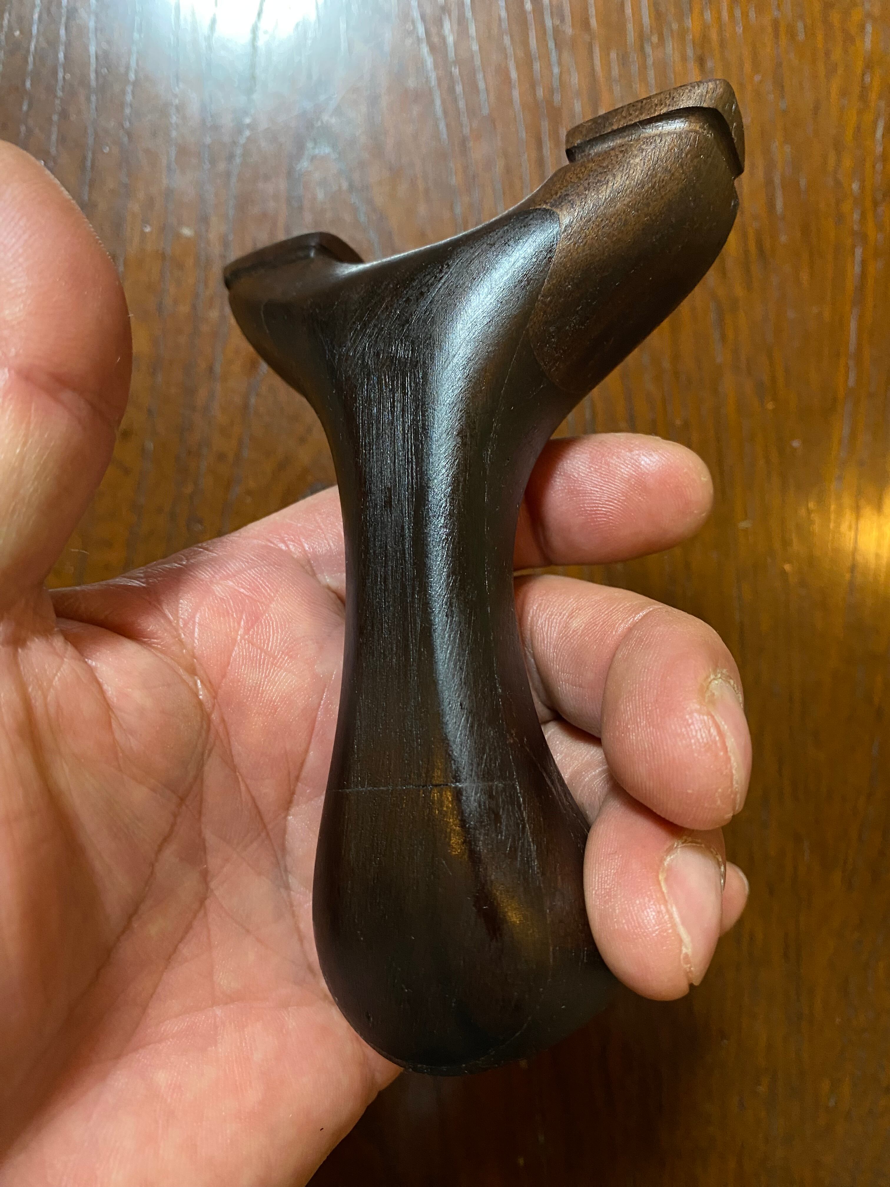 ■ No.878 NEW WAVE 大反りハンドル (黒檀 +オーク、白樫?)は、硬い木材から削り出された美しいデザインのスリングショットです。絶妙な大反りを持つハンドルは、持つ人の手にフィットし、使いやすさを追求した設計が特徴です。表側には黒檀を貼り付けてあり高級感を醸し出しています。