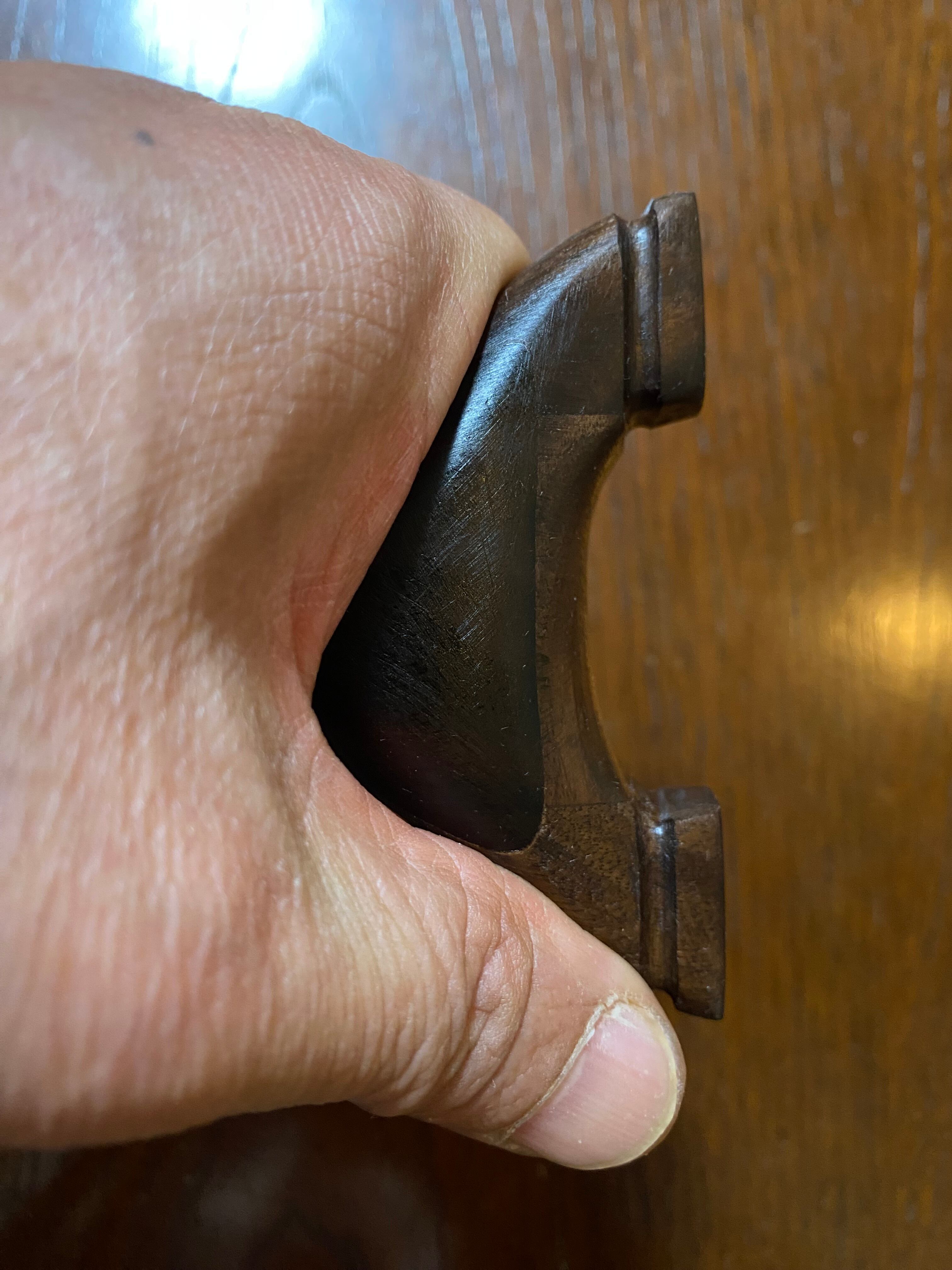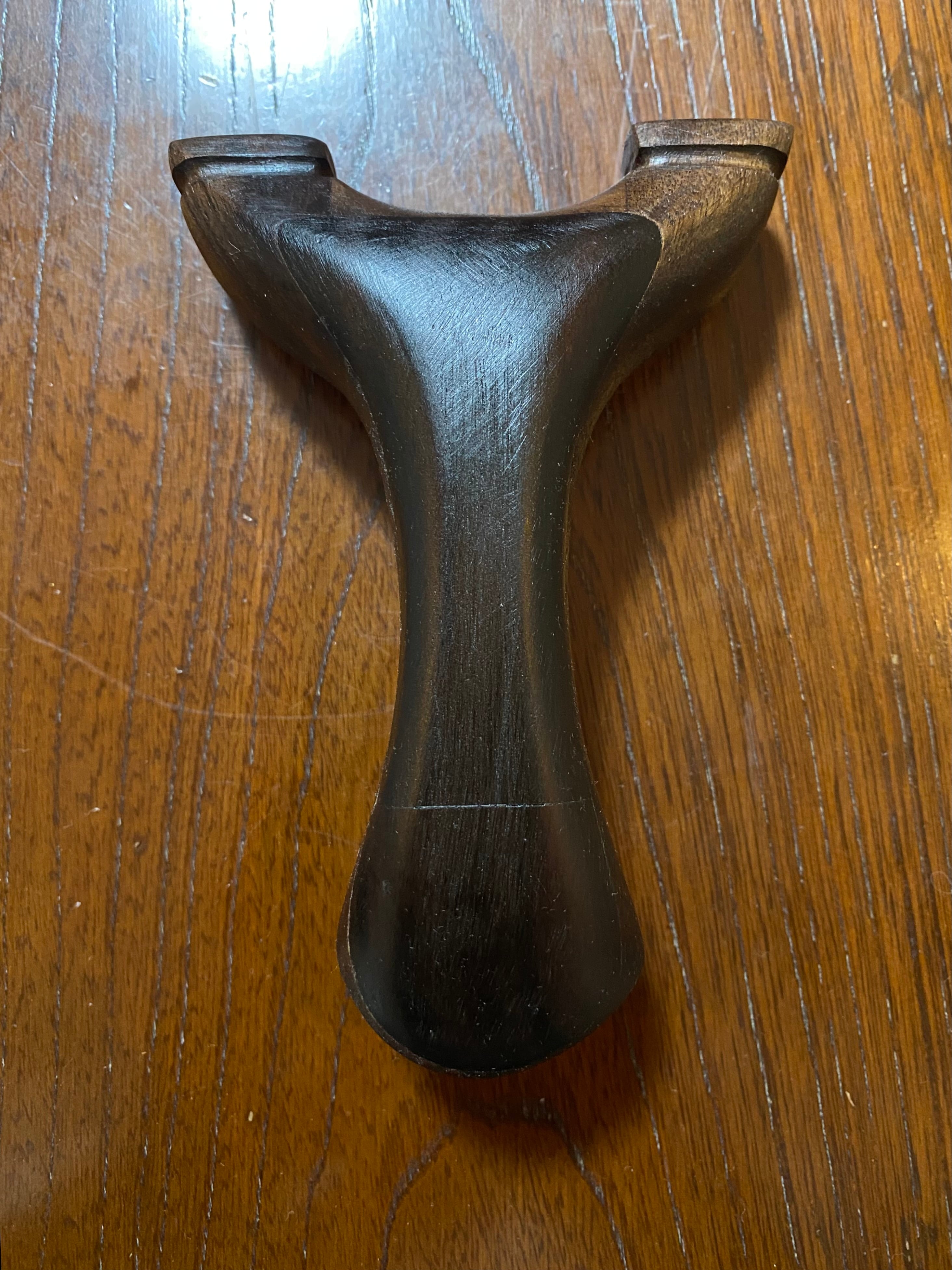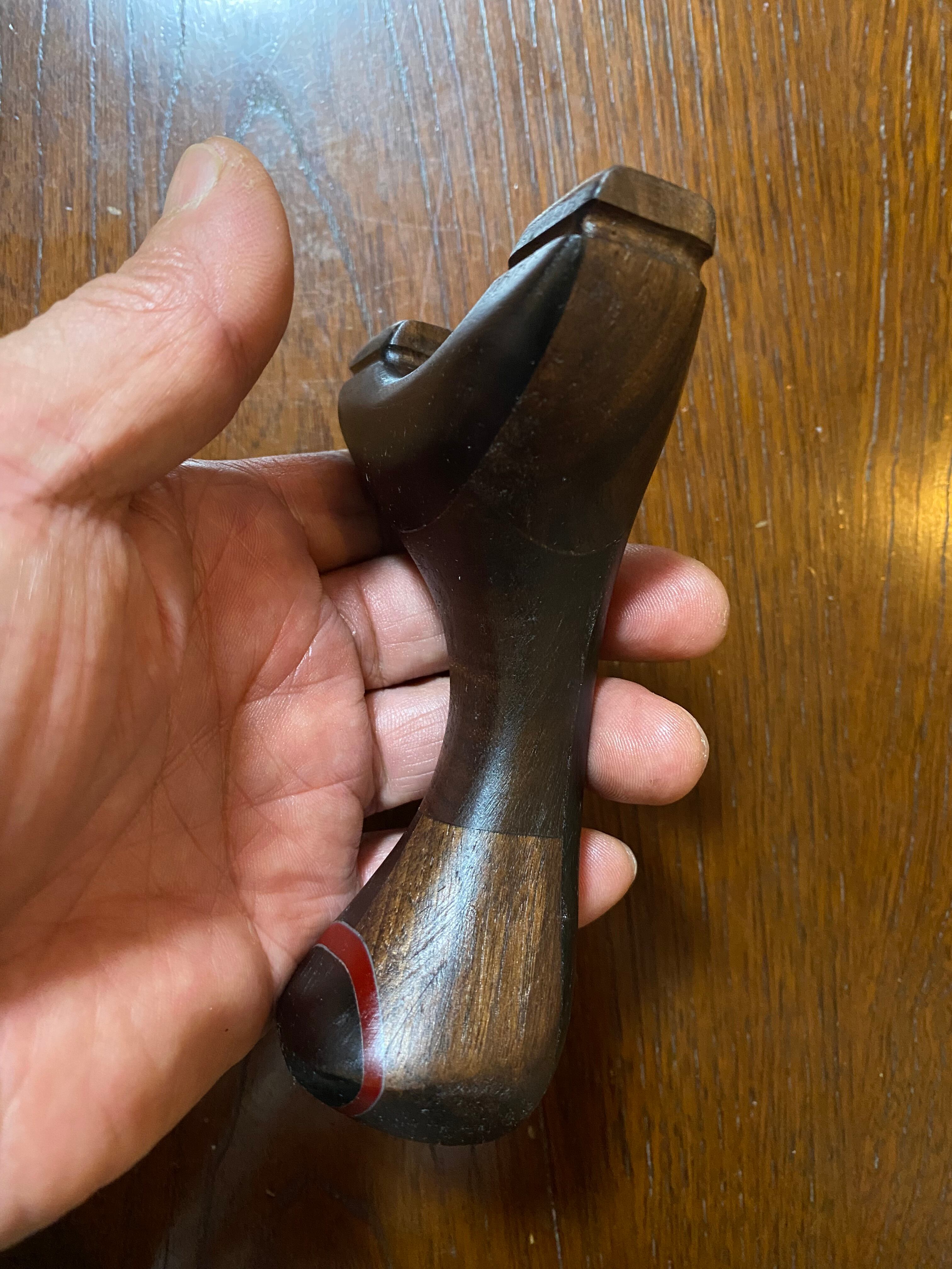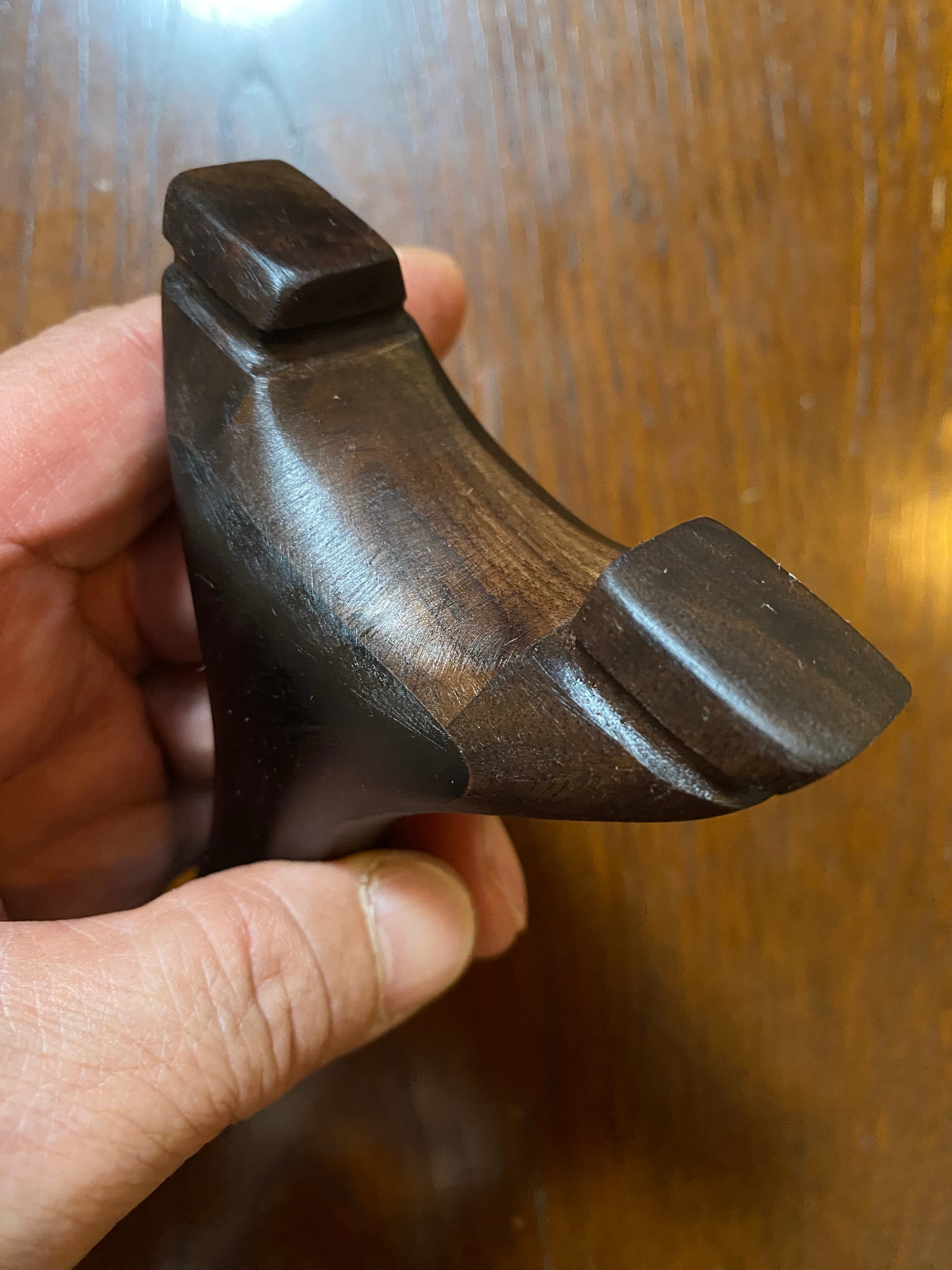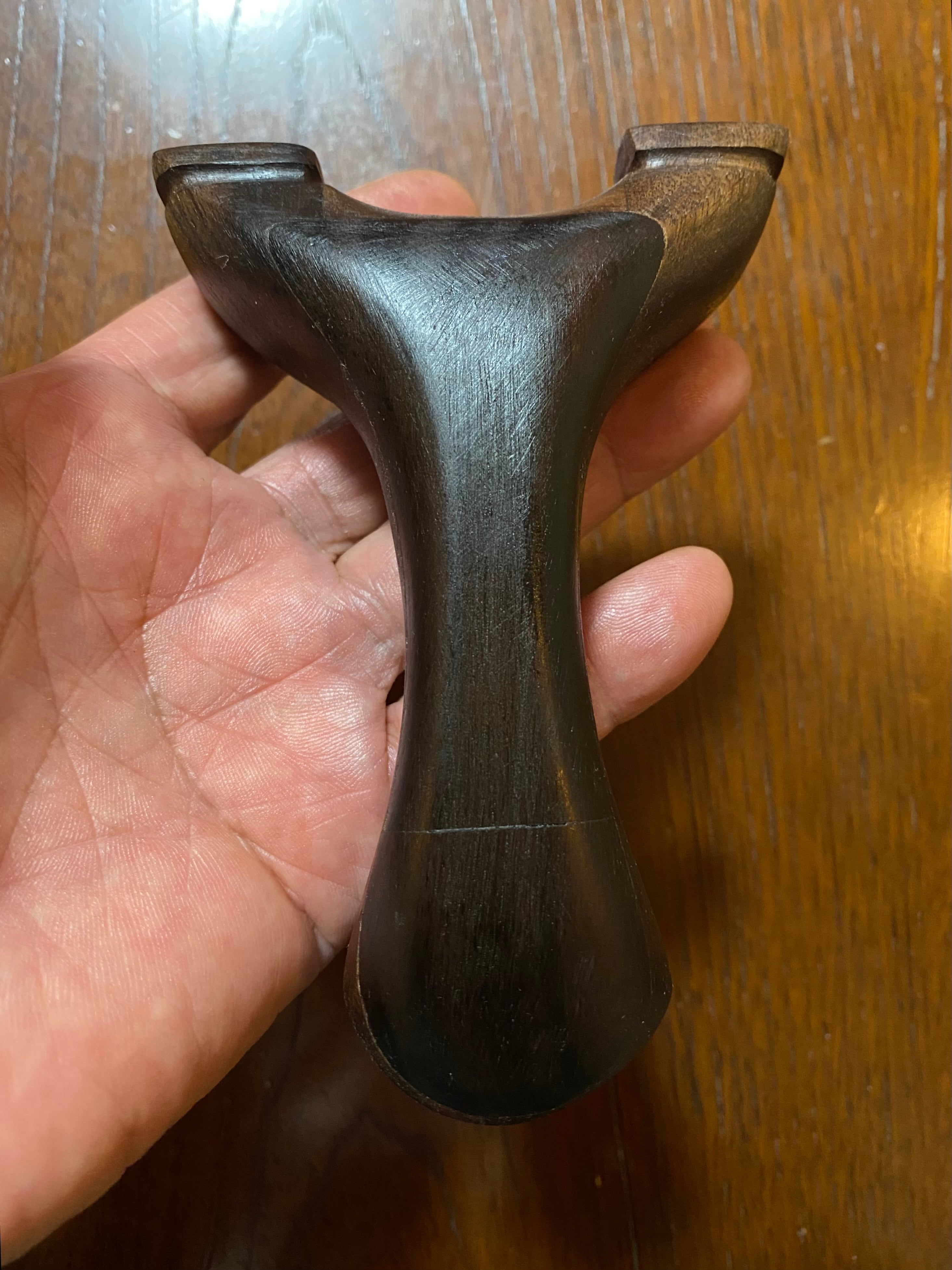 ■ No.878 NEW WAVE 大反りハンドル (黒檀 +オーク、白樫?)は、硬い木材から削り出された美しいデザインのスリングショットです。絶妙な大反りを持つハンドルは、持つ人の手にフィットし、使いやすさを追求した設計が特徴です。表側には黒檀を貼り付けてあり高級感を醸し出しています。