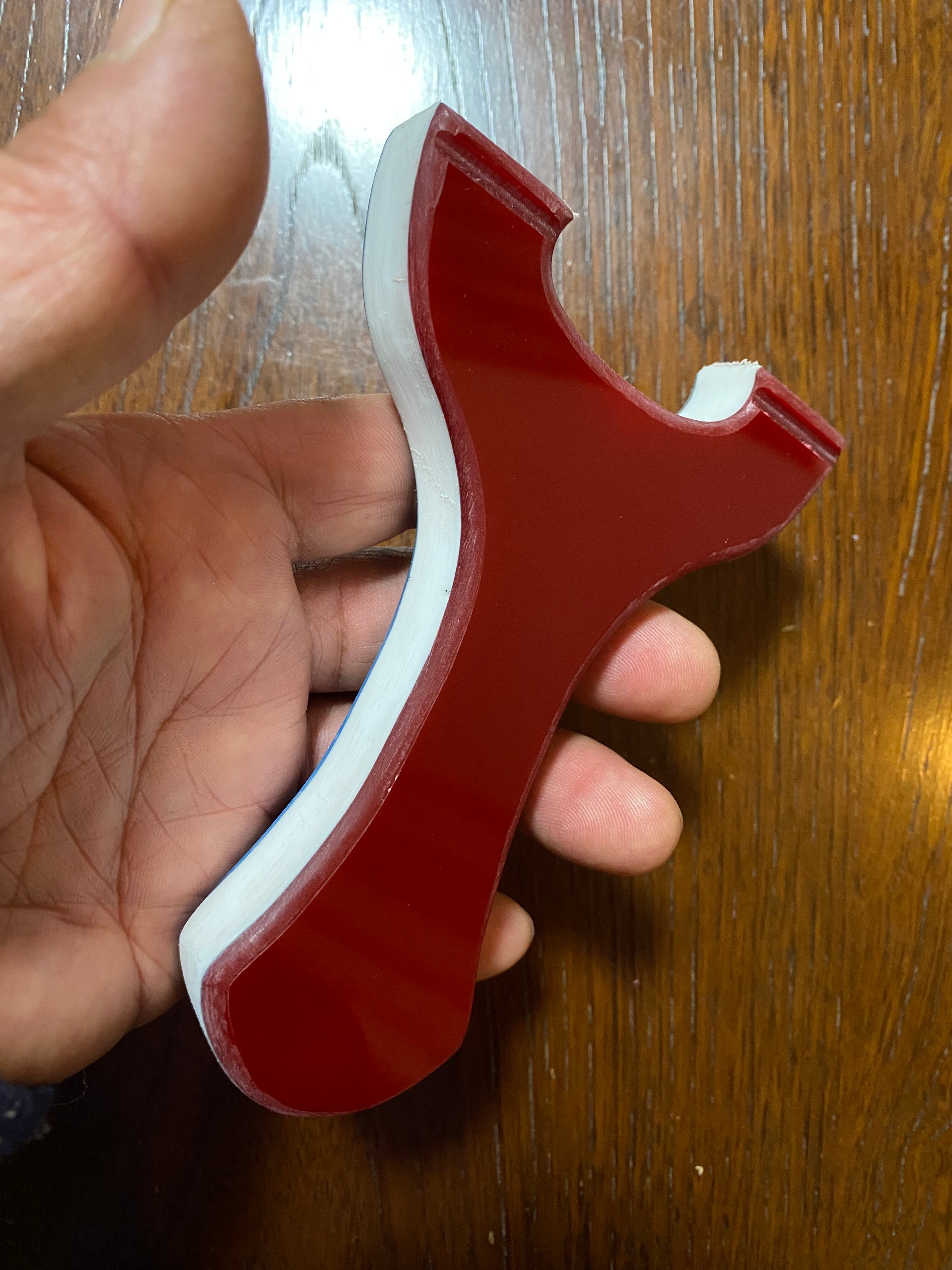 ■ No.879 Blue&Red スリングショットは、厚さ15mmの白い樹脂に水色と赤色のアクリル板を貼り付けた、目を引くカラフルなデザインのスリングショットです。この平型タイプのスリングショットは、裏表同じなので、お好みに合わせて色を選択できる自由さが魅力です。デザインだけでなく、快適さでも評価の高いNEW WAVE技術を駆使しており、確かな命中率を実現しています。