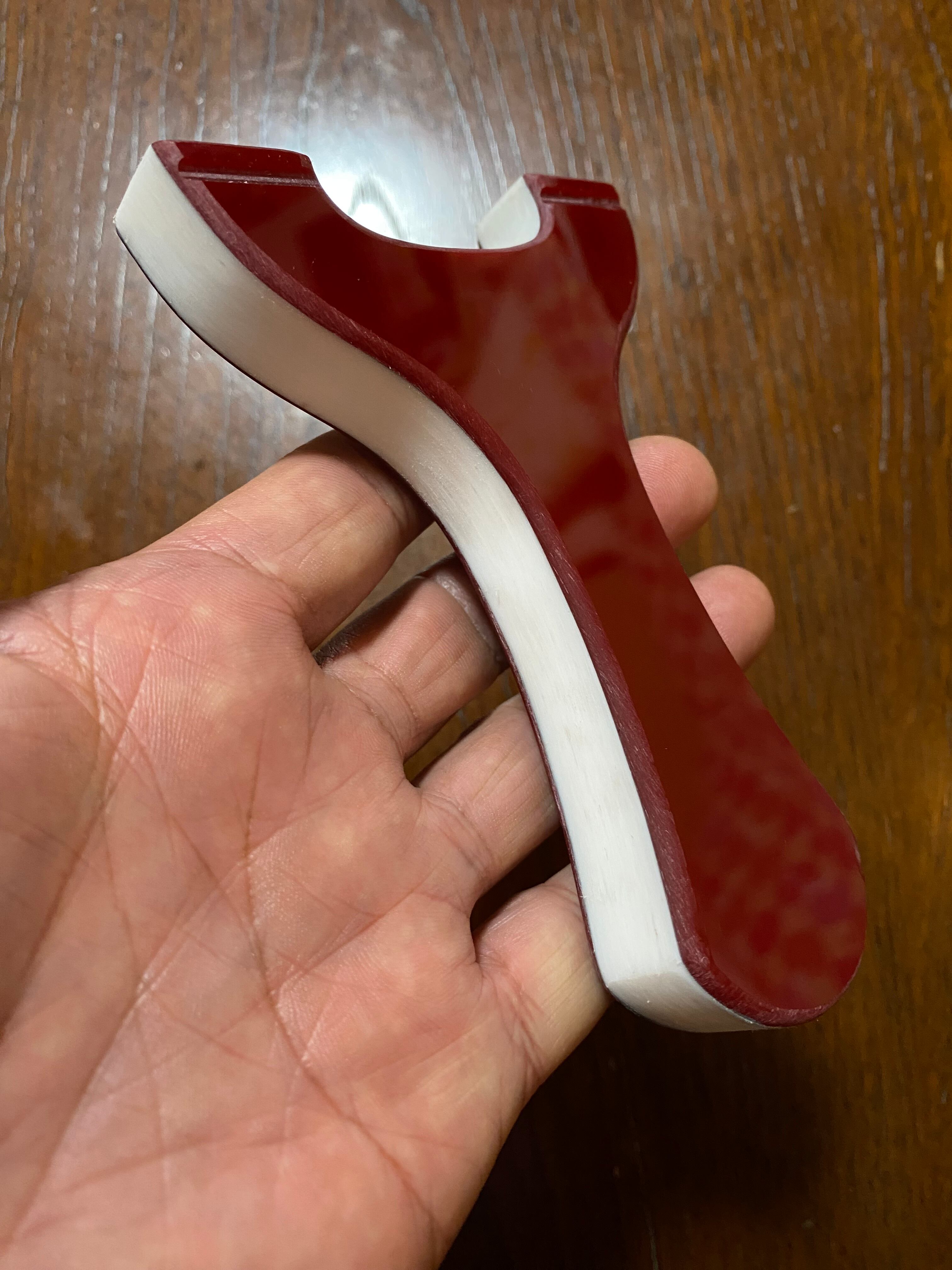 ■ No.880 Red&Red スリングショットは、厚さ15mmの白い樹脂に赤色と赤色のアクリル板を貼り付けた、目を引くカラフルなデザインのスリングショットです。この平型タイプのスリングショットは、裏表同じなので、お好みに合わせて裏表を選択できる自由さが魅力です。デザインだけでなく、快適さでも評価の高いNEW WAVE技術を駆使しており、確かな命中率を実現しています。