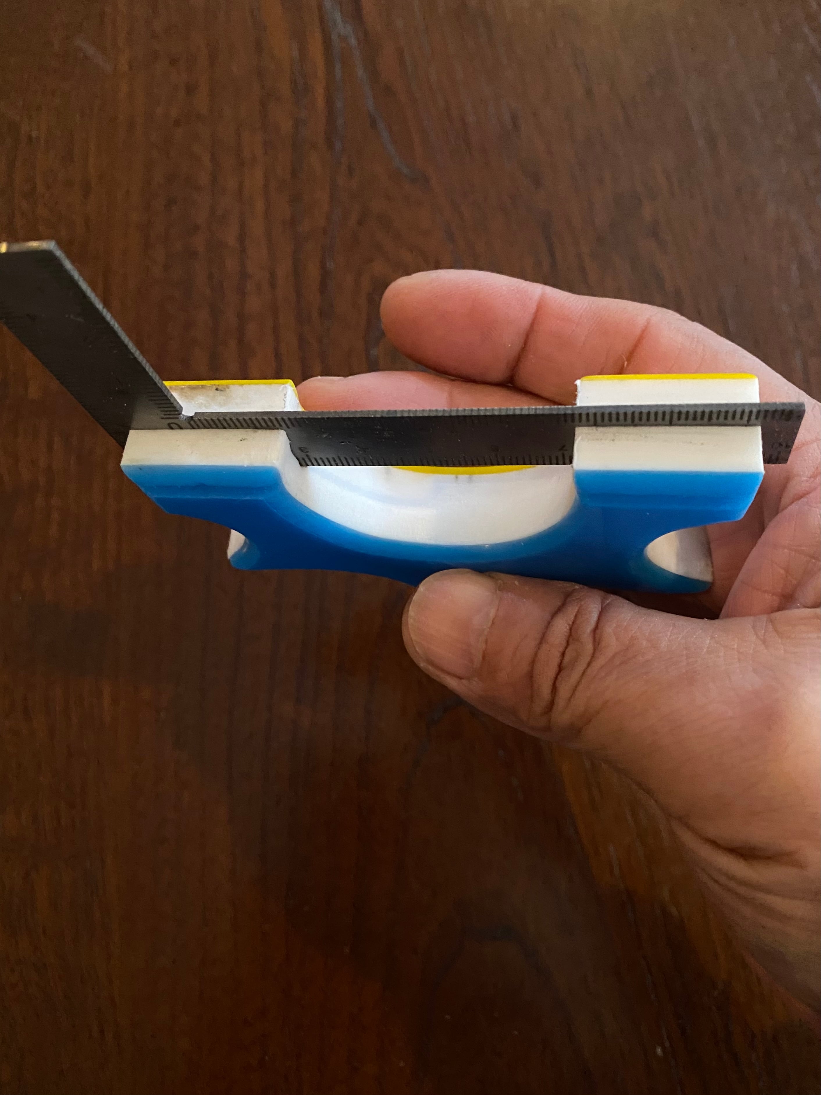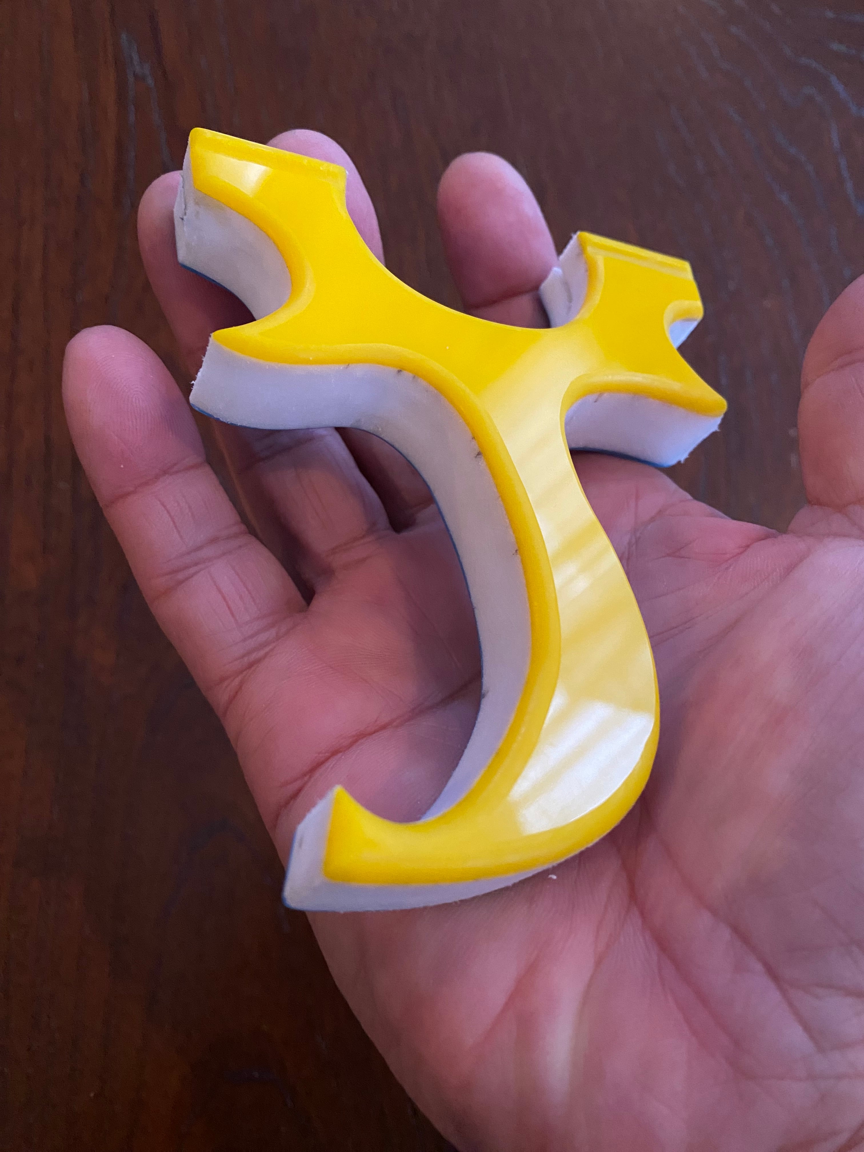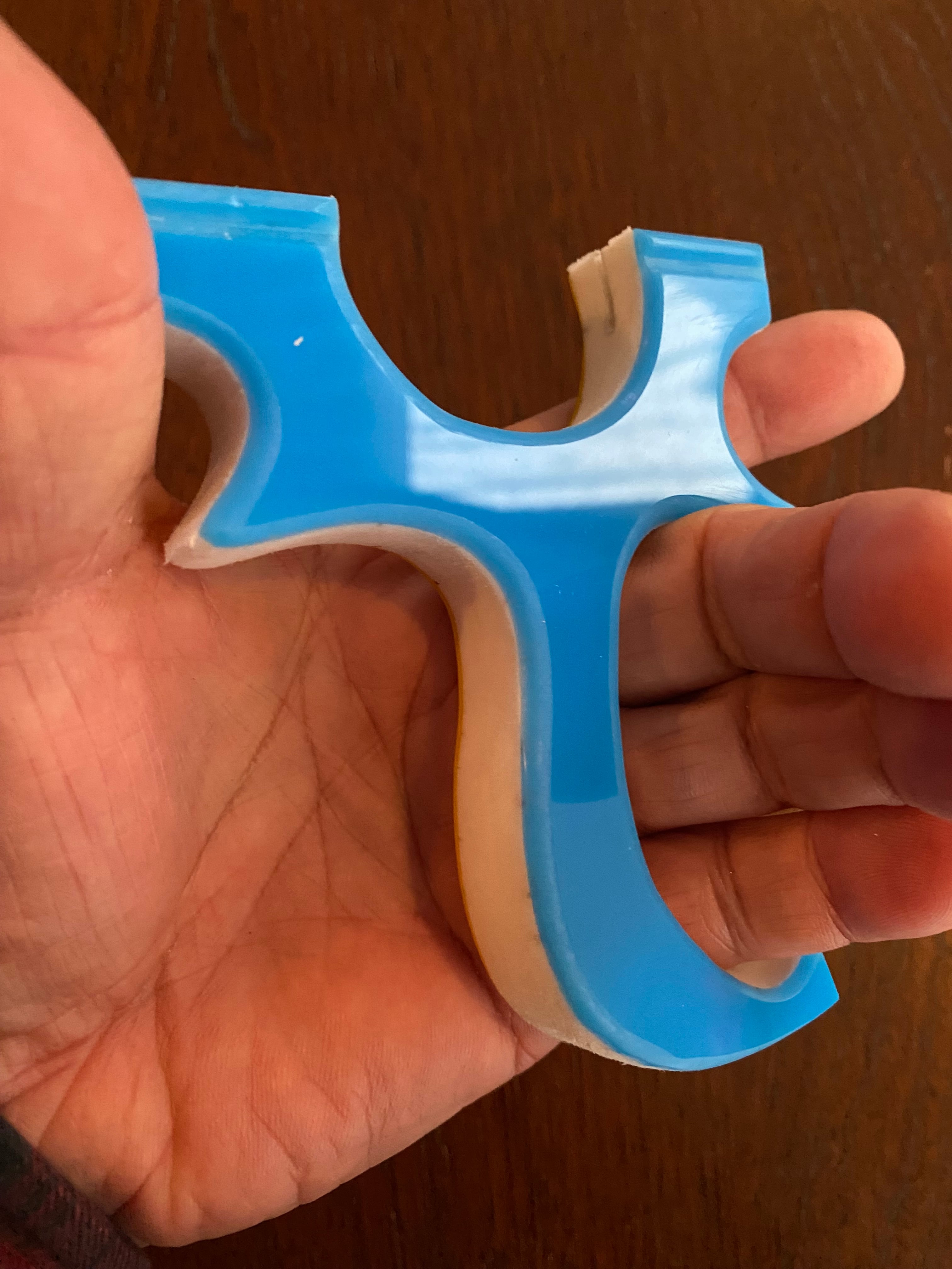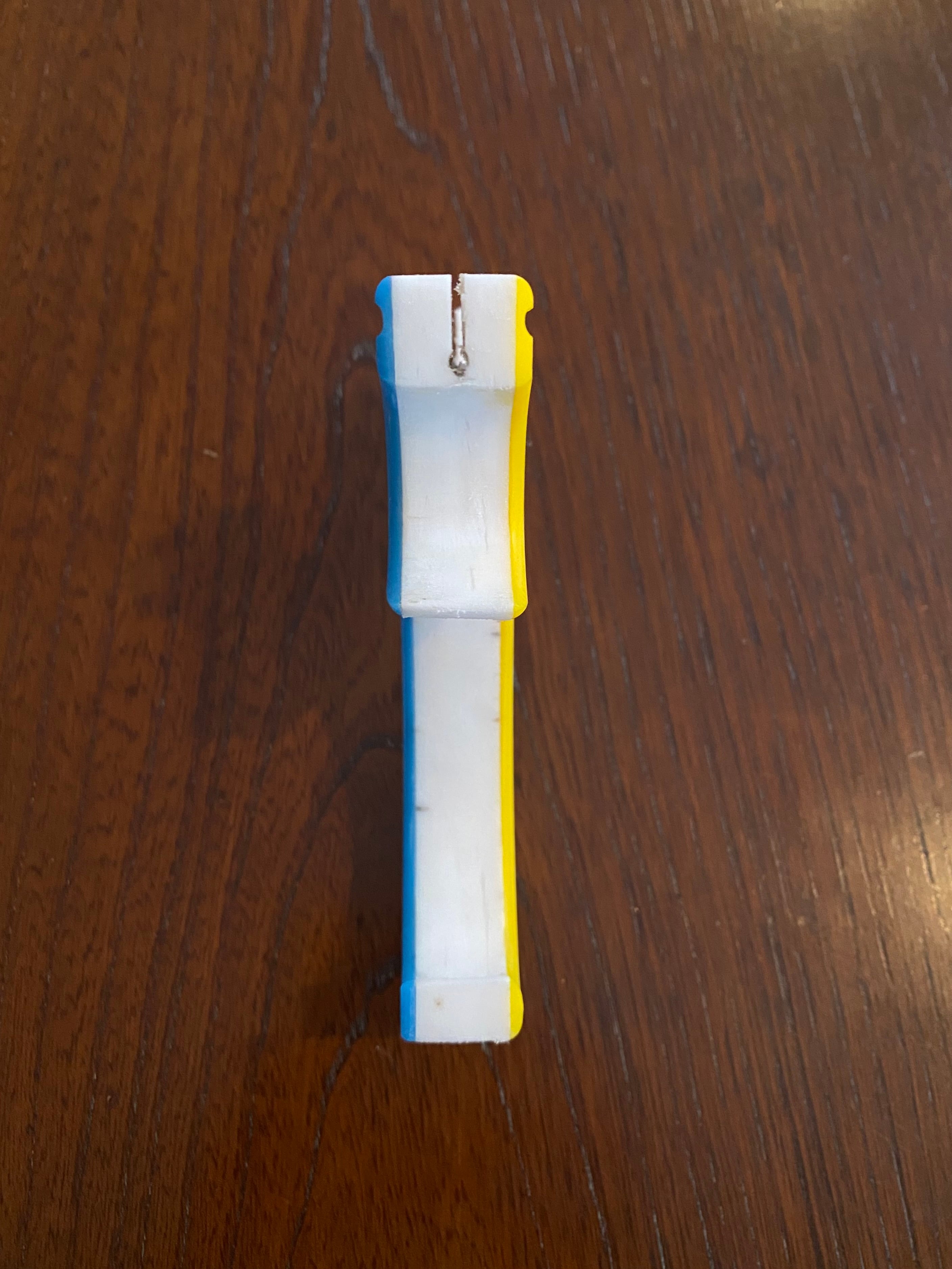 ■ No.882 Blue &Yellow Cハンドル スリングショット(TOP SLOT)は、厚さ15mmの白い樹脂に水色と黄色のアクリル板を貼り付けた、目を引くカラフルなデザインのスリングショットです。この平型タイプのスリングショットは、裏表同じなので、お好みに合わせて色を選択できる自由さが魅力です。デザインだけでなく、快適さでも評価の高いTOP SLOT技術を採用しており、(ゴム巻き式も可能)素早いゴム装着と確かな命中率を実現しています。またヘッド幅は25mmあり、広めの平ゴムでも装着が可能です。