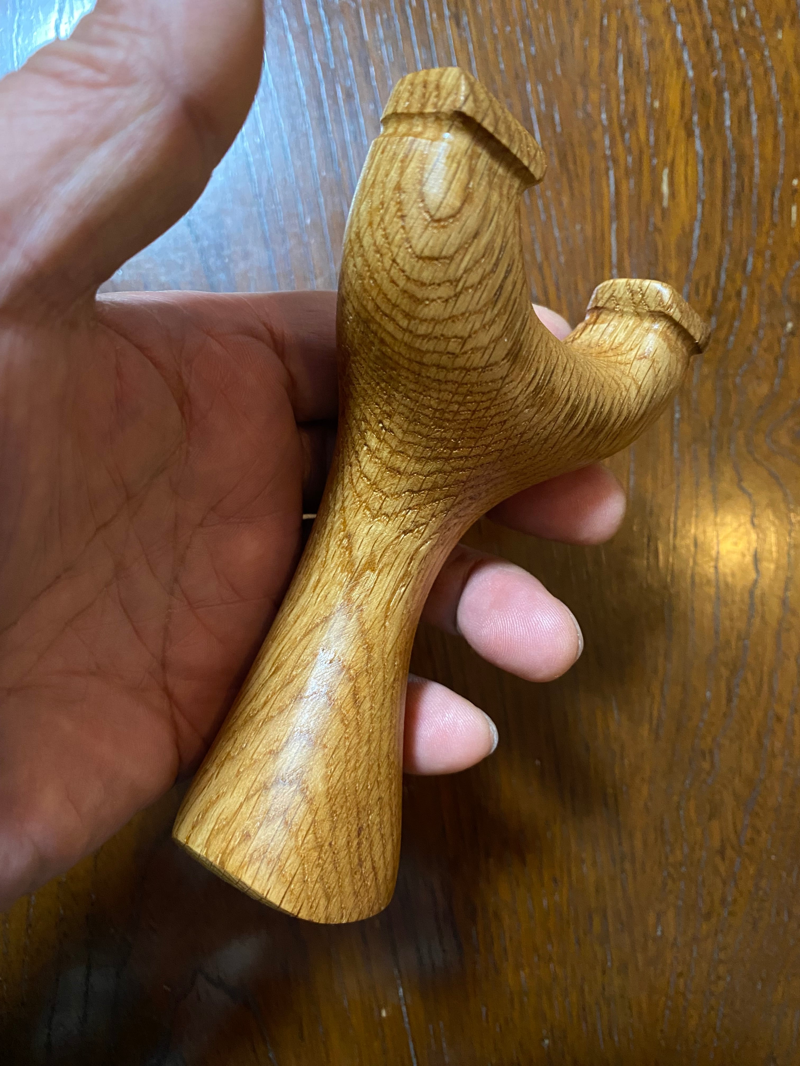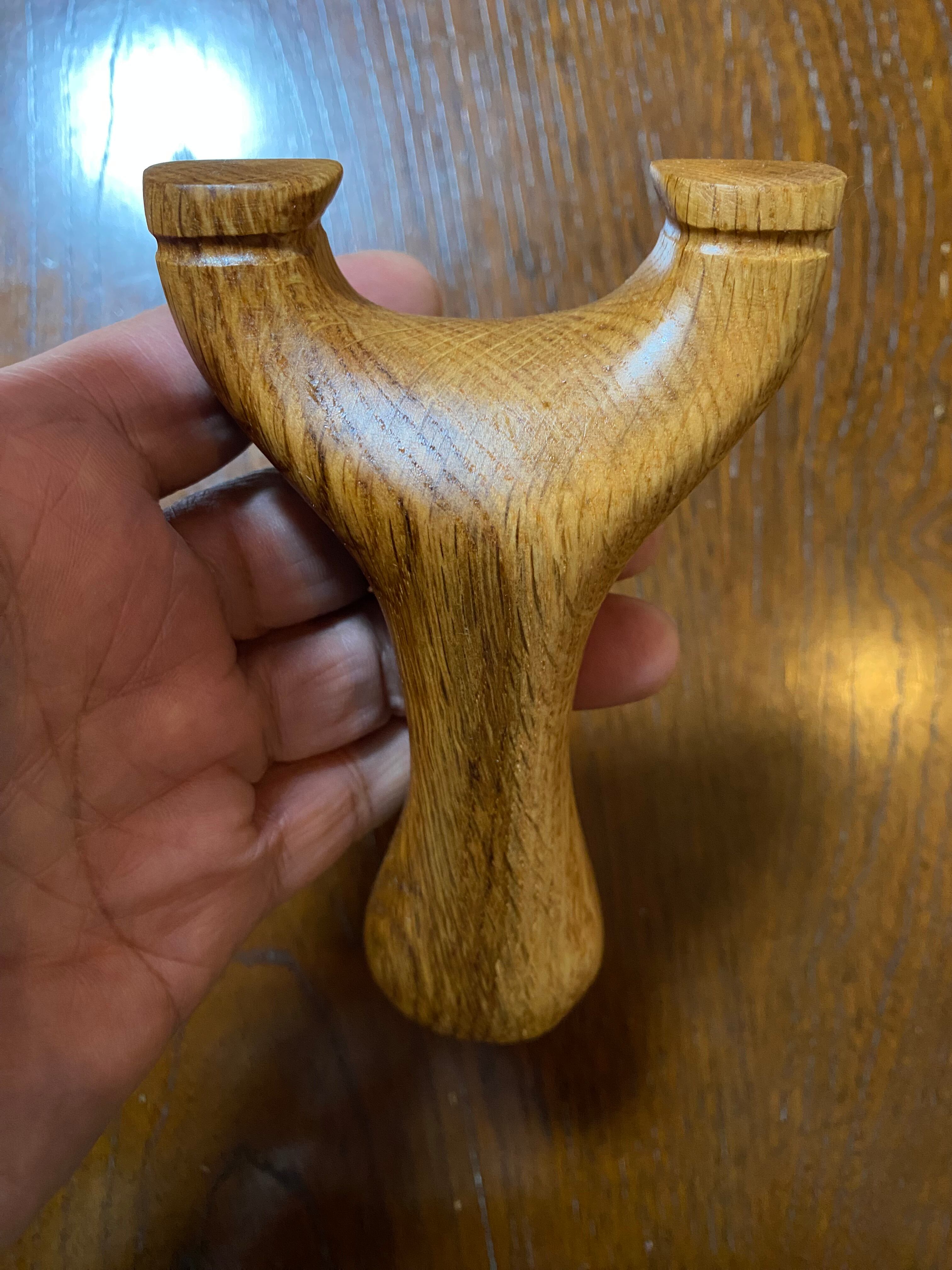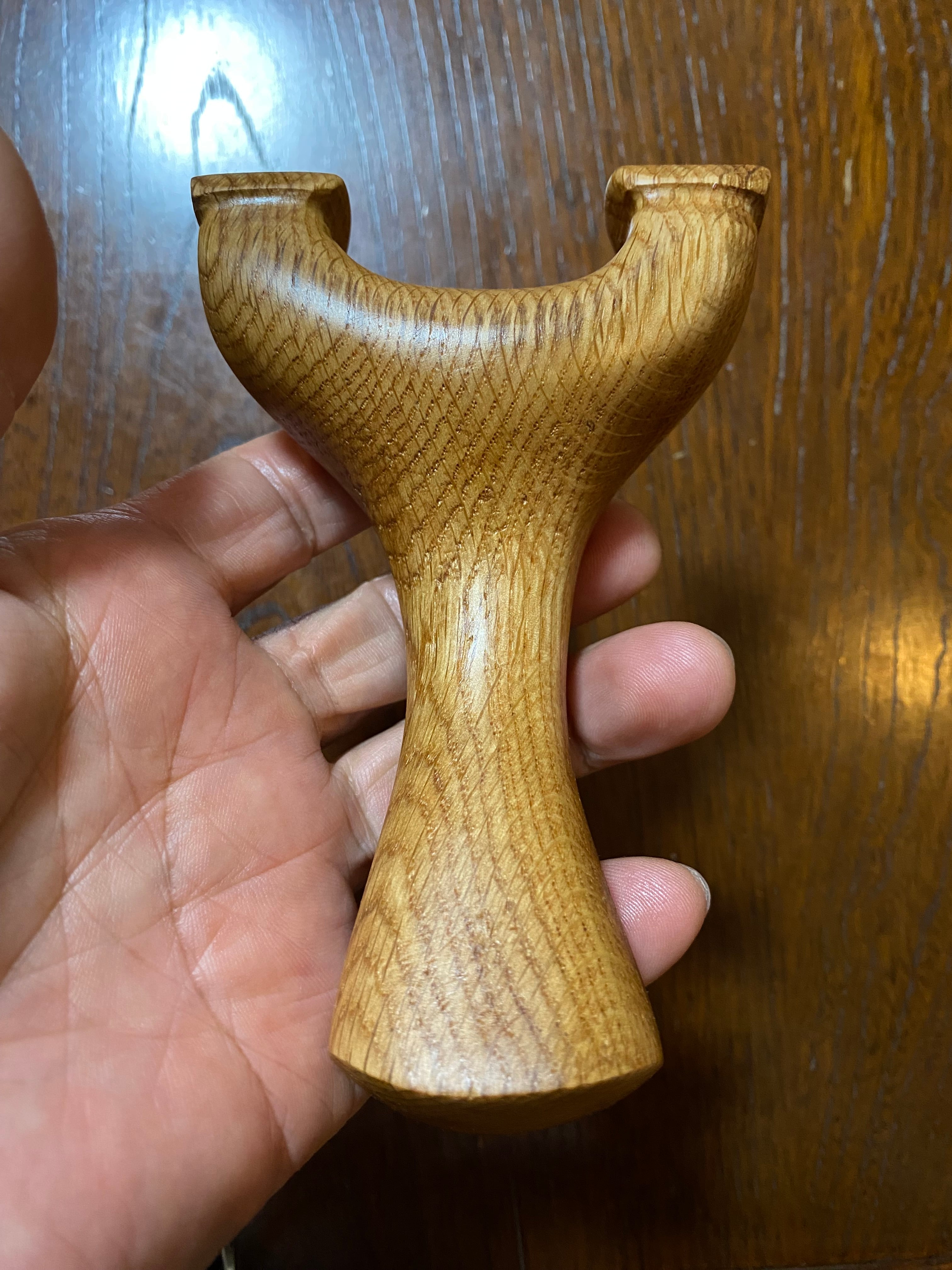 ■ No.883 NEW WAVE 中反りフォーク(オーク、白樫?)半月ヘッドは、白樫と思われる硬い木材から削り出された美しいデザインのスリングショットです。絶妙な反りを持つフォークは、持つ人の手にフィットし、使いやすさを追求した設計が特徴です。ヘッドは半月の形をしており平ゴムの取り付けも通常通りにできます。