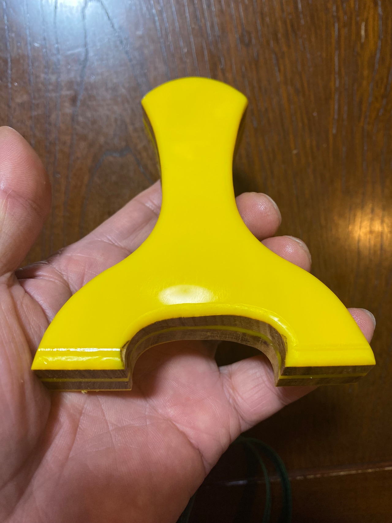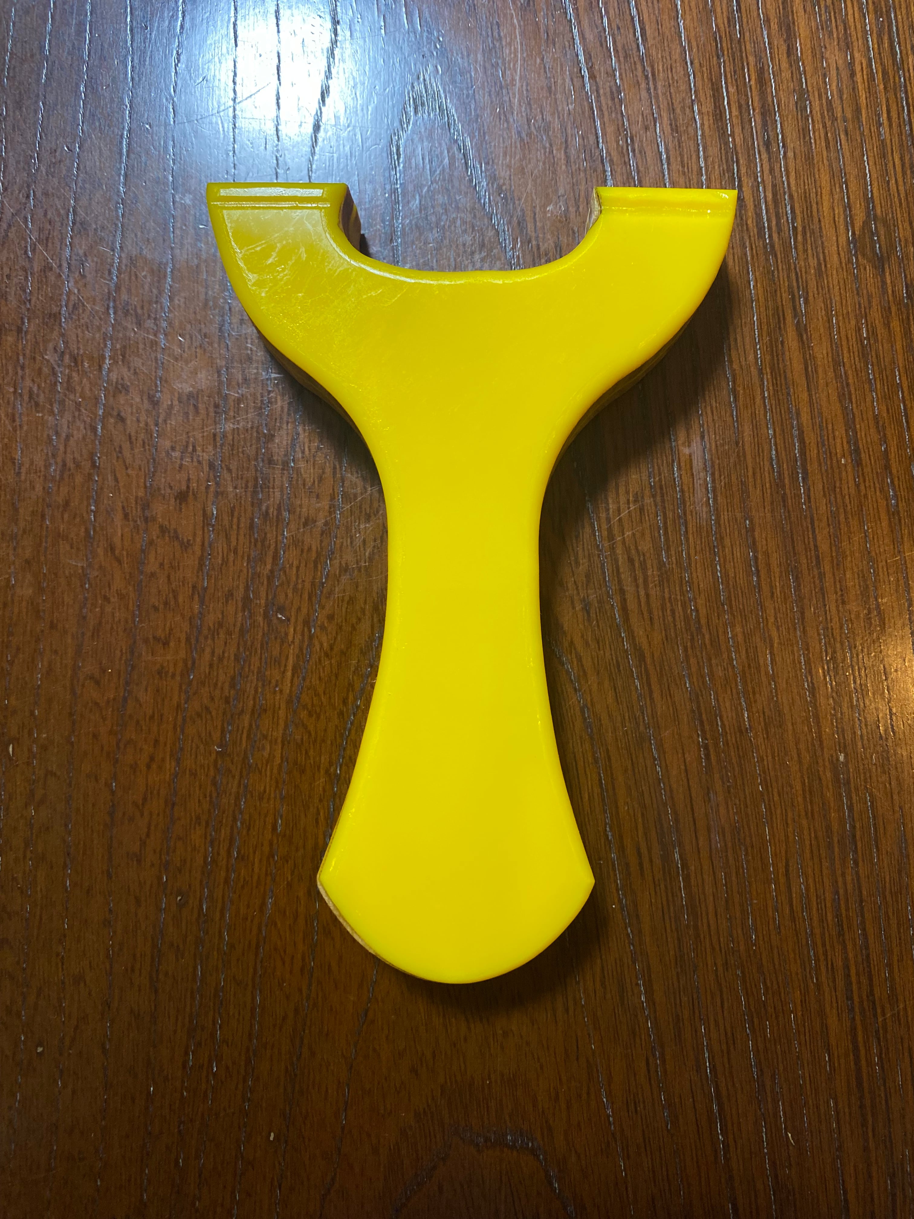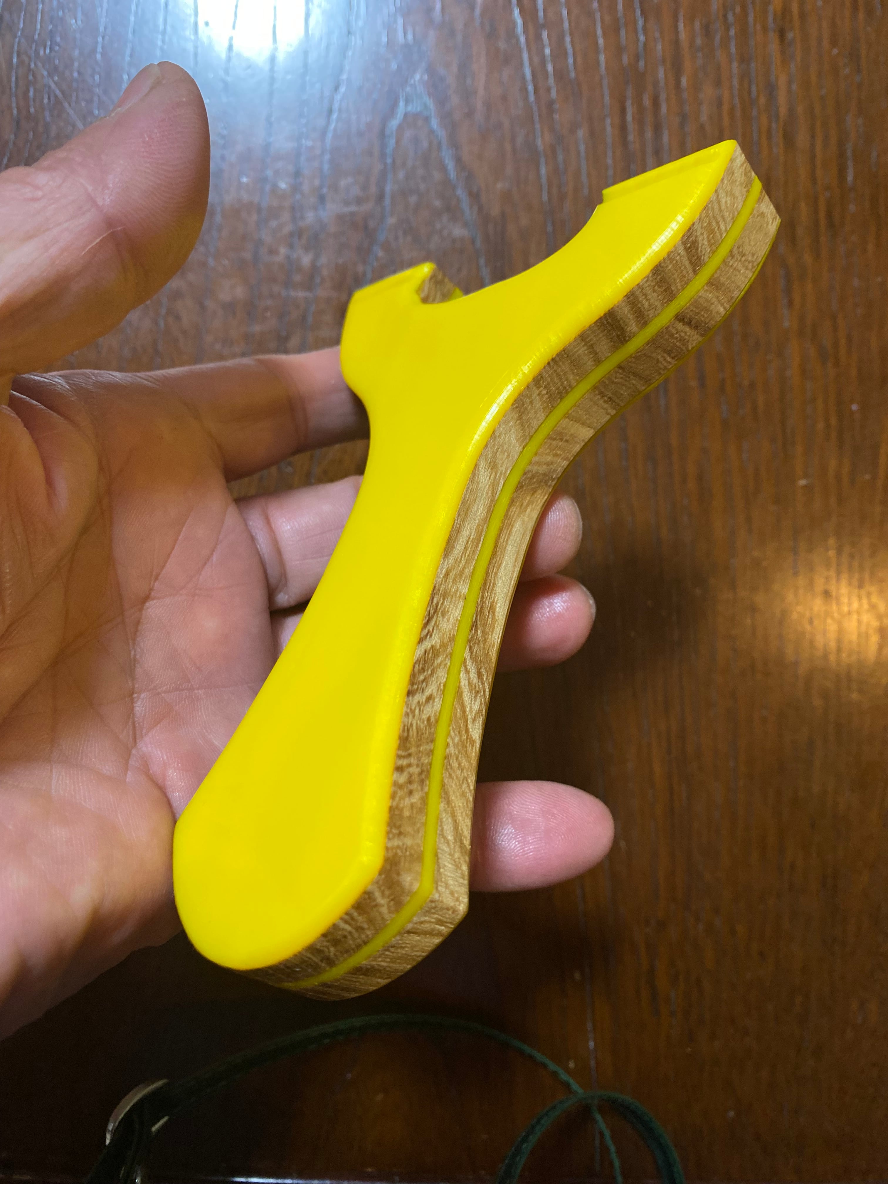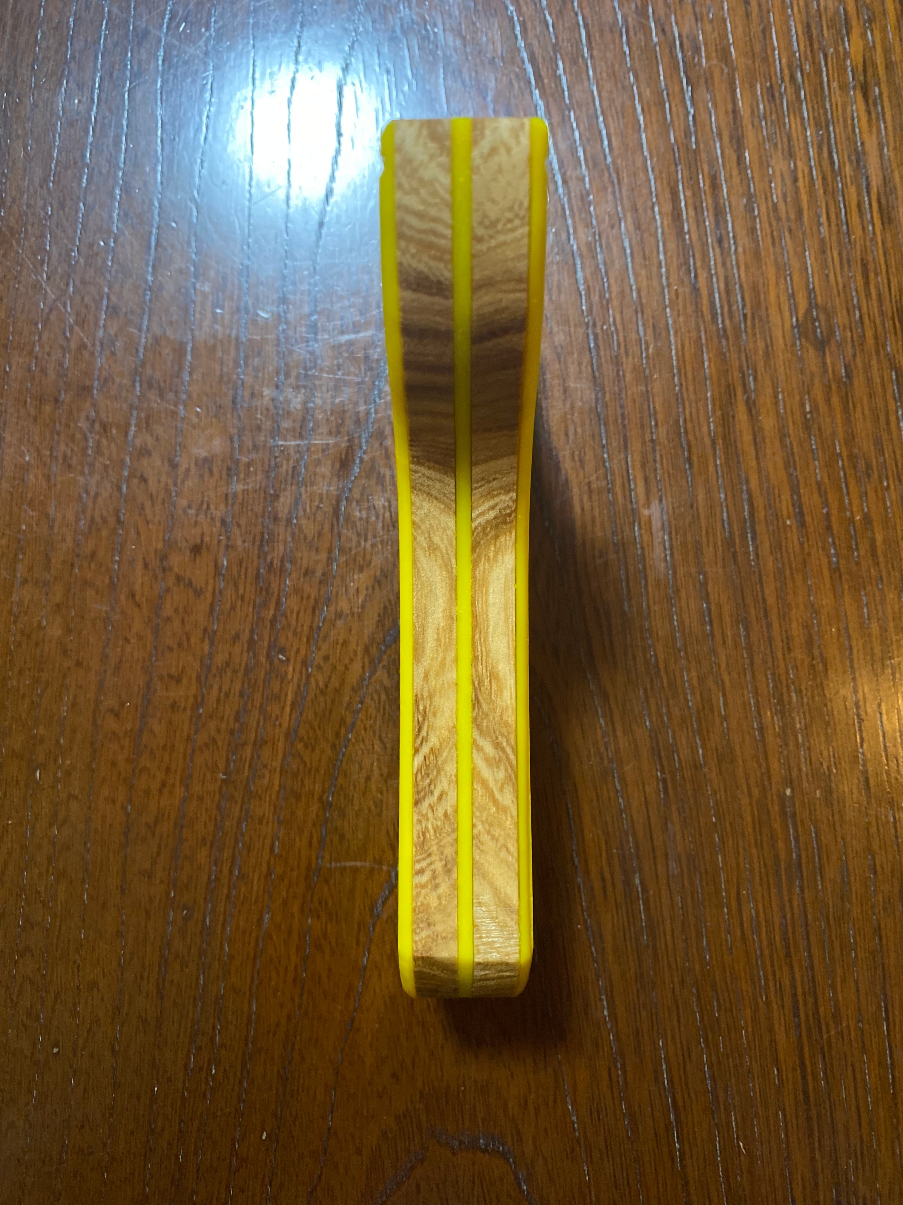 ■ No.889 NEW WAVE 平型 Yellow Impulse(アクリル+木)は、鮮やかな黄色の2mmアクリルをコアにし、7mmの硬い木でサンドイッチし、更にそれを包み込むようにアクリルでサンドイッチするという贅沢な造りの平型スリングショットです。美しいデザインはそのままに、同じアクリル板でさらに包み込むことで、高い強度と軽やかさが両立しています。このモデルは、操作性を徹底的に考慮した設計で、握りやすく、扱いやすい特徴が魅力です。