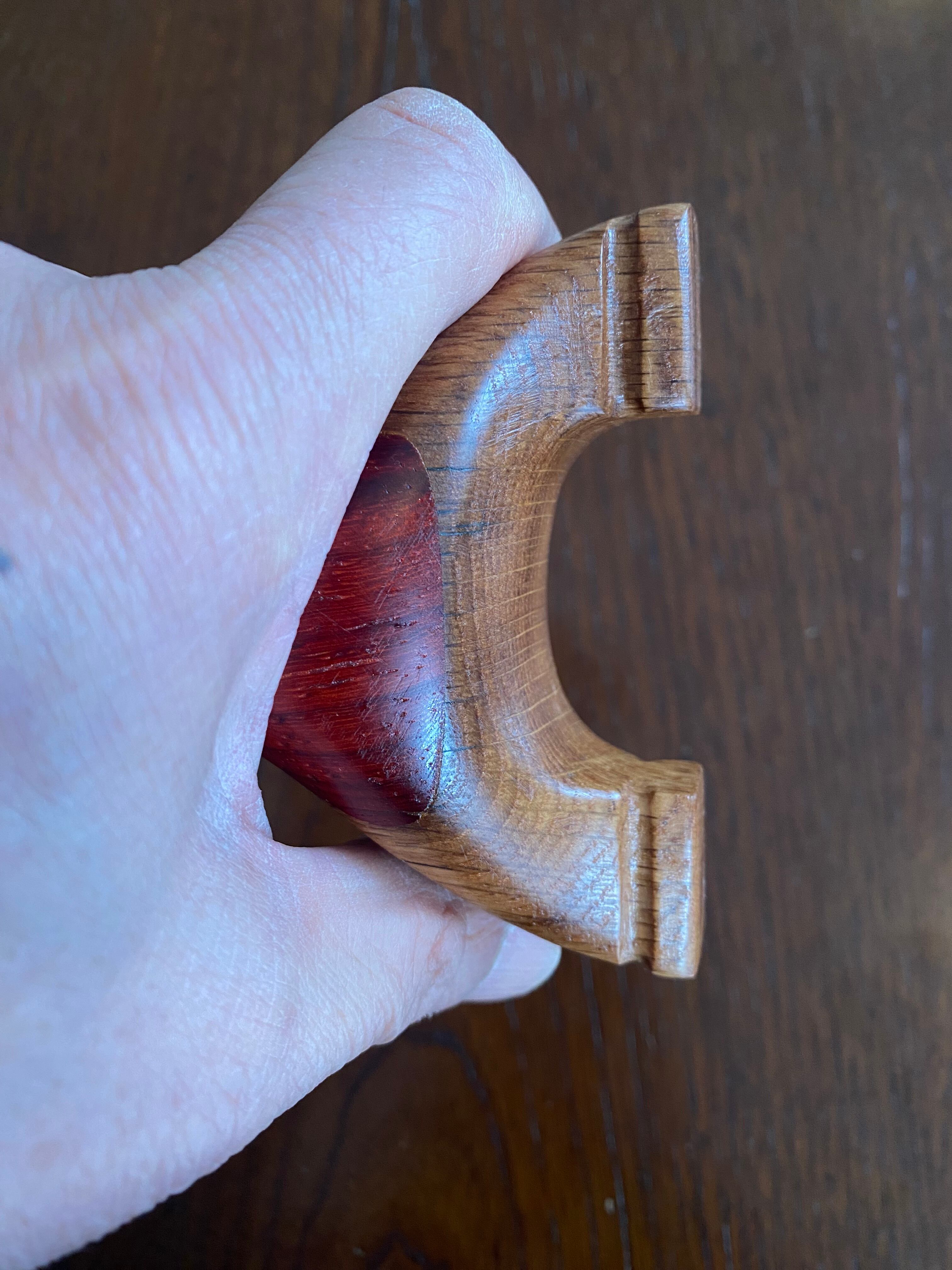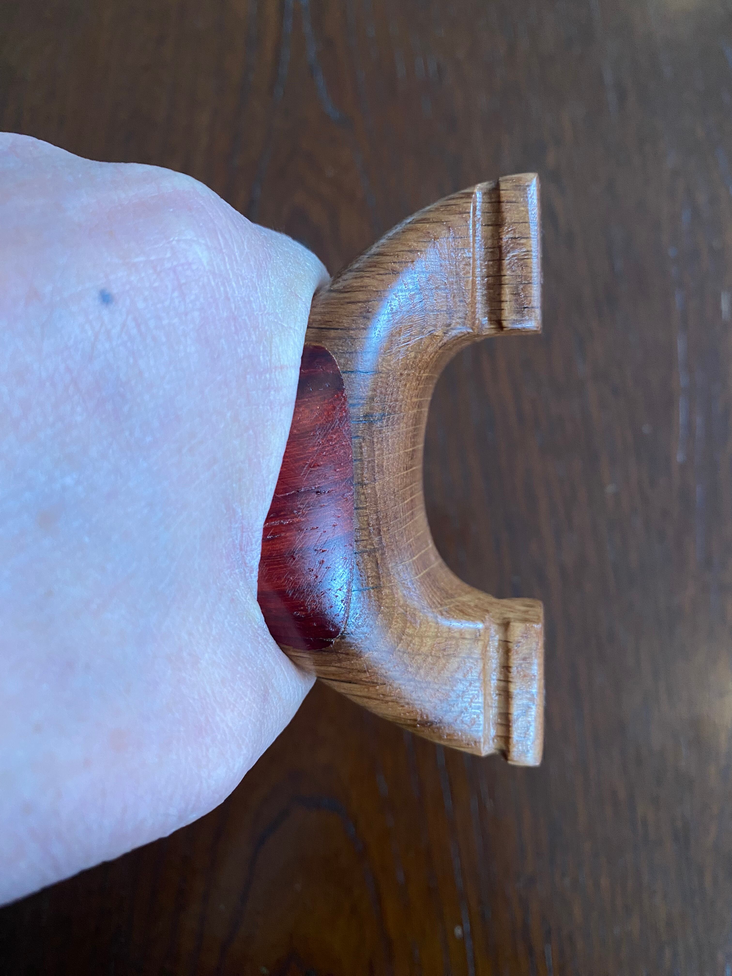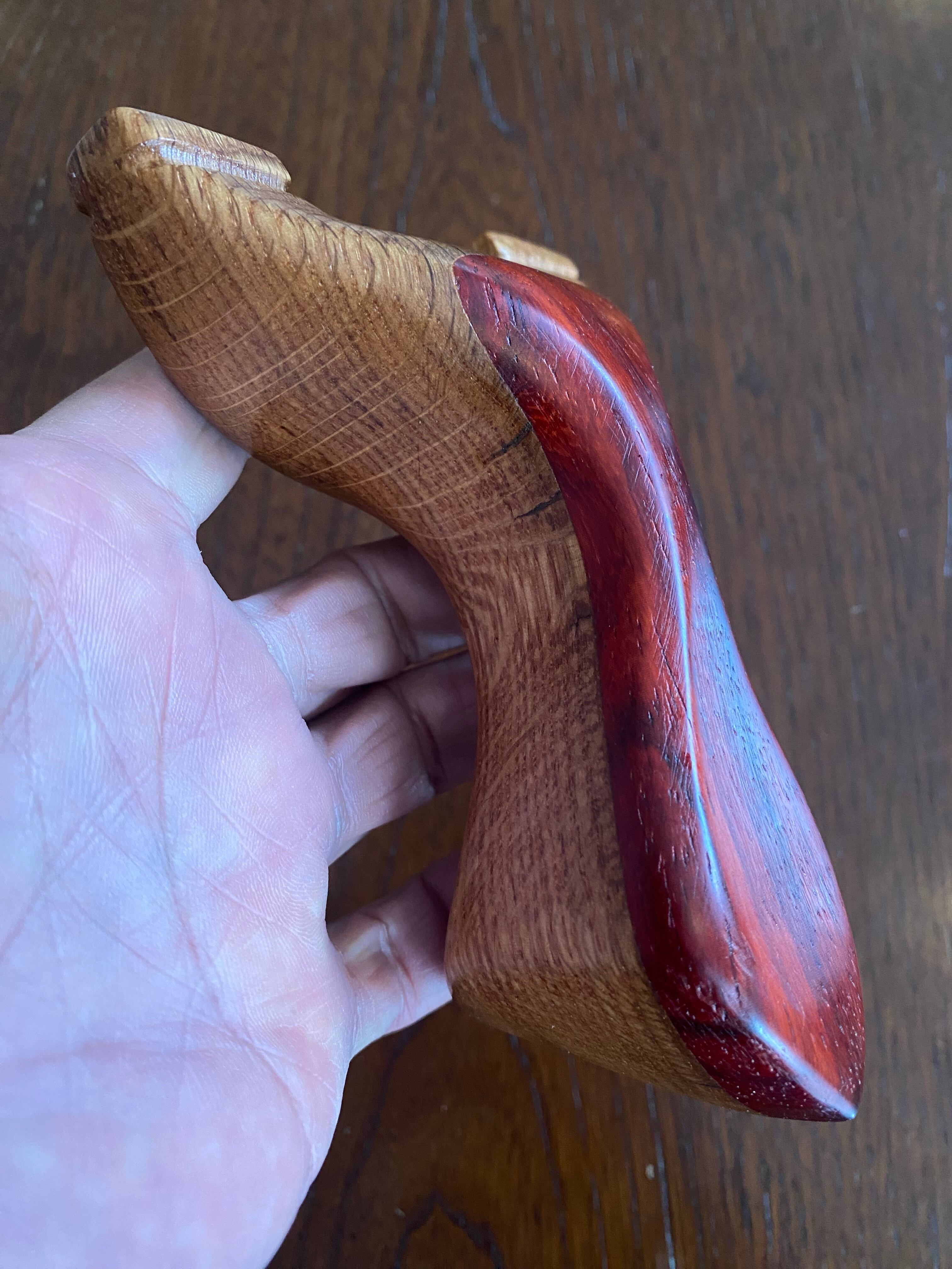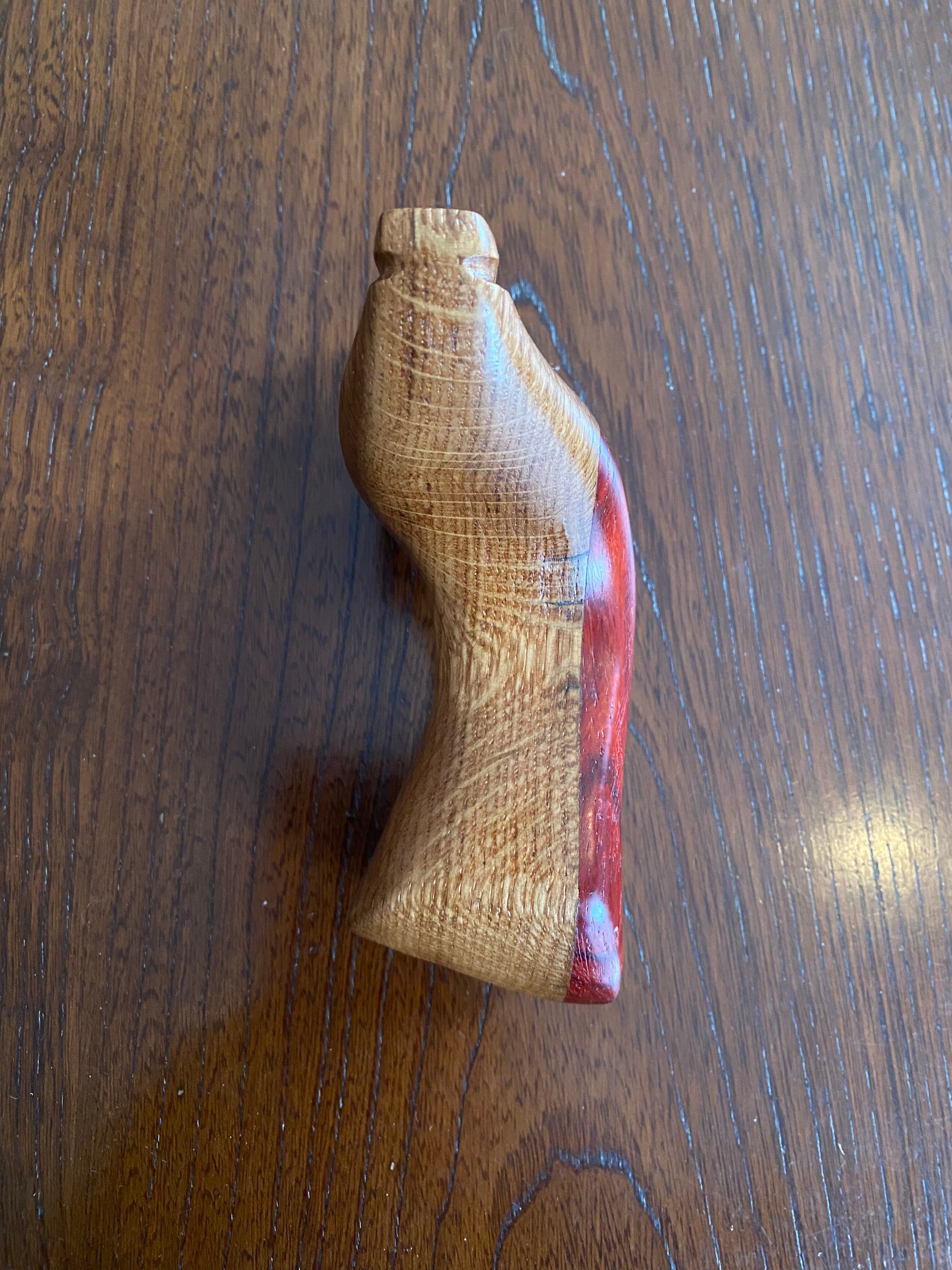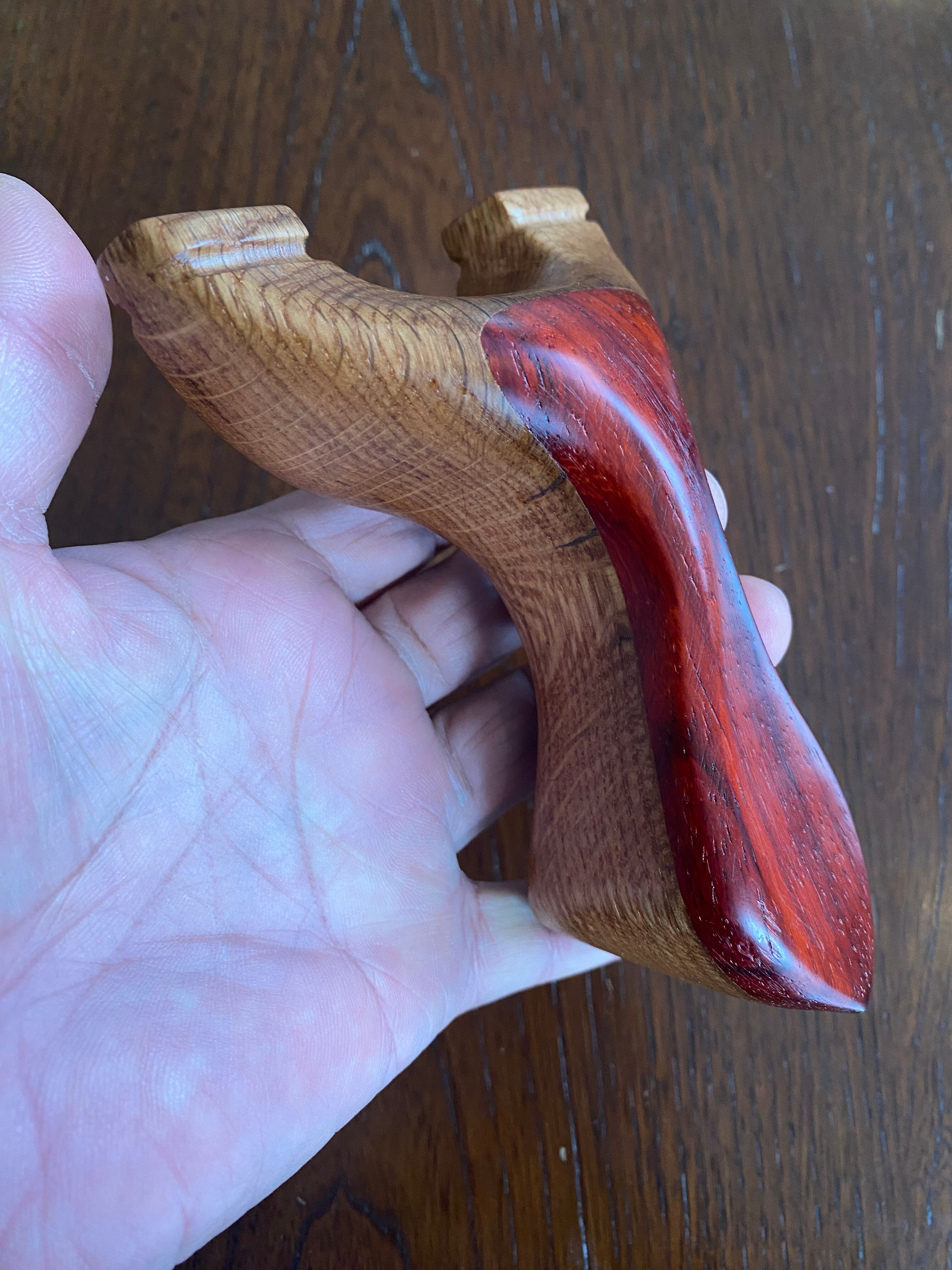 ■ No.893 New Wave Unknown Style(レッドウッド+白樫?)は、New Waveシリーズの中で特に庵野吽流を取り入れたスッキリとしたデザインが特徴のスリングショットです。白樫と推測される硬い木材の上にレッドウッドを贅沢に使用し、細めの首部分は前後に厚くしてしっかりと補強されています。その結果、軽やかでありながらも安定感を持つ最新型のスリングショットが完成しました。
