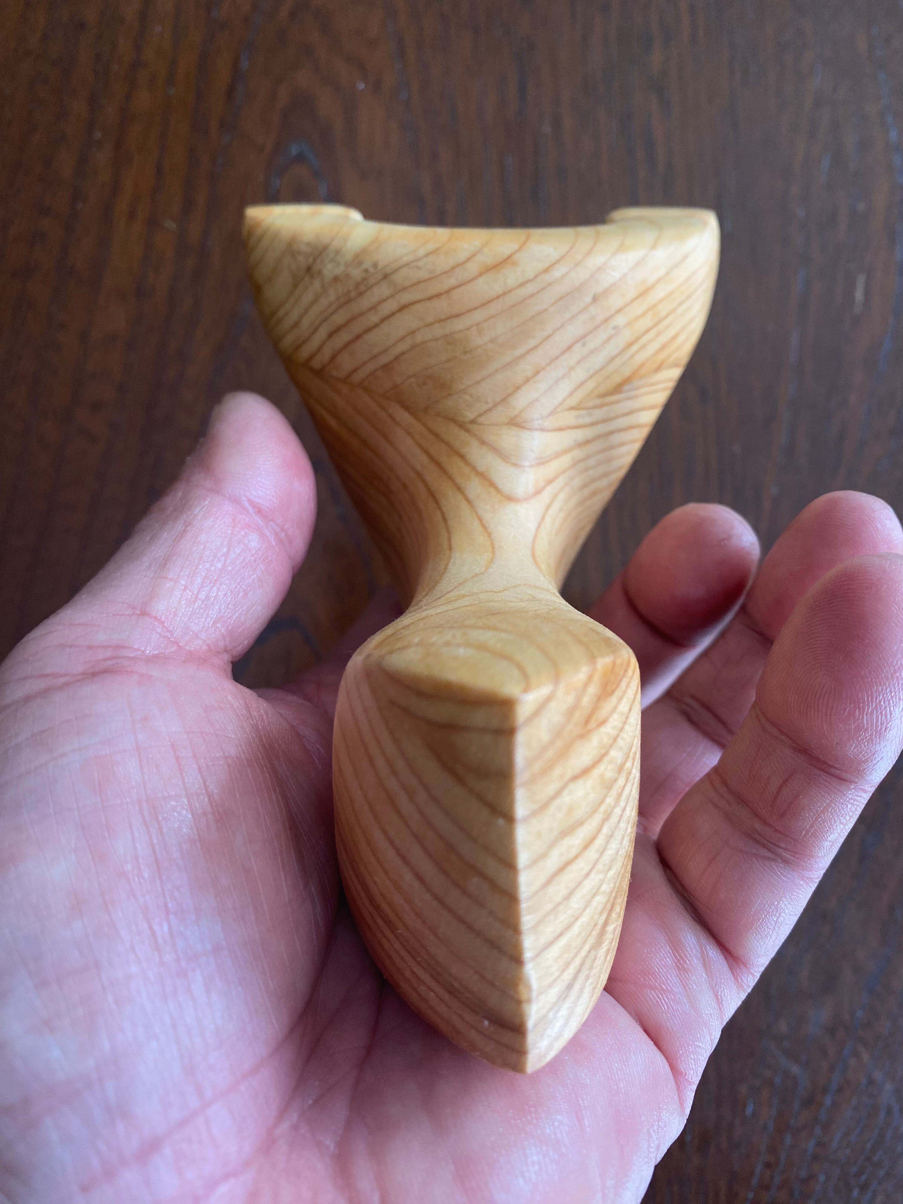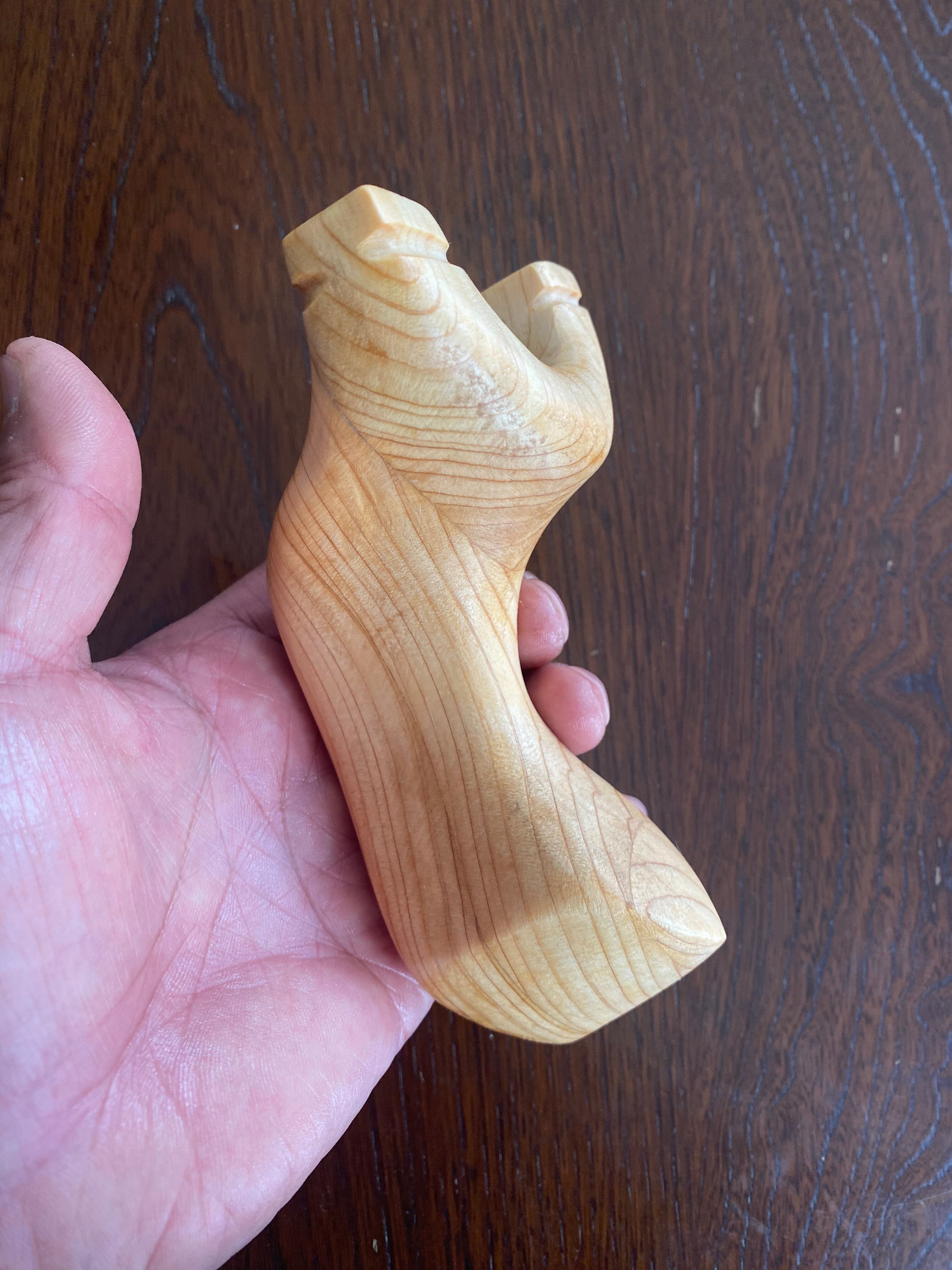 ■ No.899 Extreme warpageは、20mm厚の白木を3枚合わせた60mm極厚の板から削り出した、遊び心満載のモデルです。NEW WAVEと同じ設計図を使用しながら、反りを極端に大きくしたユニークな形状が特徴です。この極端なデザインにもかかわらず、持ち味はしっくりと手に馴染み、高い安定感を提供します。