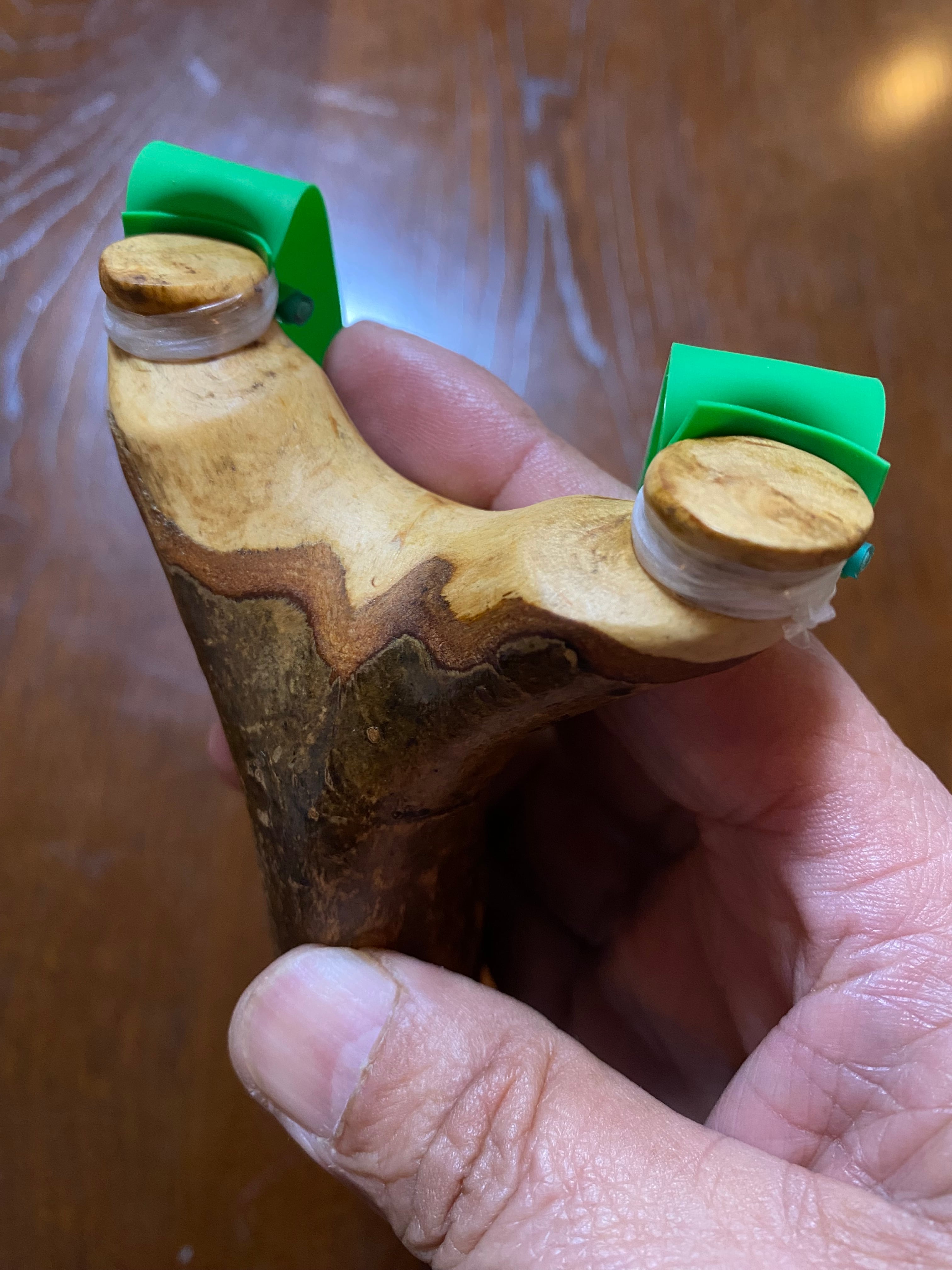 ■ No.904 ナチュラルフォーク ○ヘッドは、3年前に手に入れた枝木を最新の技術で作ったスリングショットです。乾燥された木材を使用しているため、ひび割れのリスクを気にせず、長期間安心してご利用いただけます。平ゴムを丸ヘッドに巻きつけて固定するシンプルな設計は、スリングショットの基本形であり、男のロマンを感じさせます。もちろん安定したパフォーマンスを提供します。
