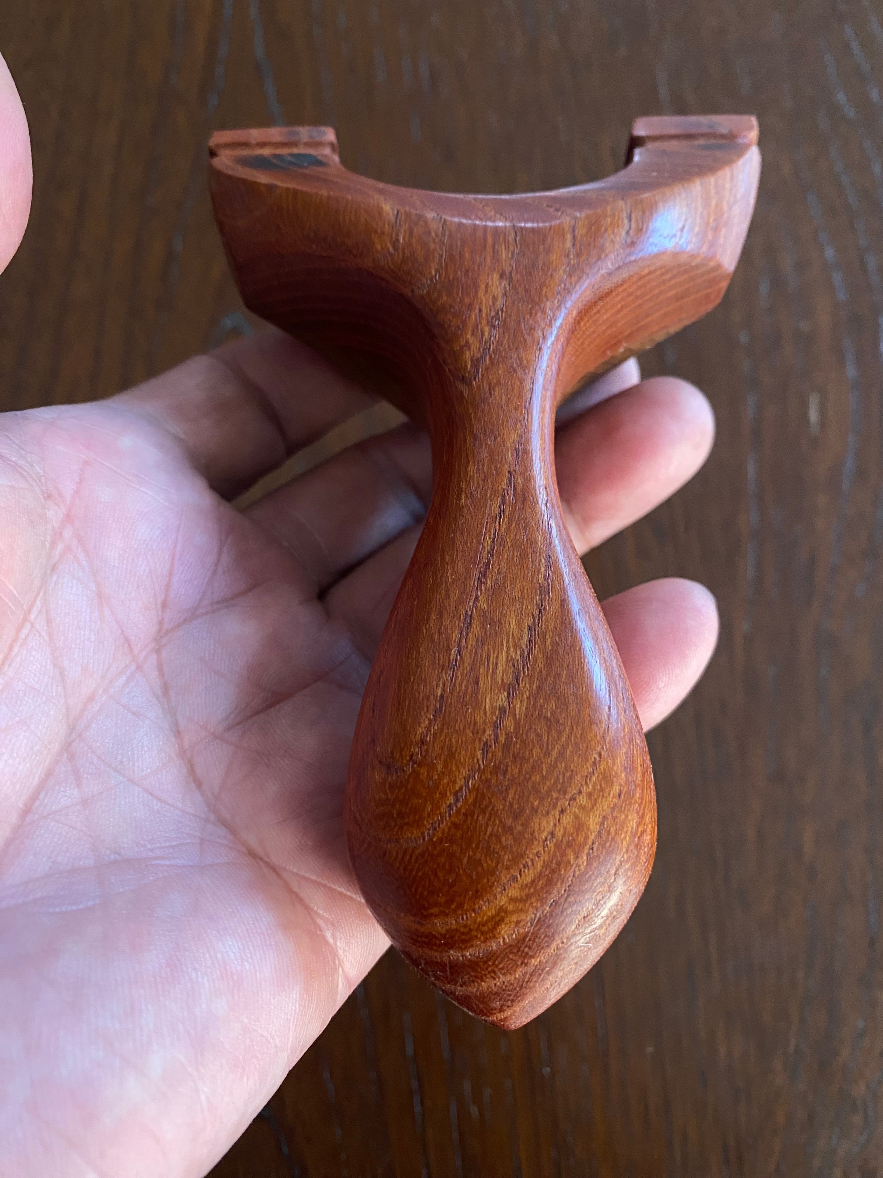 ■ No.923 Hawk2(ケヤキ製)ganba コンビは、力強いケヤキを用いたスリングショットで、洗練されたデザインと抜群の耐久性を誇ります。無駄を削ぎ落としたシンプルながらもスタイリッシュな形状が、タカの鋭い攻撃力を想起させる一品です。