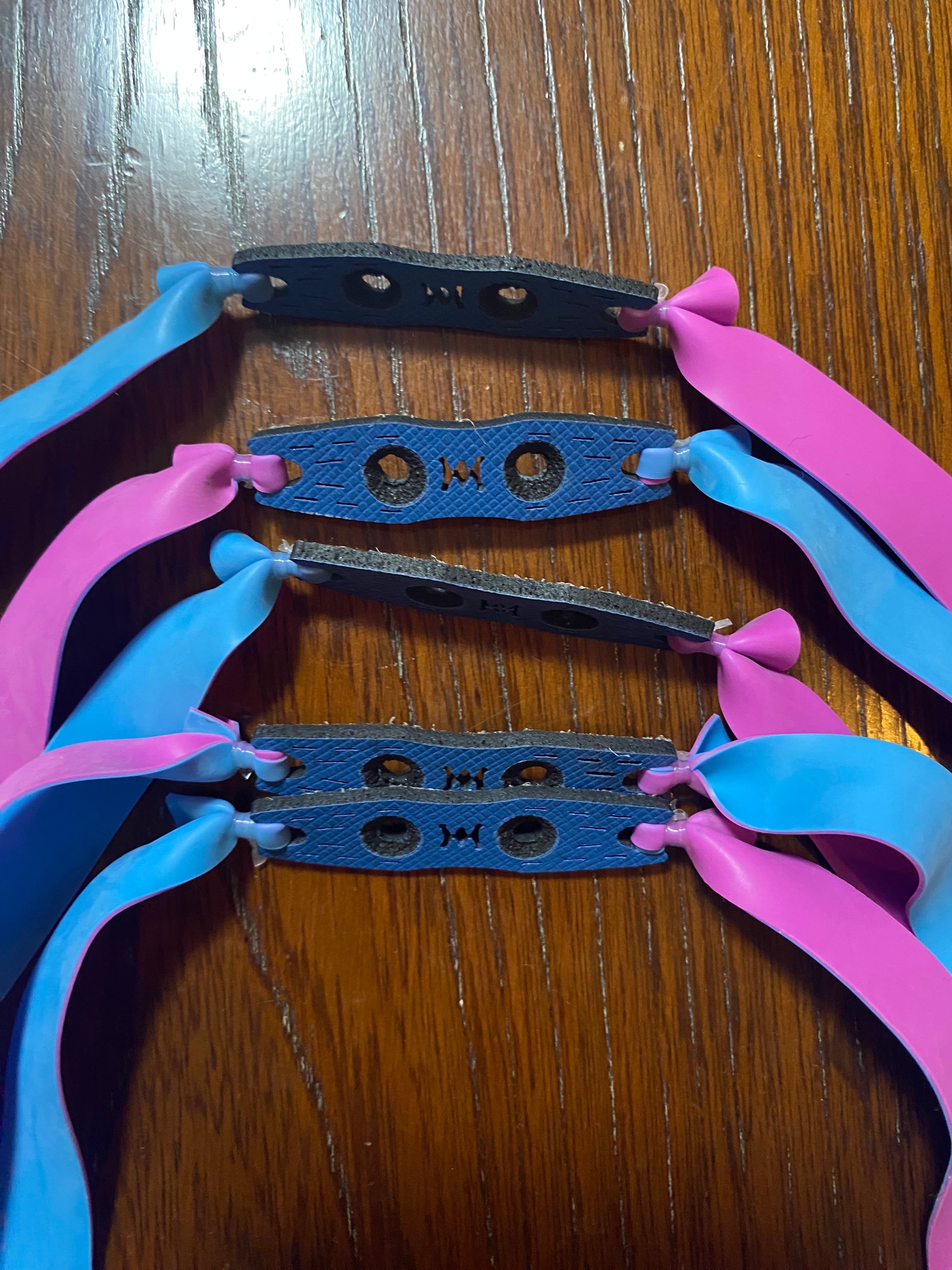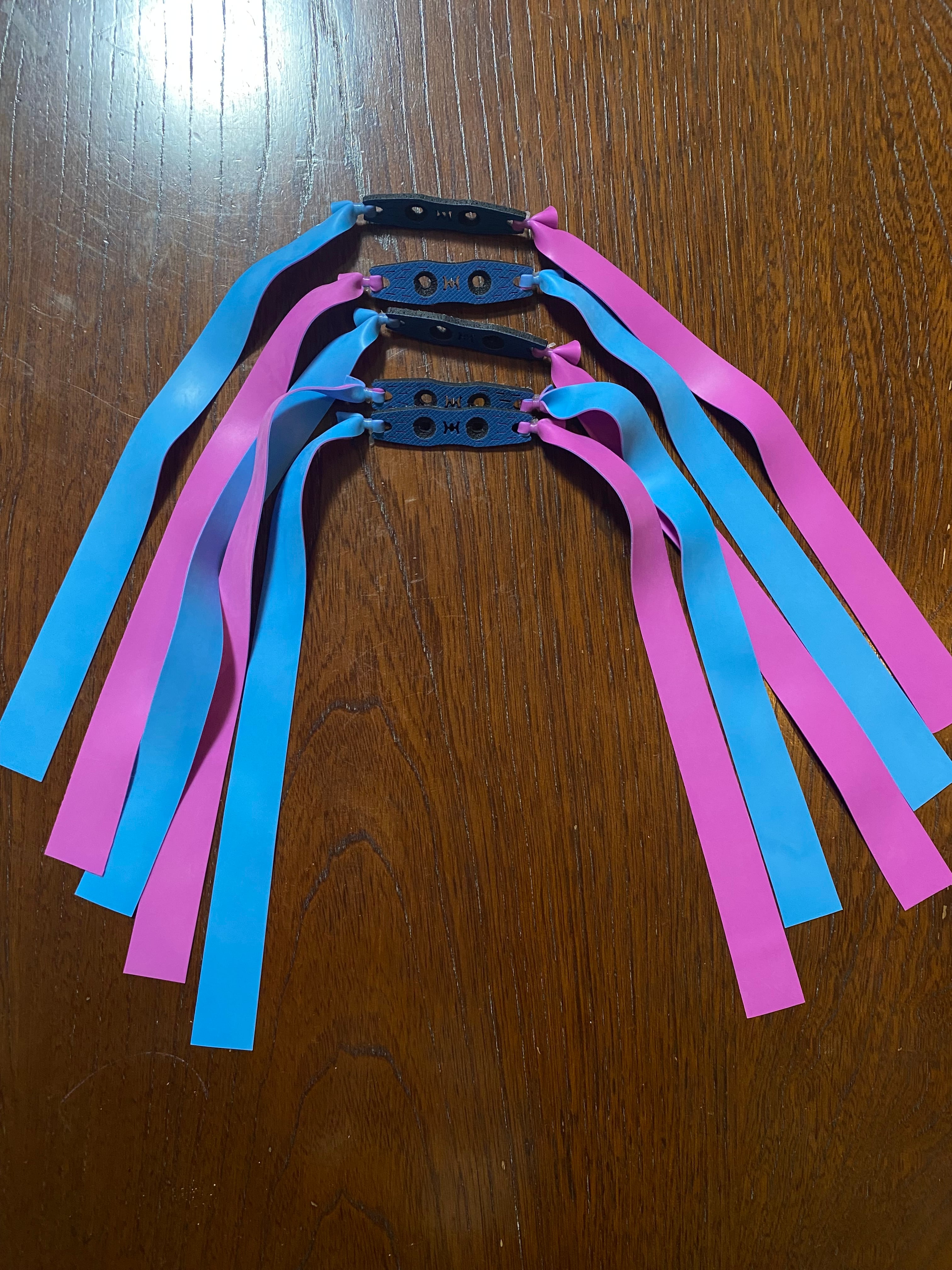水色とピンクの裏表の色の異なる平ゴムです。