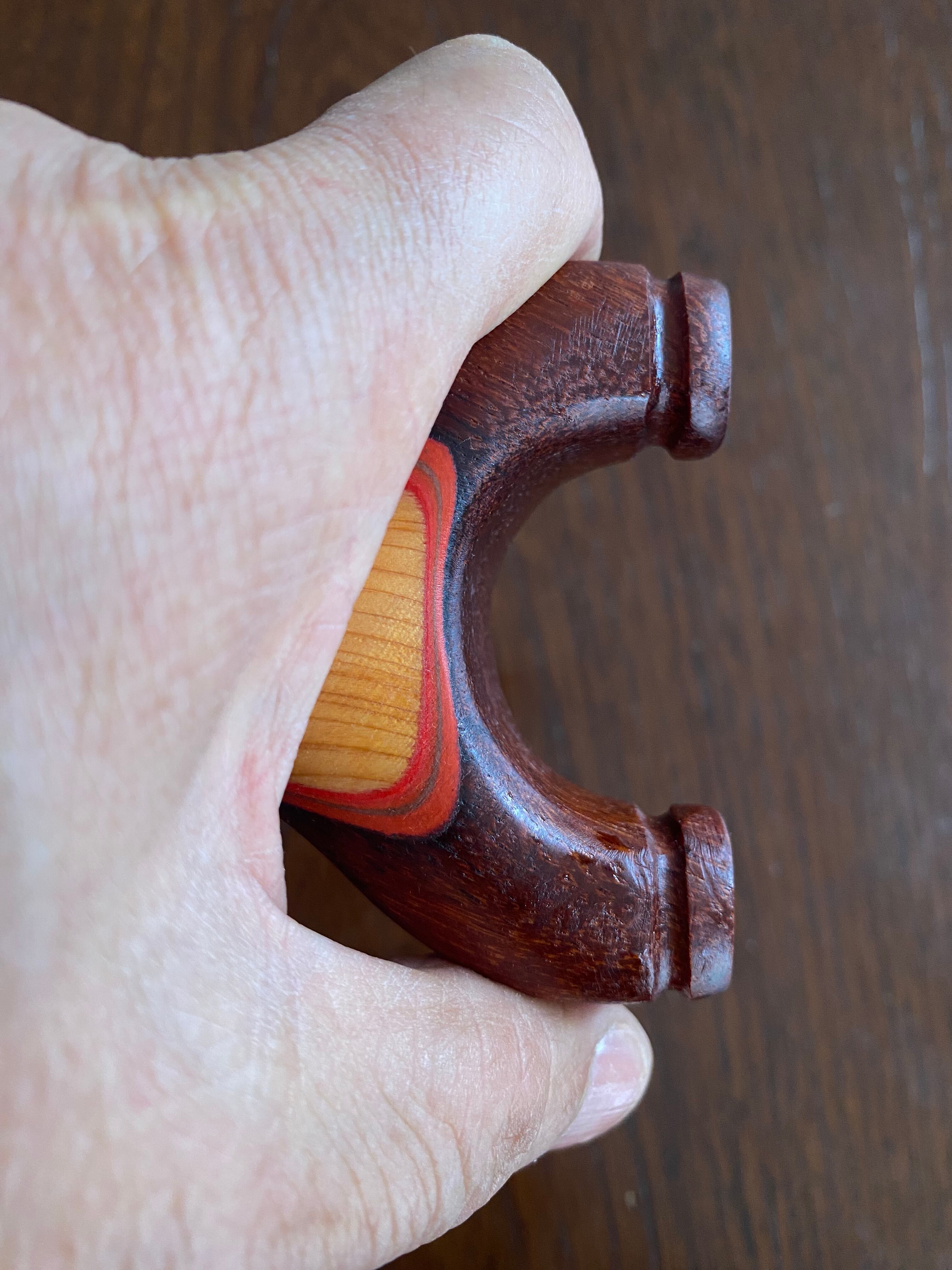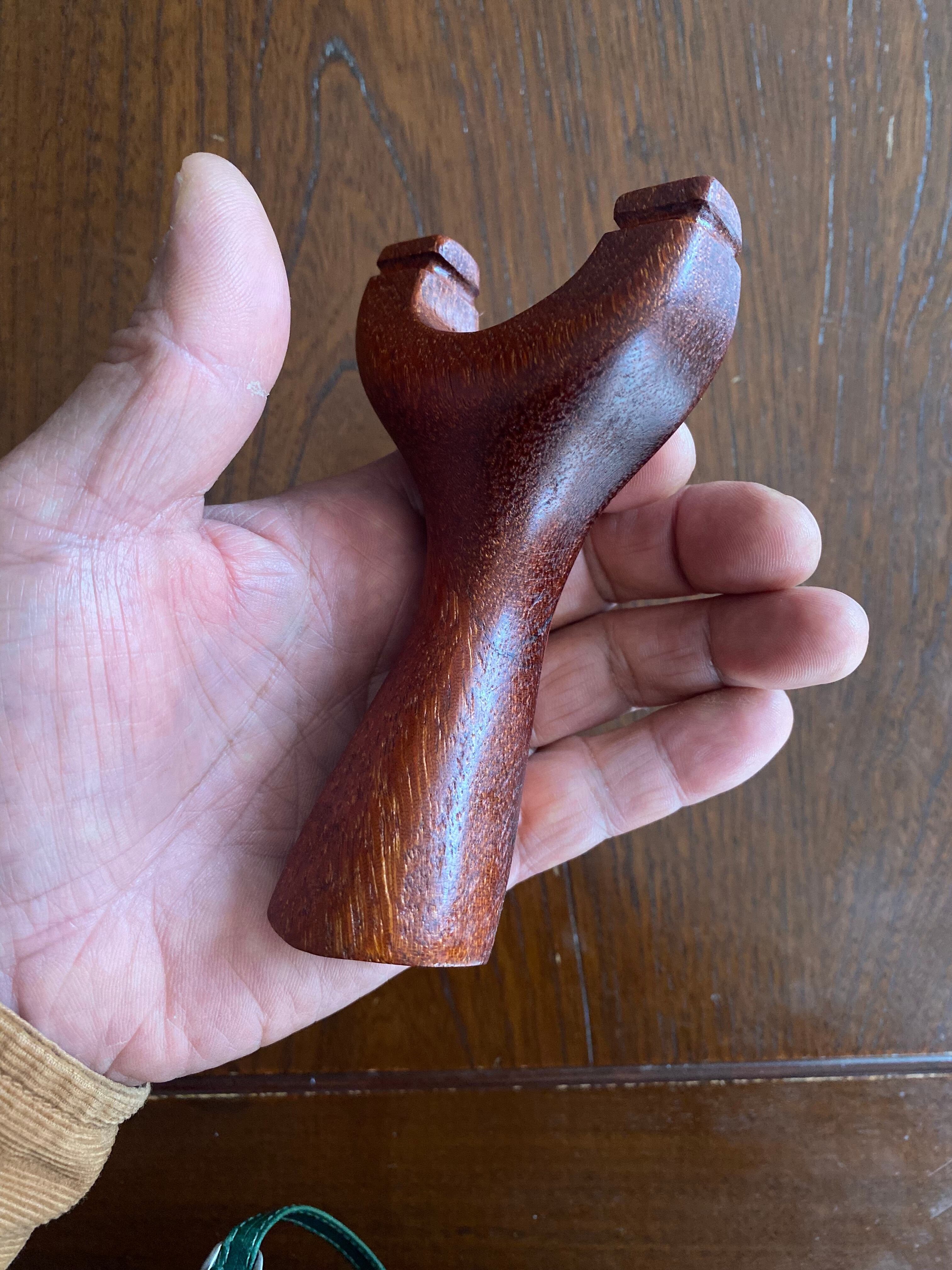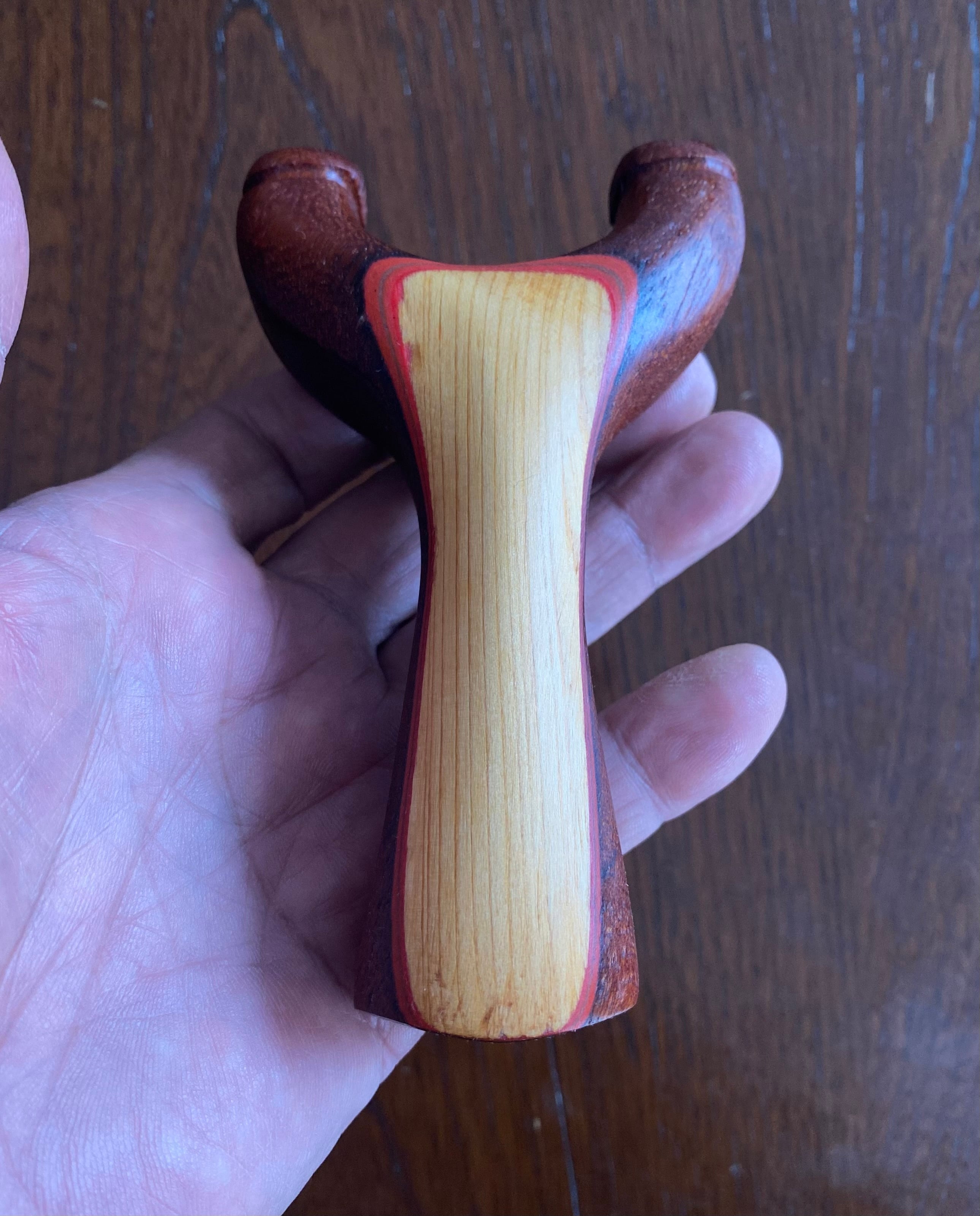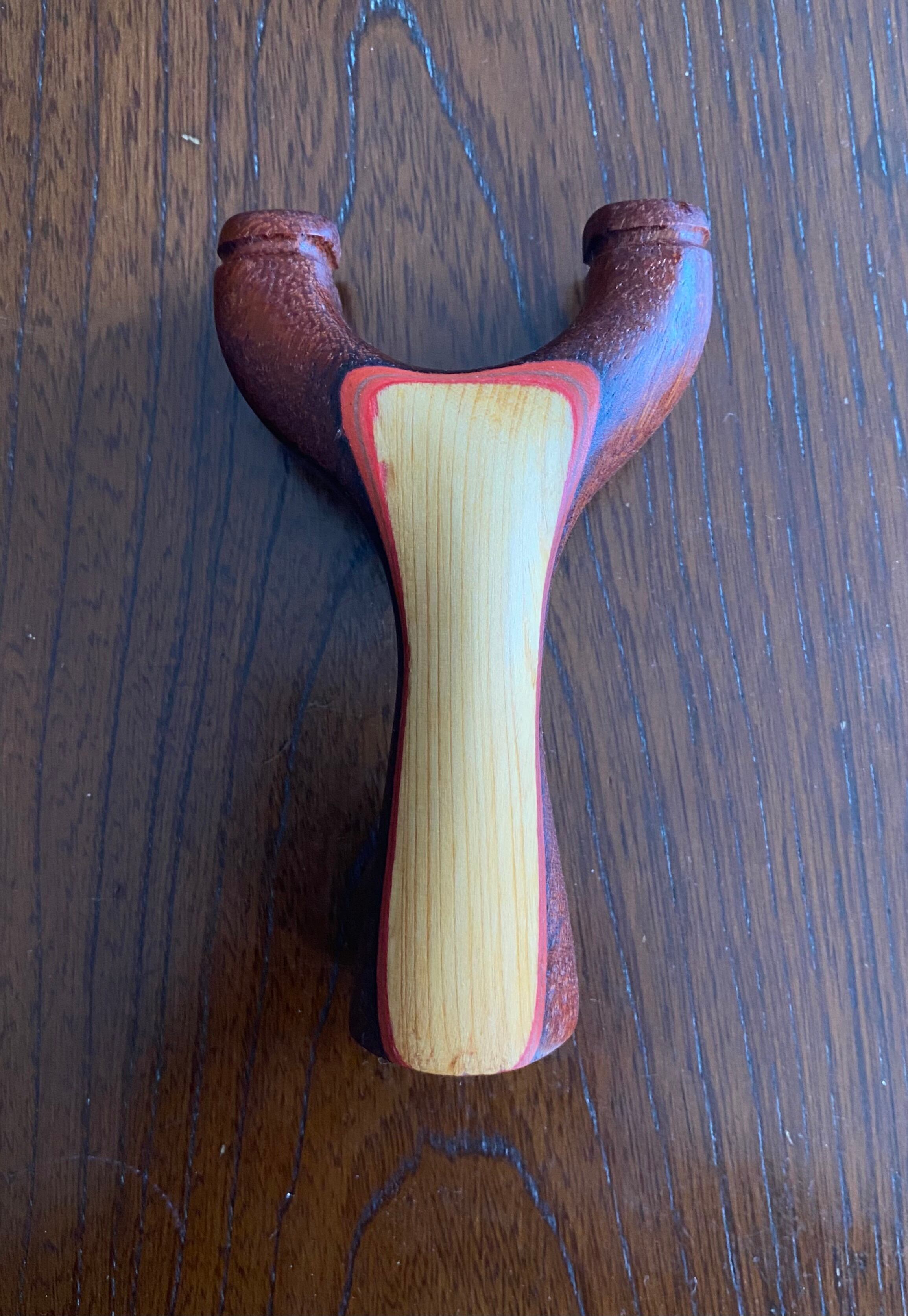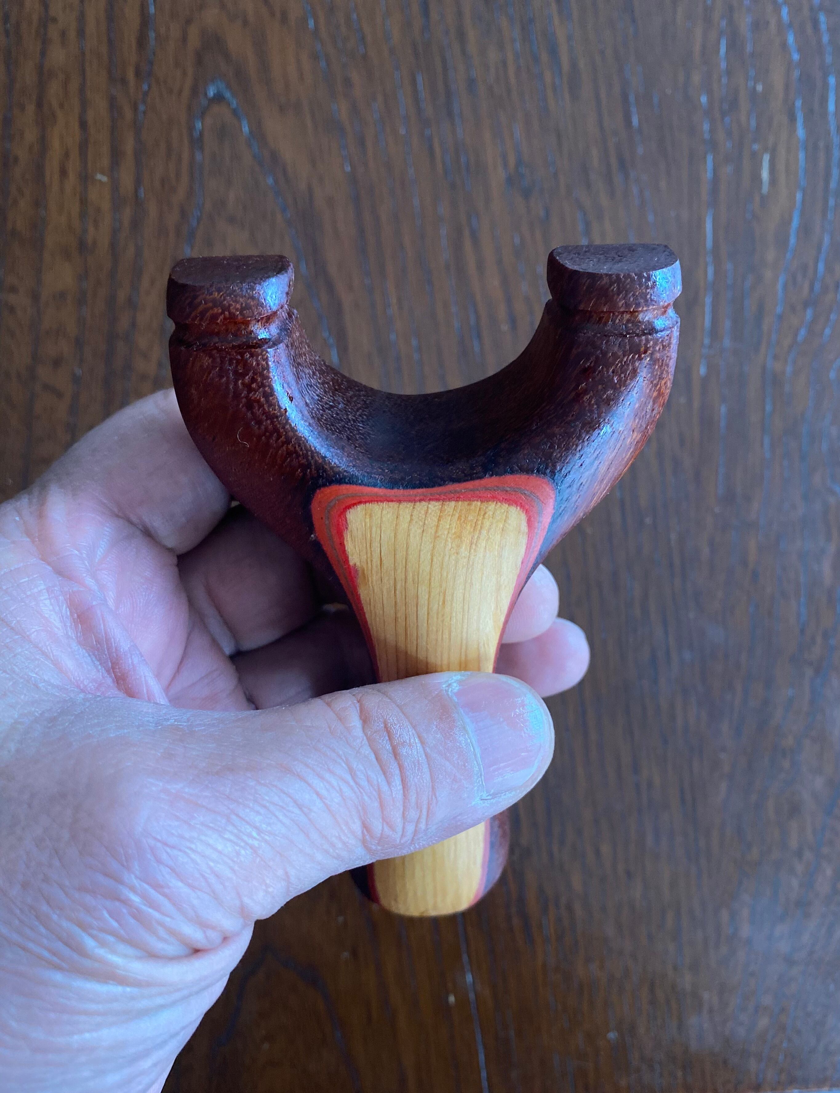 ■ No.971 庵野吽II型(鉄刀木+白木)Refineは、初期の作品を基に手を加え、まったく新しい魅力を引き出したスリングショットです。鉄刀木の温かみと白木の美しさを組み合わせ、赤のスペーサーが印象的なデザインを形作っています!持ちやすさを考慮した小型サイズで、スタンダードながらも特別な存在感を持っています。
