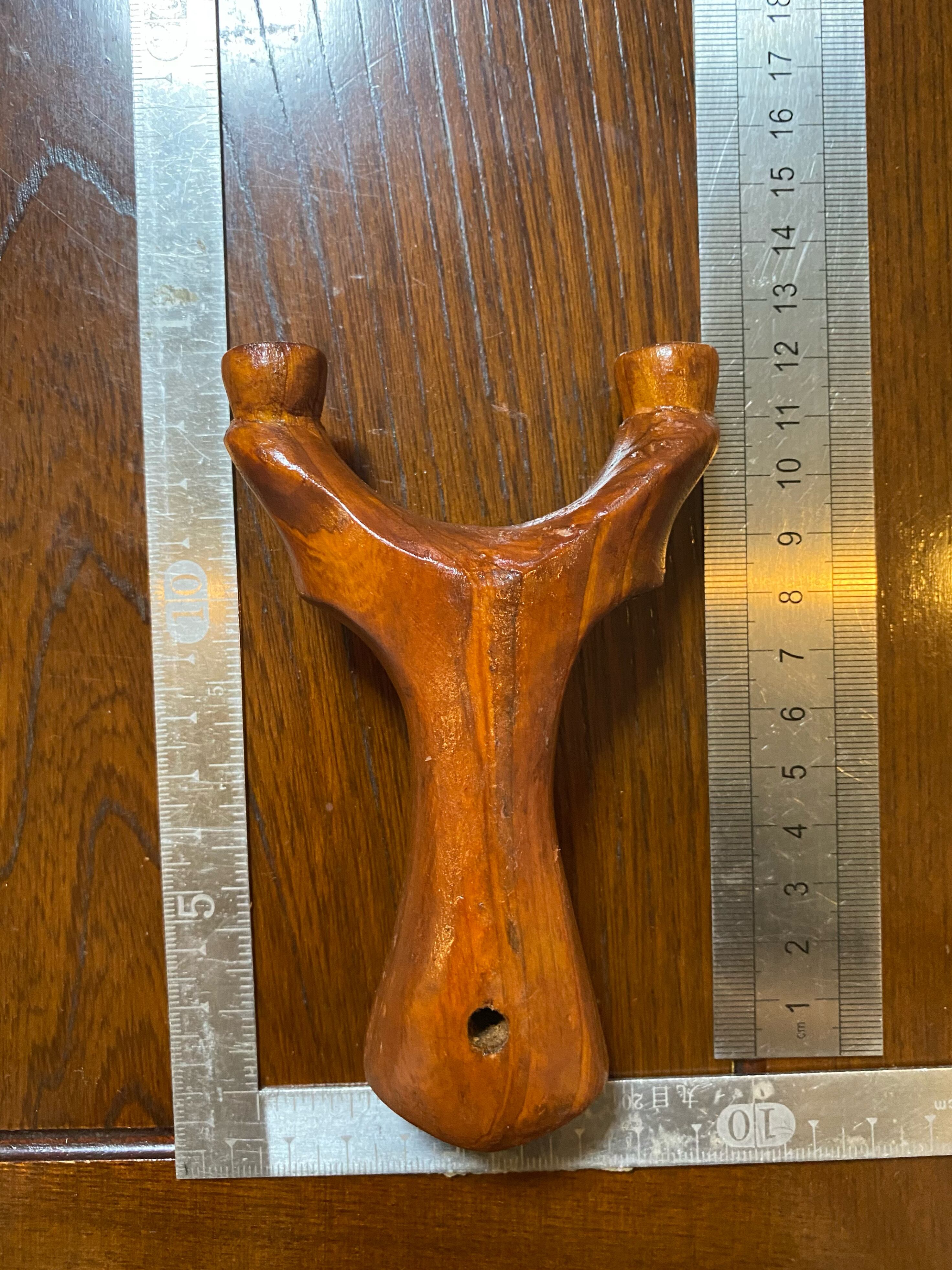親指と人差し指で固定して安定して撃てるタイプです。着色して薄くトップコートをかけてあるので、艶があります。