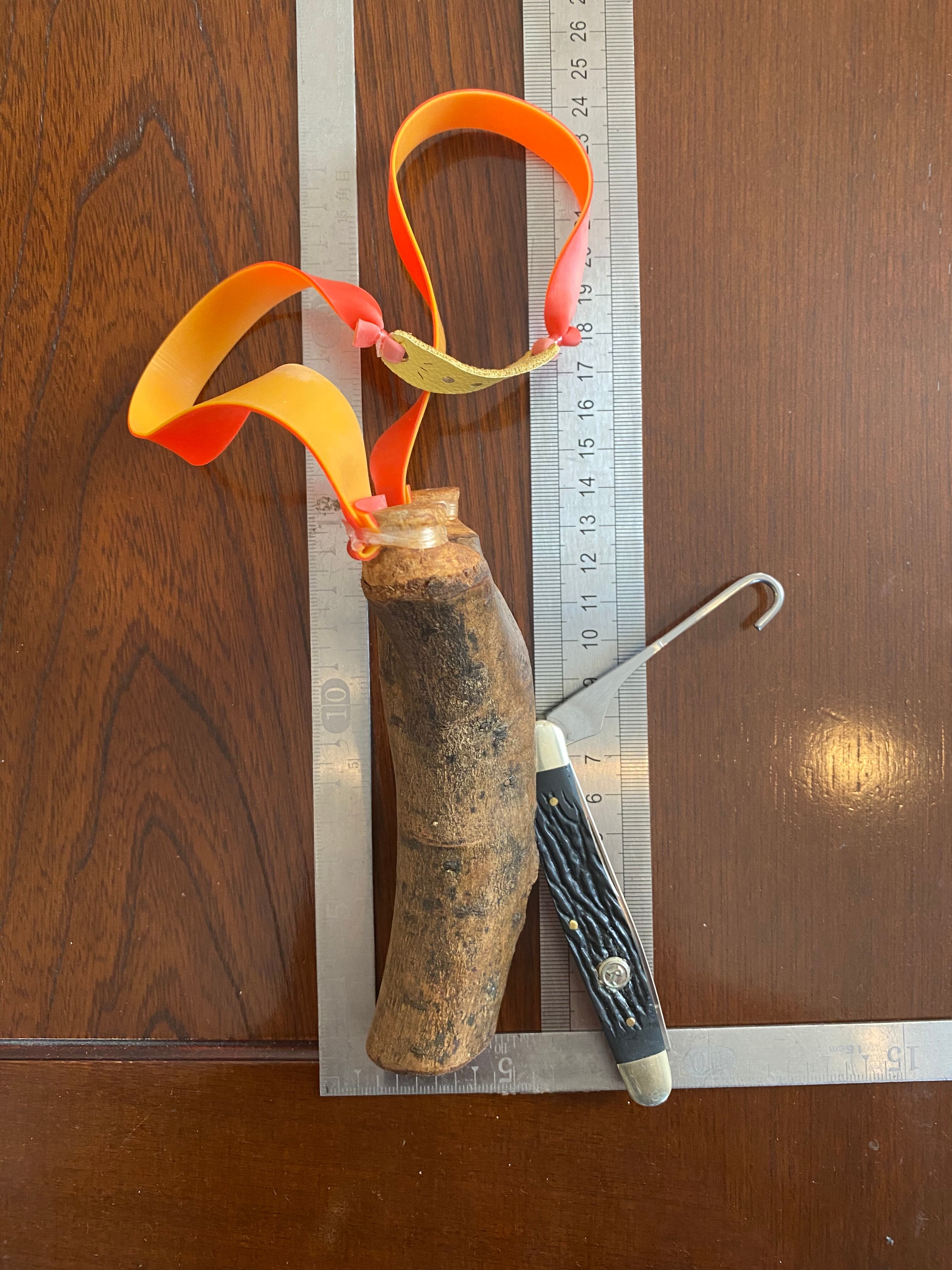 自然木の枝をそのまま利用したスリングショットです。持った感じがしっくりして良い感じです。