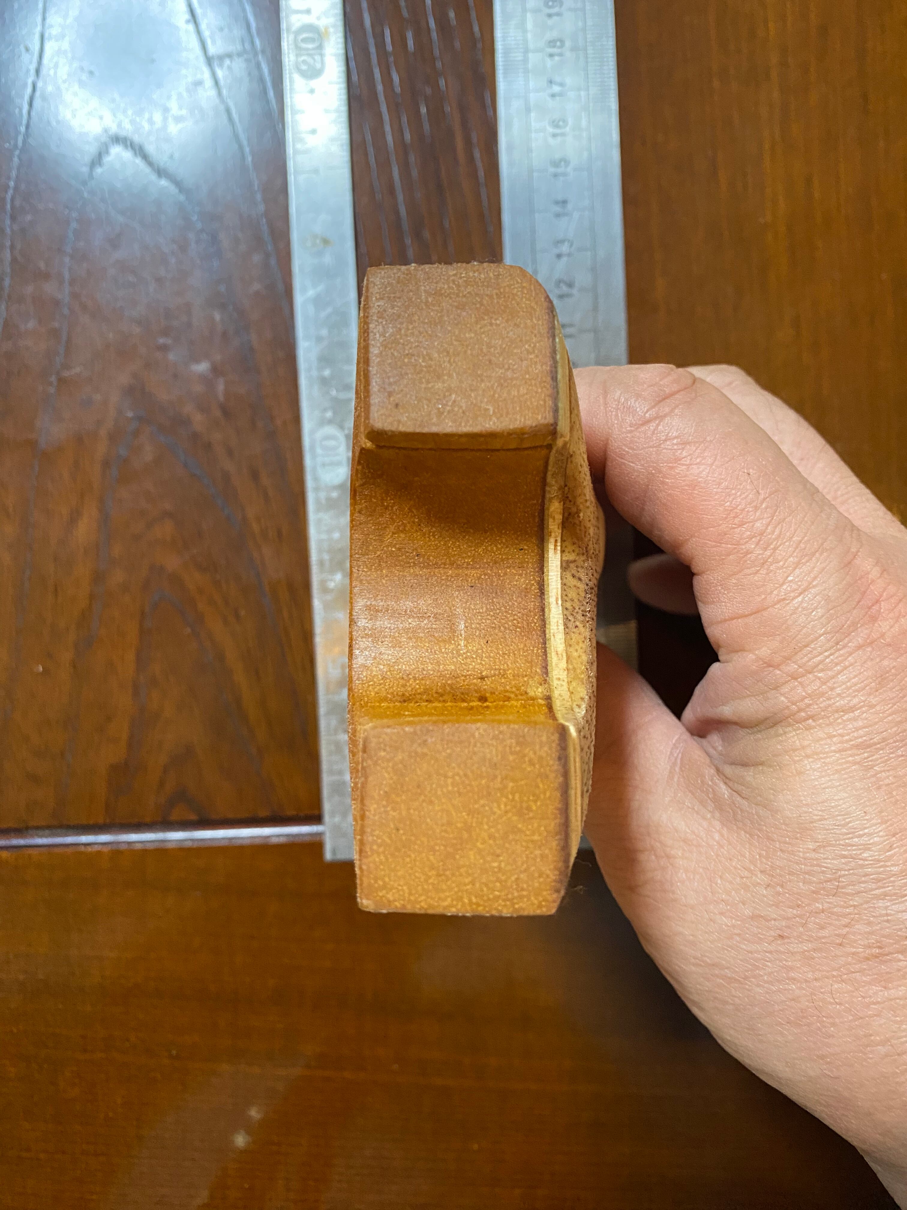 親指で抑えやすくするために非対称型にしたスリングショットです。これは左利き用です。