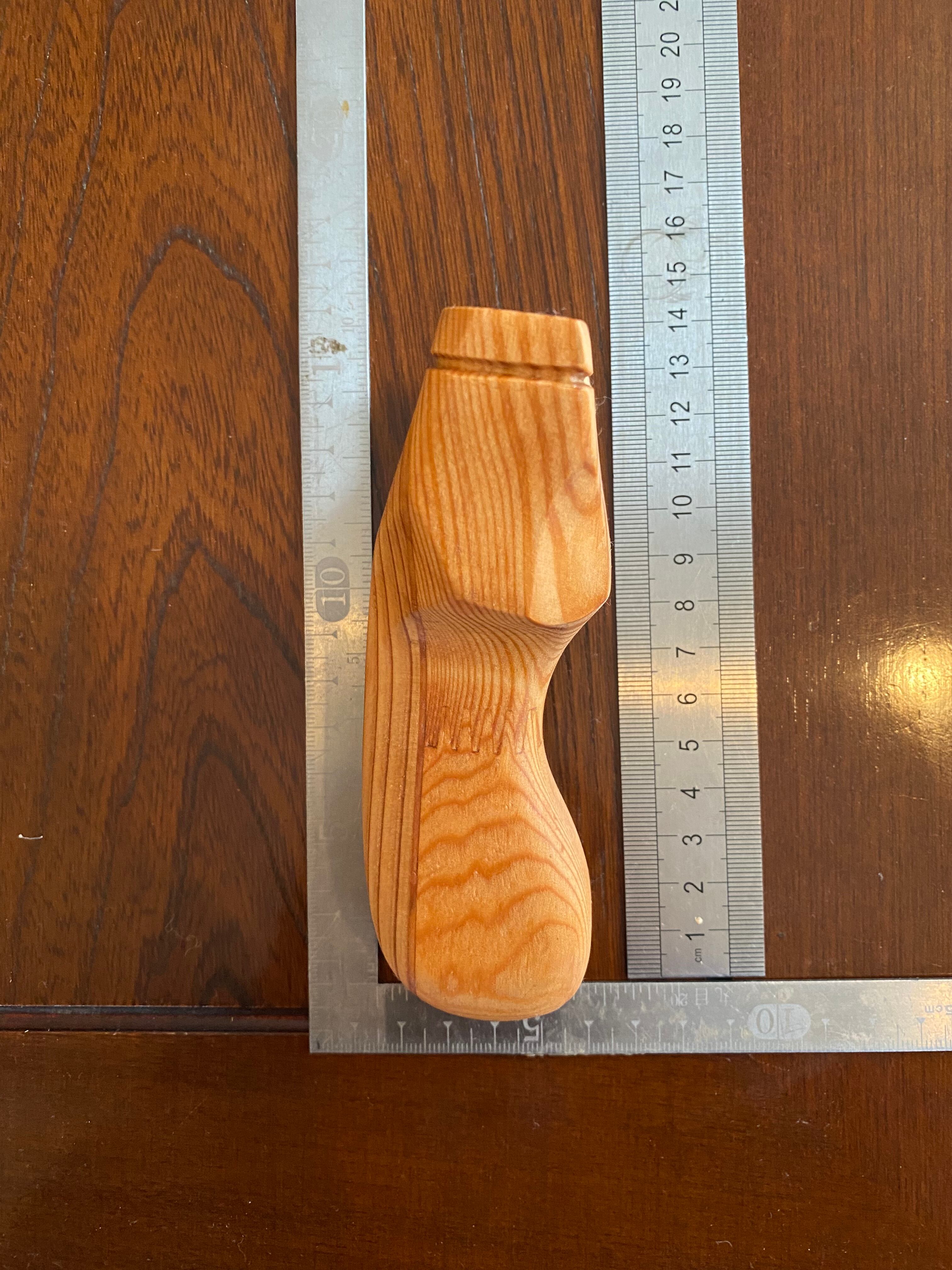 全体的に厚みのある板から削り出し反りを持たせてグリップ感のあるデザインです。