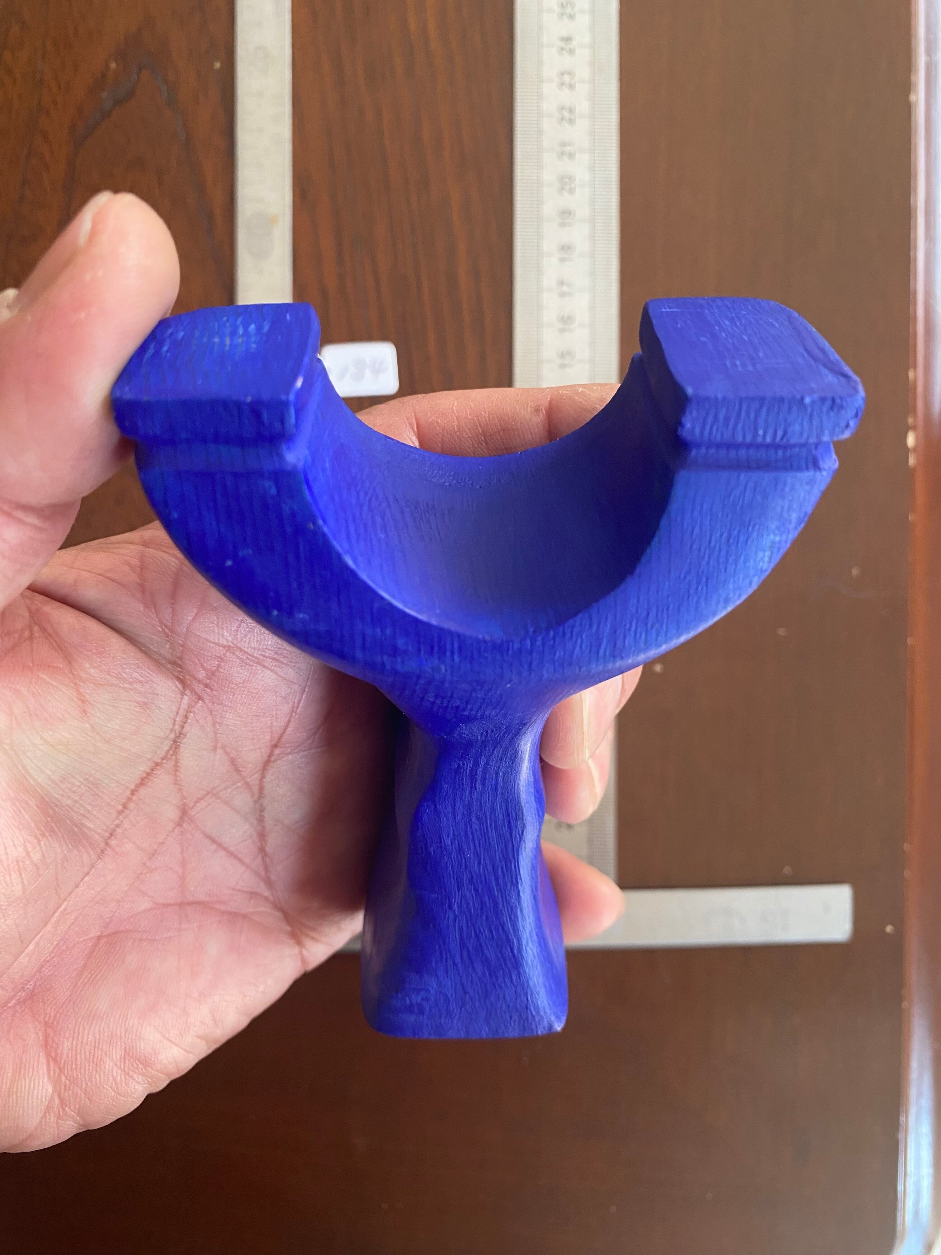 コバルトブルーのアクリル絵の具を重ね塗りした物です。ハンドルに段差をつけた新デザインです。