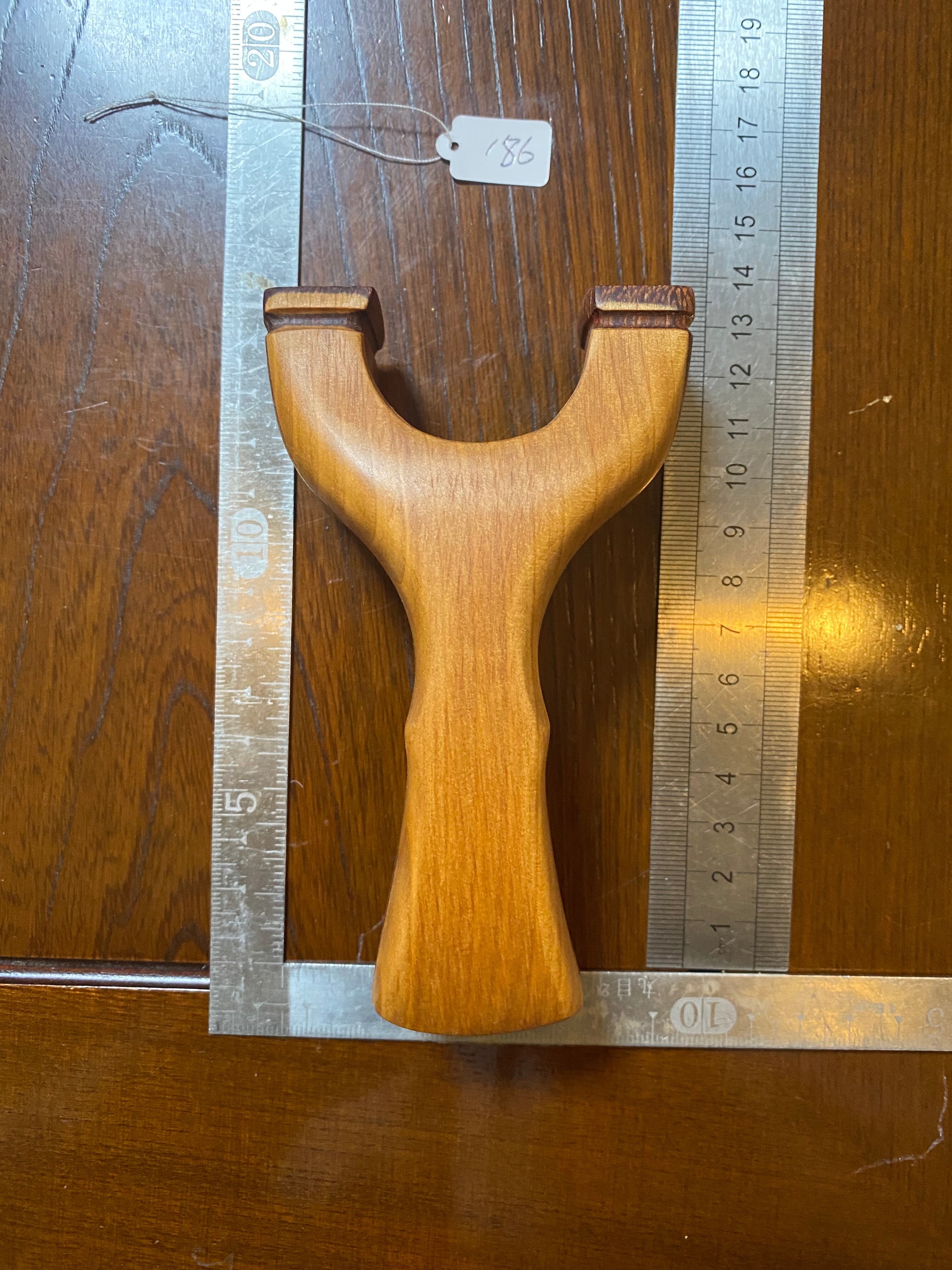 No.186は、硬くて重い鉄刀木と思われる焦茶色の材を使用した庵野II型ラウンドタイプ。一般の木と異なる重厚感を存分に楽しむことができます。
