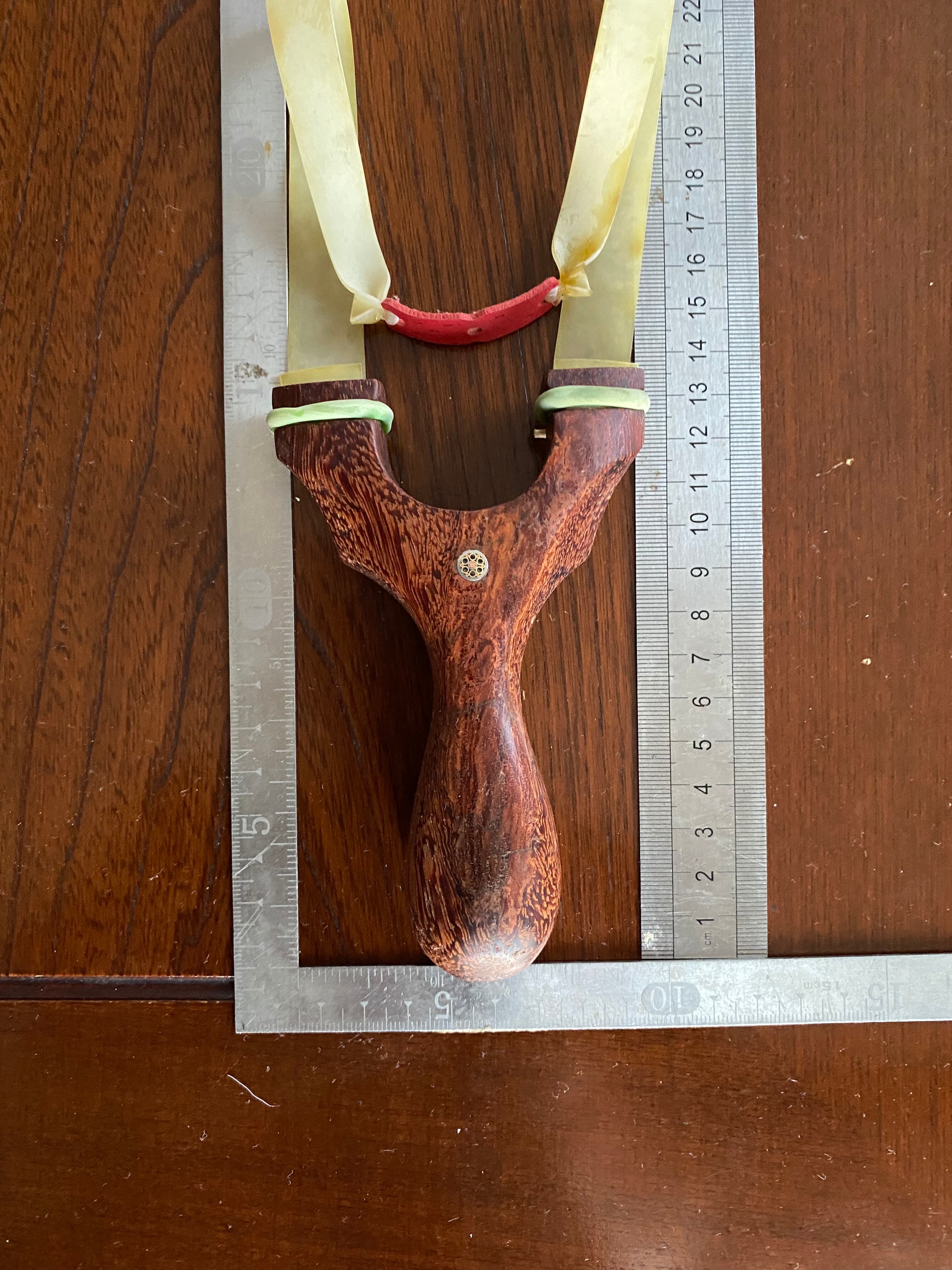 非常に硬くて強い存在感のあるスリングショットです。現代的なデザインながら少し細めに作り親指コントロールのしやすい商品となります。#1500まで磨き上げた光沢が気持ち良いです。上級品にしか付けないモザイクピンが埋め込まれています。