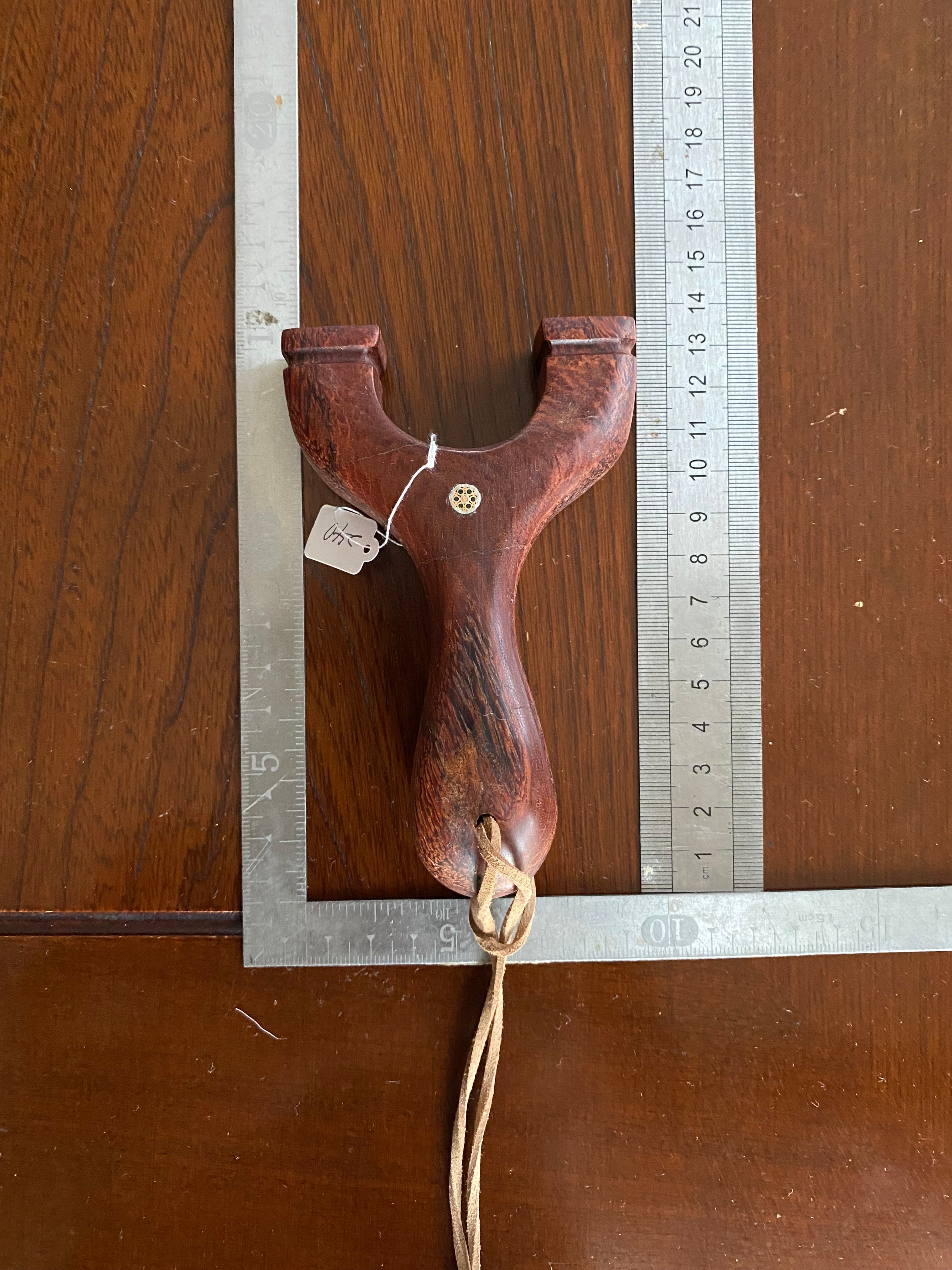 非常に硬くて強い存在感のあるスリングショットです。現代的なデザインの商品となります。上級品にしか付けないモザイクピンが埋め込まれています。
