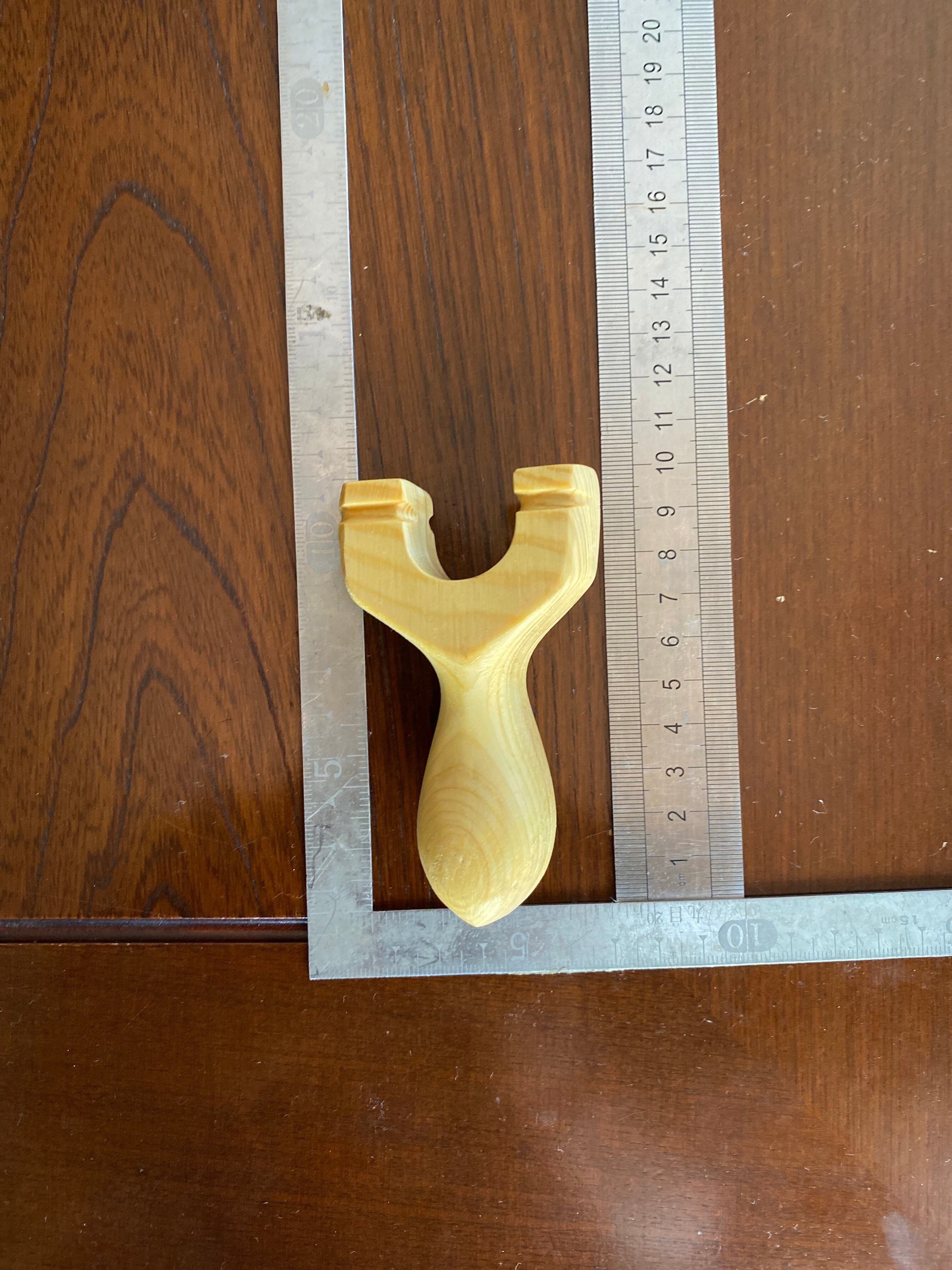 通常サイズのものより5cmほど小さくて手の中にスッポリ収まるサイズのスリングショットです。