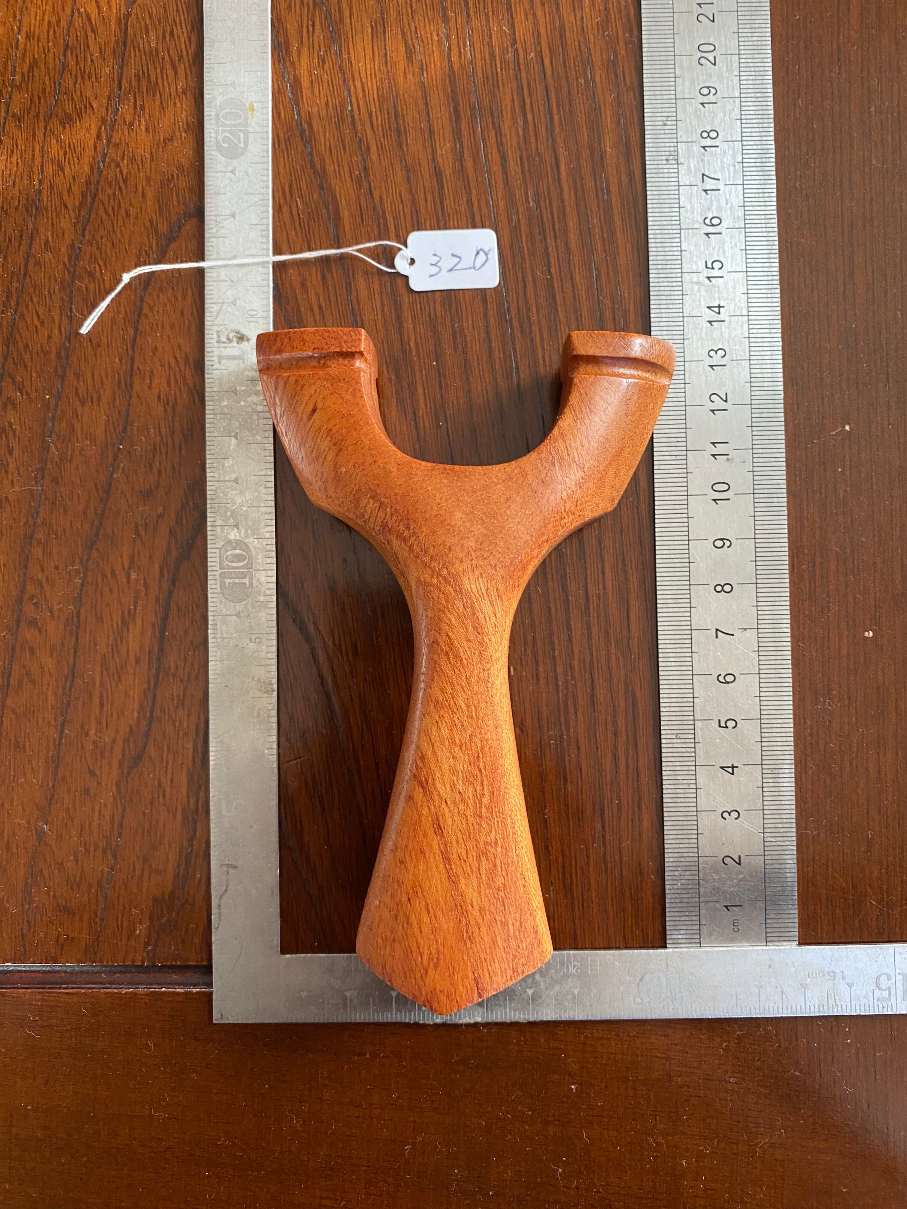 強くて硬いケヤキを使い、無駄なところを削ぎ落としたデザインのスリングショットです。扇型ハンドルはすっぽ抜け防止と共に握った時の本体固定に効力を発揮します。タカのような鋭い攻撃力を持つイメージの作品です。