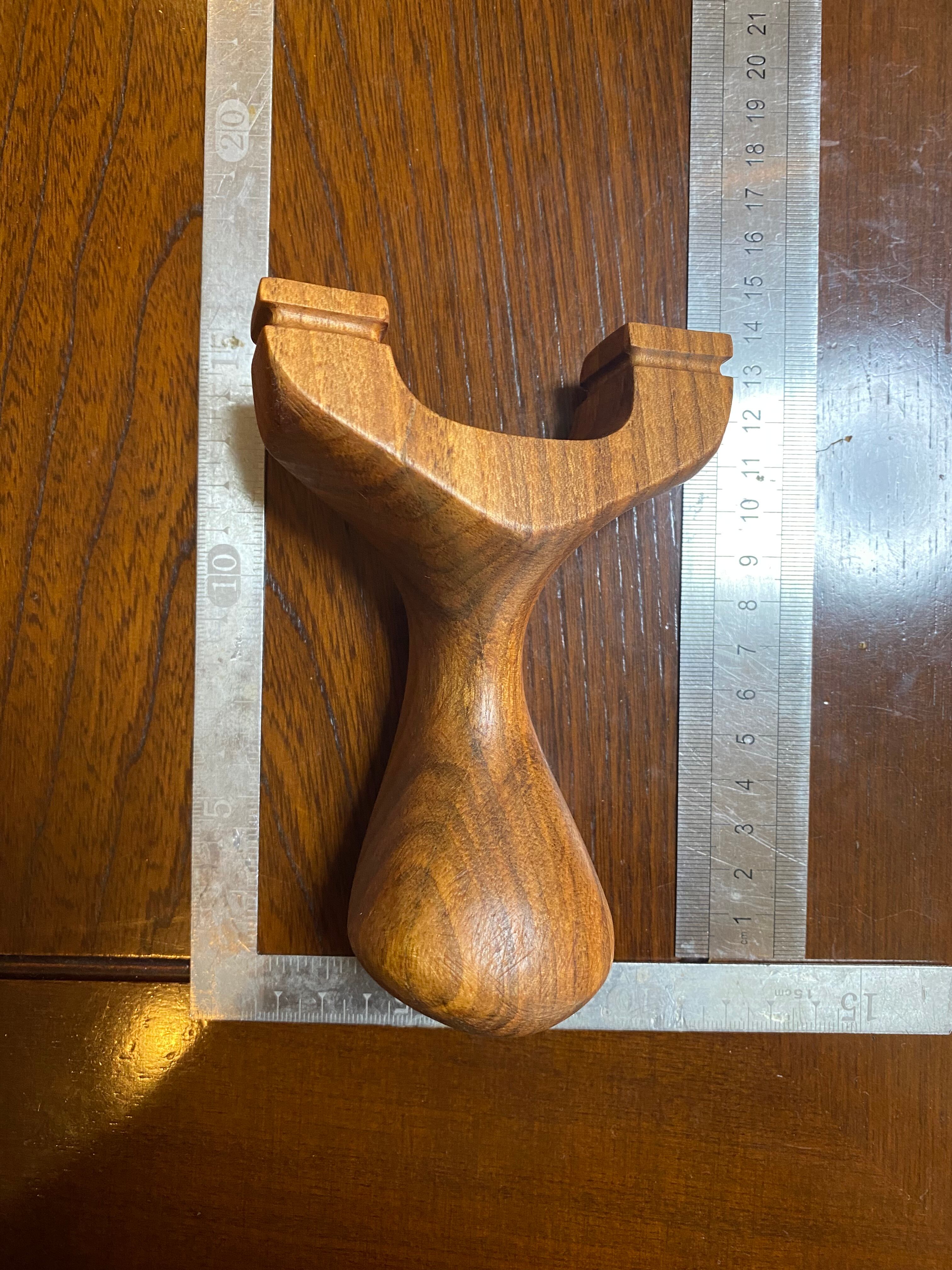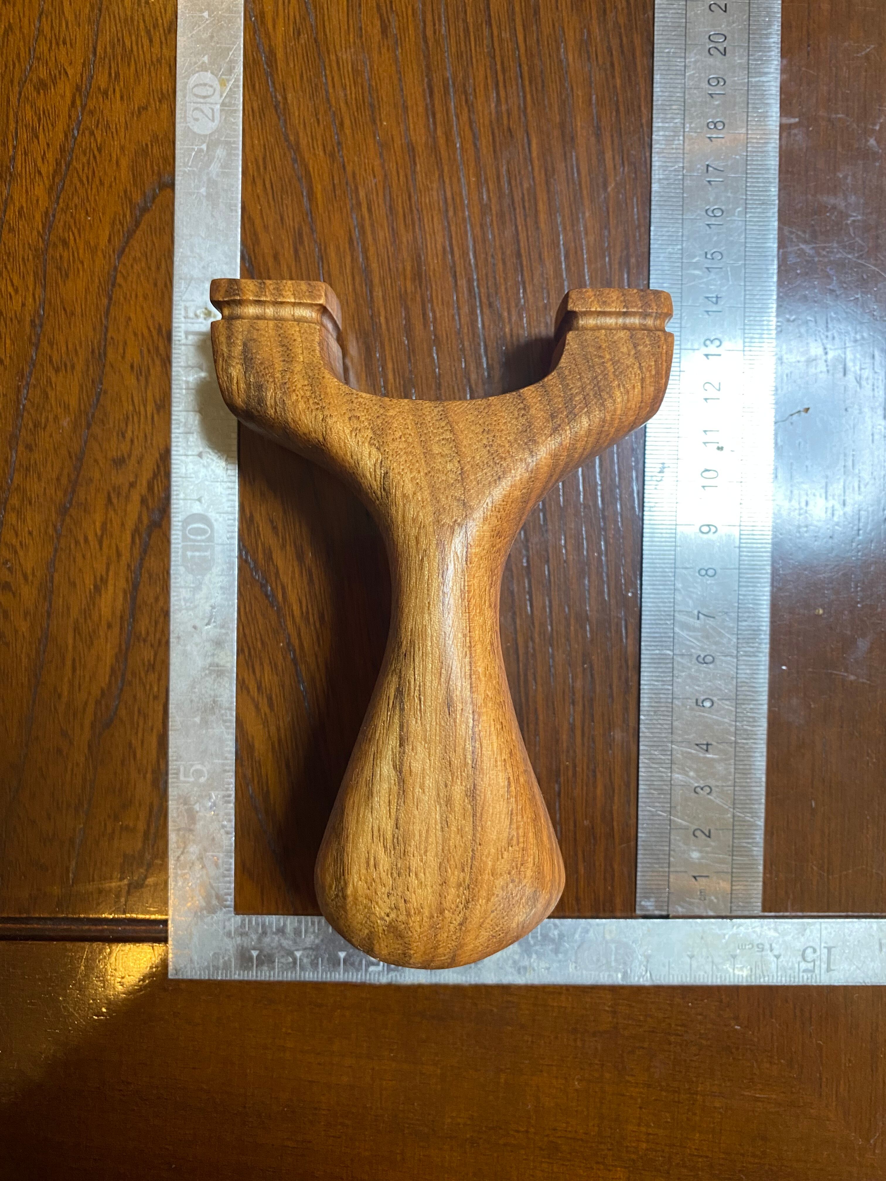 贅沢な6cm厚のくるみの木から作ったビッグハンドル、大胆なフォルムと美しい木目が魅力のスリングショットです。手に馴染む形状と滑り止めのため丸く加工が施されたグリップで、弾を的に的確に当てることができます。木の温かみと自然な風合いを楽しみながら、スリングショットの魅力を堪能しませんか。