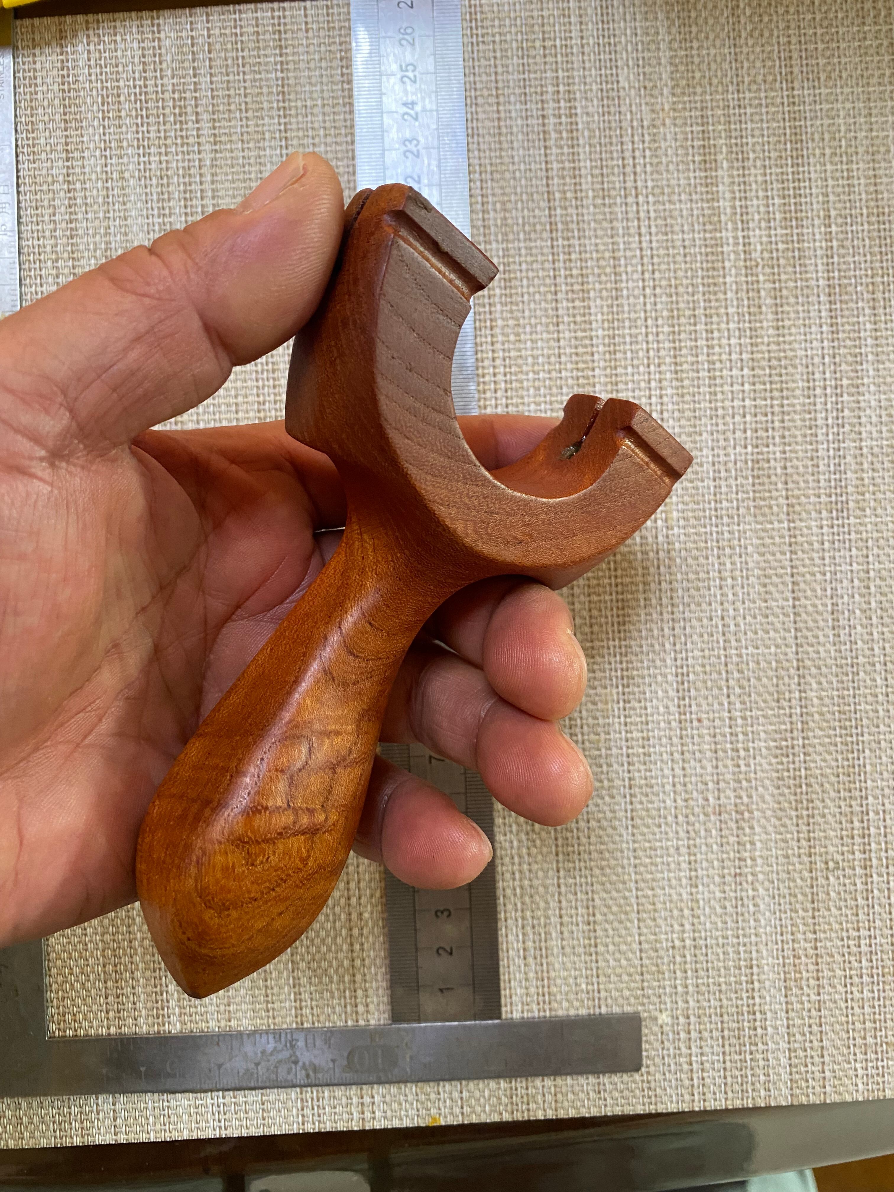 No. 370は35mm厚の欅杢製のスリングショット Blue Sky2です。丁寧に職人によって作り上げられたこのスリングショットは、その美しい木目と堅牢な作りから高い評価を受けています。さらに平ゴムの取り付けが簡単なトップスリット方式と通常のゴム巻き付け方式の両方ができるようにヘッドが加工されています。