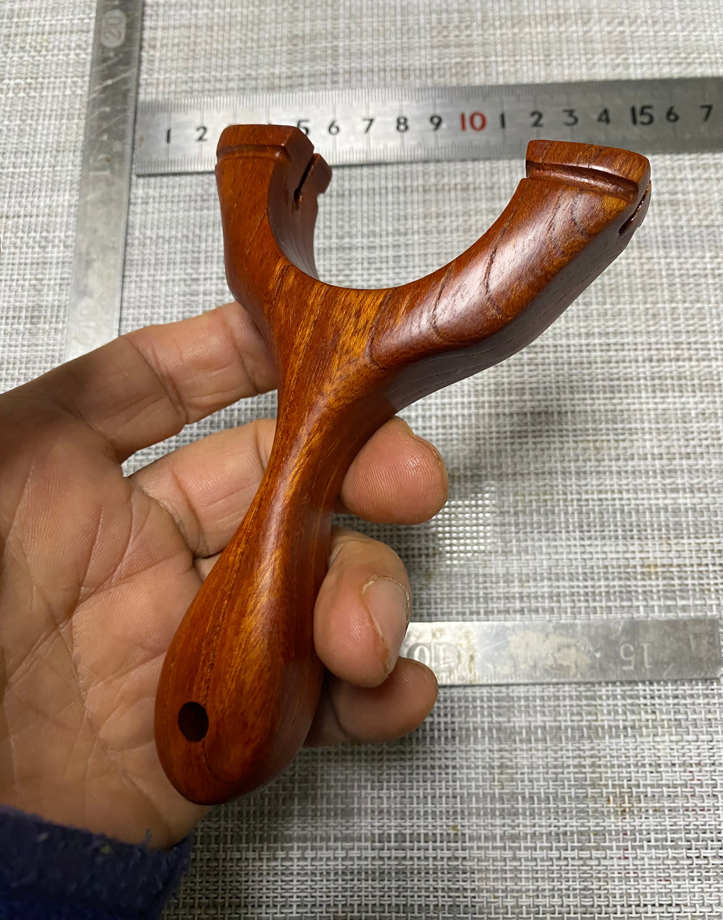 人気のNo.422 スリングショットです。細身のデザインで持ち運びも便利です。強度の強いケヤキ製で、安心して使用できます。平ゴムの取り付け方法は2wayで、TopSlotとゴム巻き式のどちらでも使用することができます。