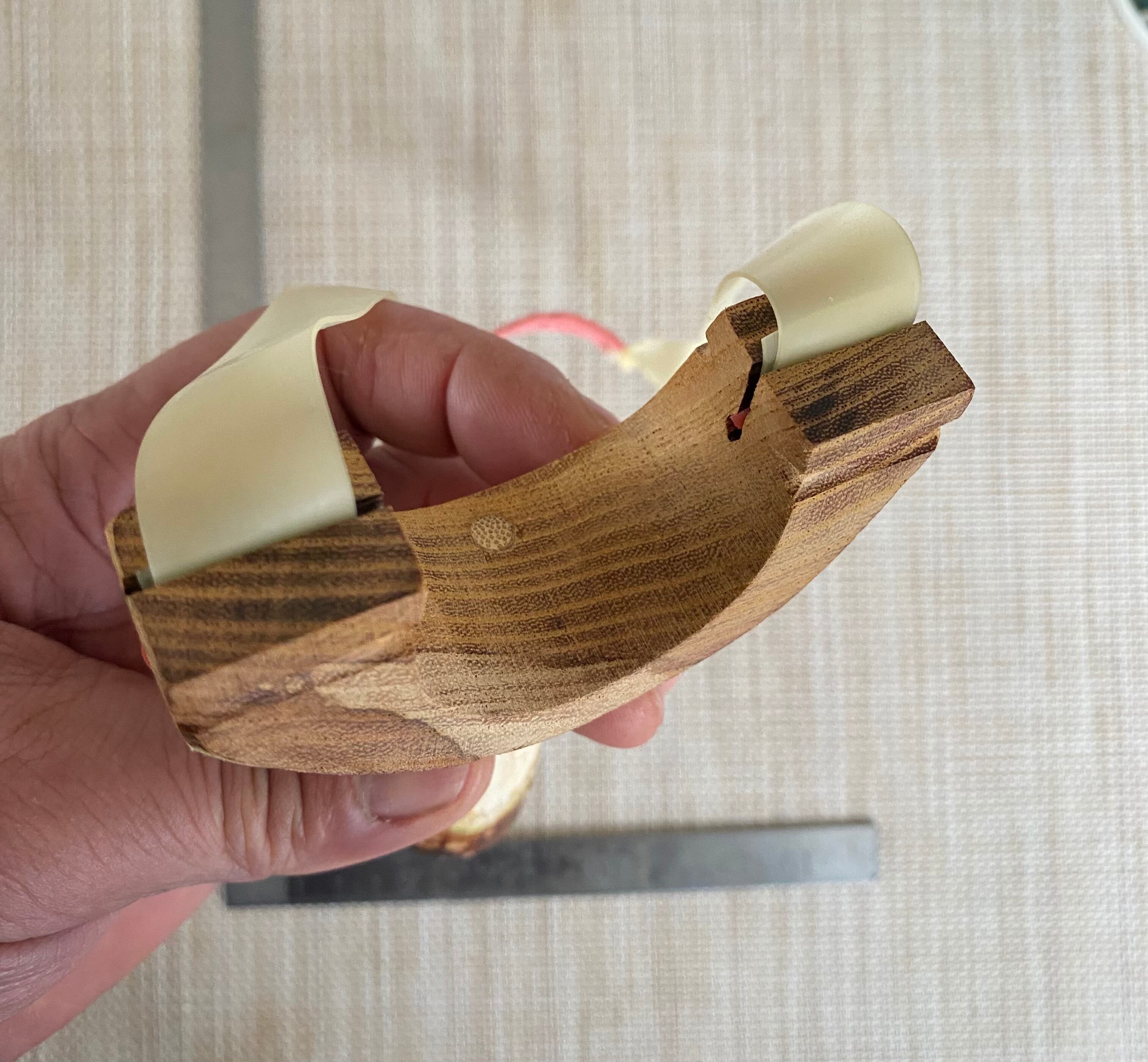 No.429練習用スリングショットに、桜の木で作った特別なハンドルが付いたバージョンが登場しました。上部には贅沢に欅を使用し、竹のダボ継ぎでしっかりと組み立てられています。独自のデザインで、手に握った瞬間に高級感が溢れます。