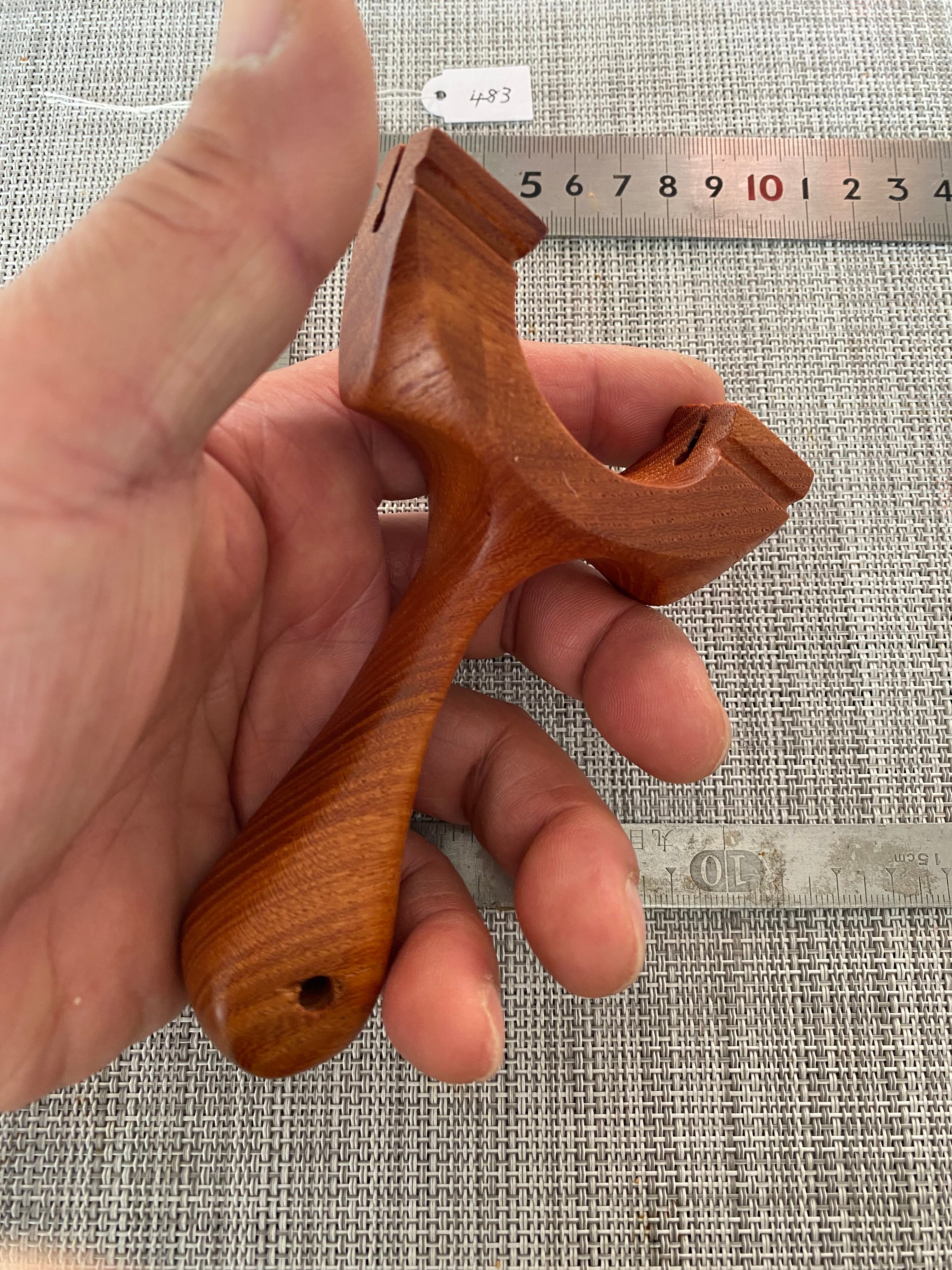 狙いは確実、まさにホークアイのような狙いを実現するスリングショットが登場しました。No.483 Hawk eye 標準型は、スリングショット(Blue Sky Wide)のフォーク間を45mmに狭めた物で、厚さ30mmの細首タイプです。