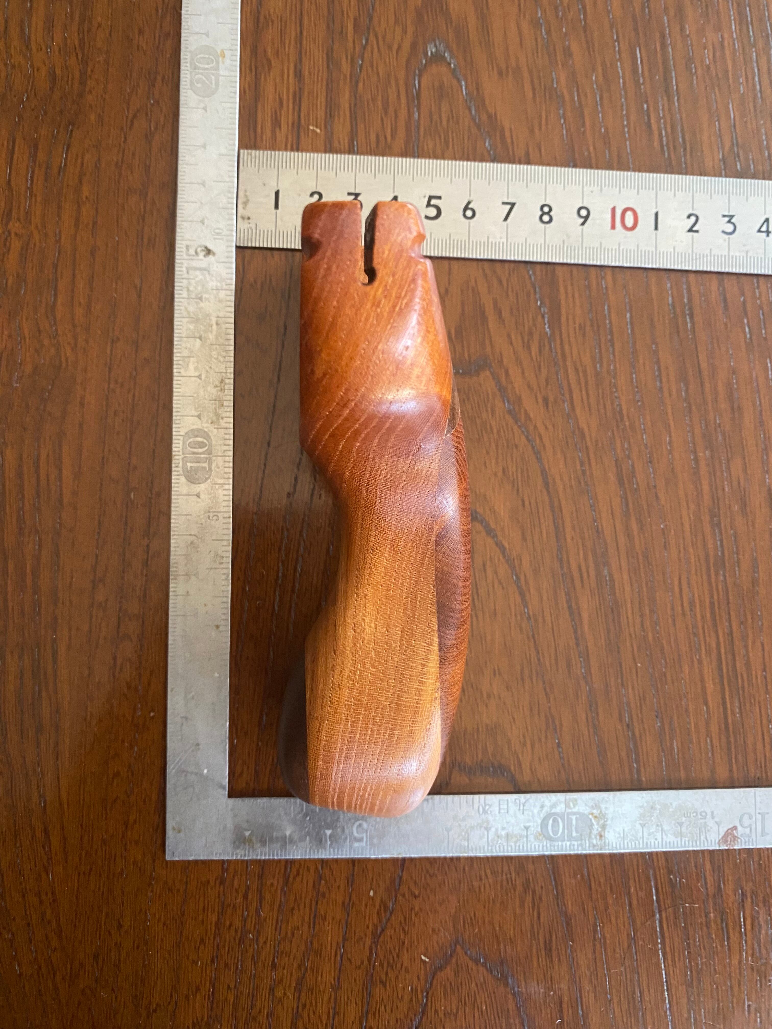 デザイナー庵野吽が手掛けたNo.501は、スーパーカーにインスパイアされた流線型フォルムが特徴のスリングショットです。欅の芯材に赤ケヤキと黒檀を組み合わせ、トップスロットとゴム巻き溝を備えるこちらの製品は、フォーク間43mmのバランスが絶妙なスリングショットを実現。亜麻仁油に15時間ドブ漬け後に蜜蝋で仕上げてあり、質感も非常に豊かです。