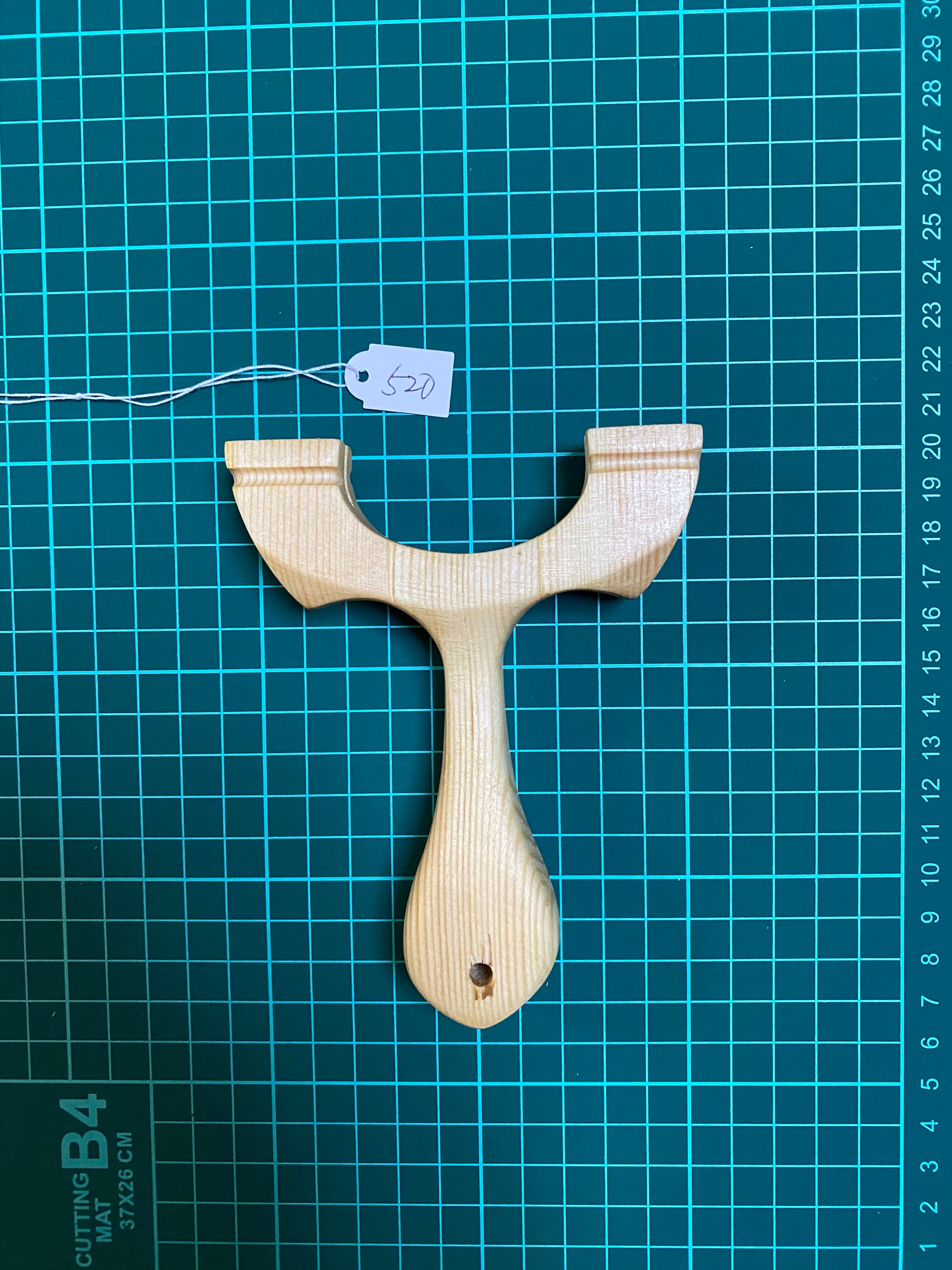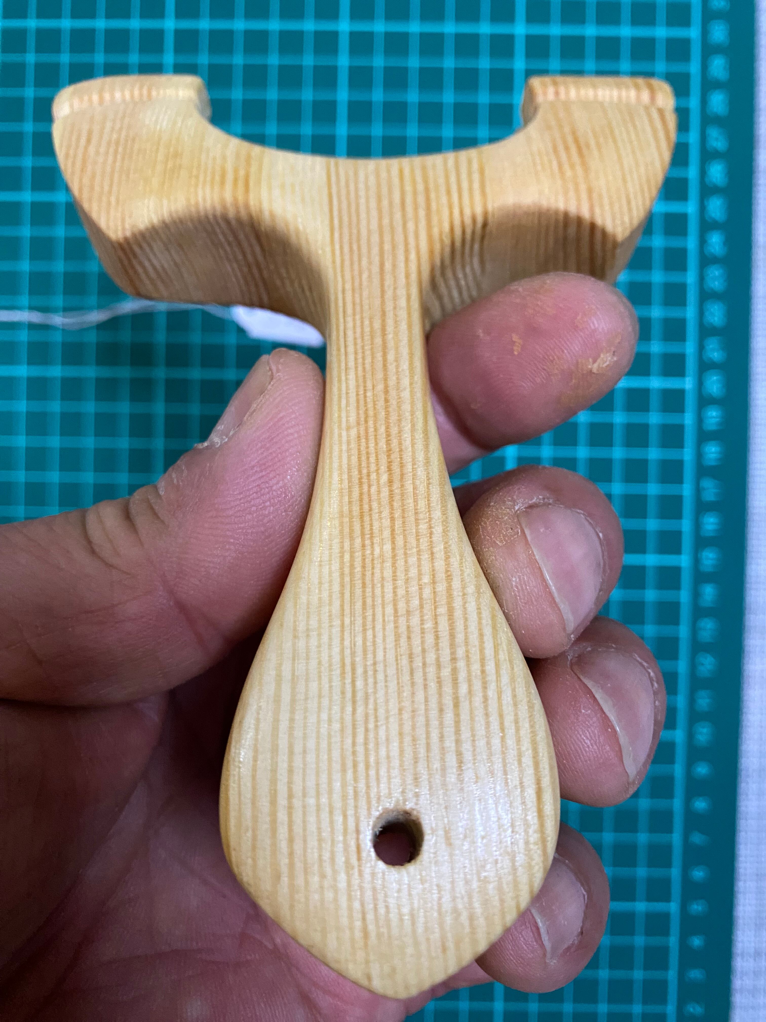 Hawk eye 25 ワイドフォーク52mmは、フォークヒットを防ぐためにフォーク間を52mmに広げたスリングショットです。杉材を使用して軽量化を図りつつ、木固めエースで強化しています。これにより、しなやかで軽快な使い心地を実現しました。初心者にもピッタリです。
